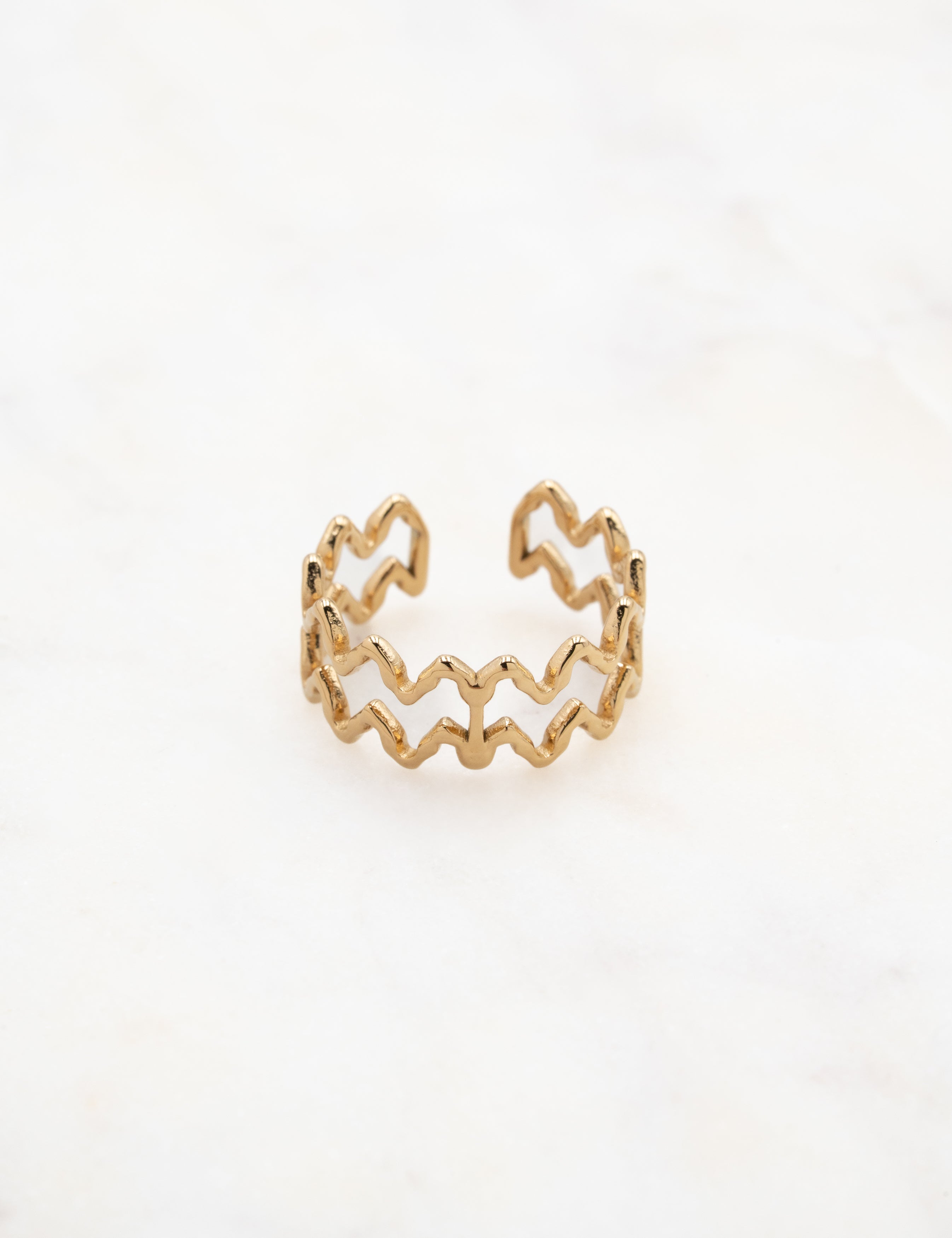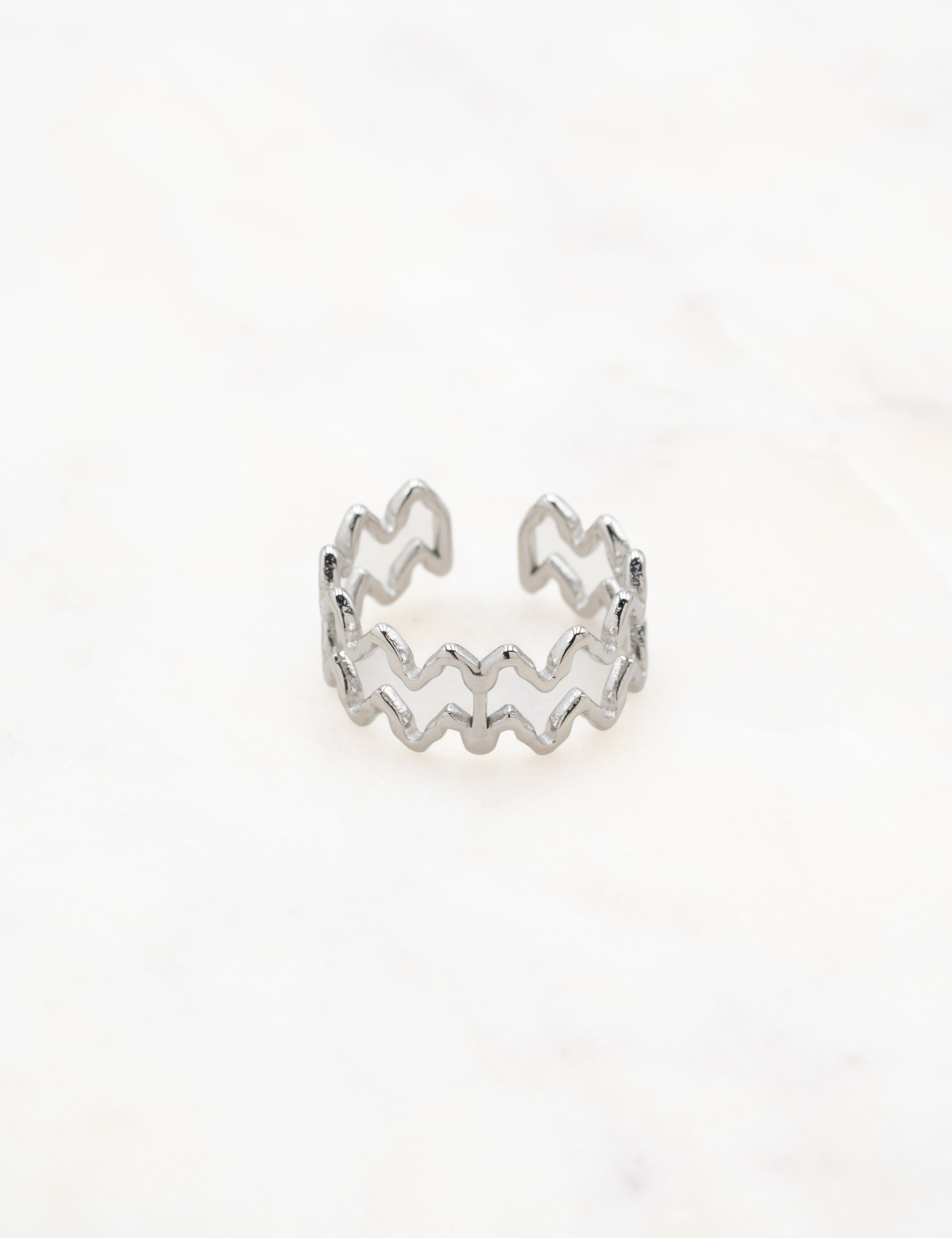 Bague ajustable graphique double rangs effet zig zag.