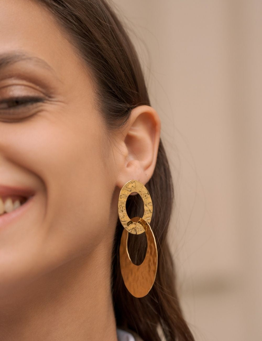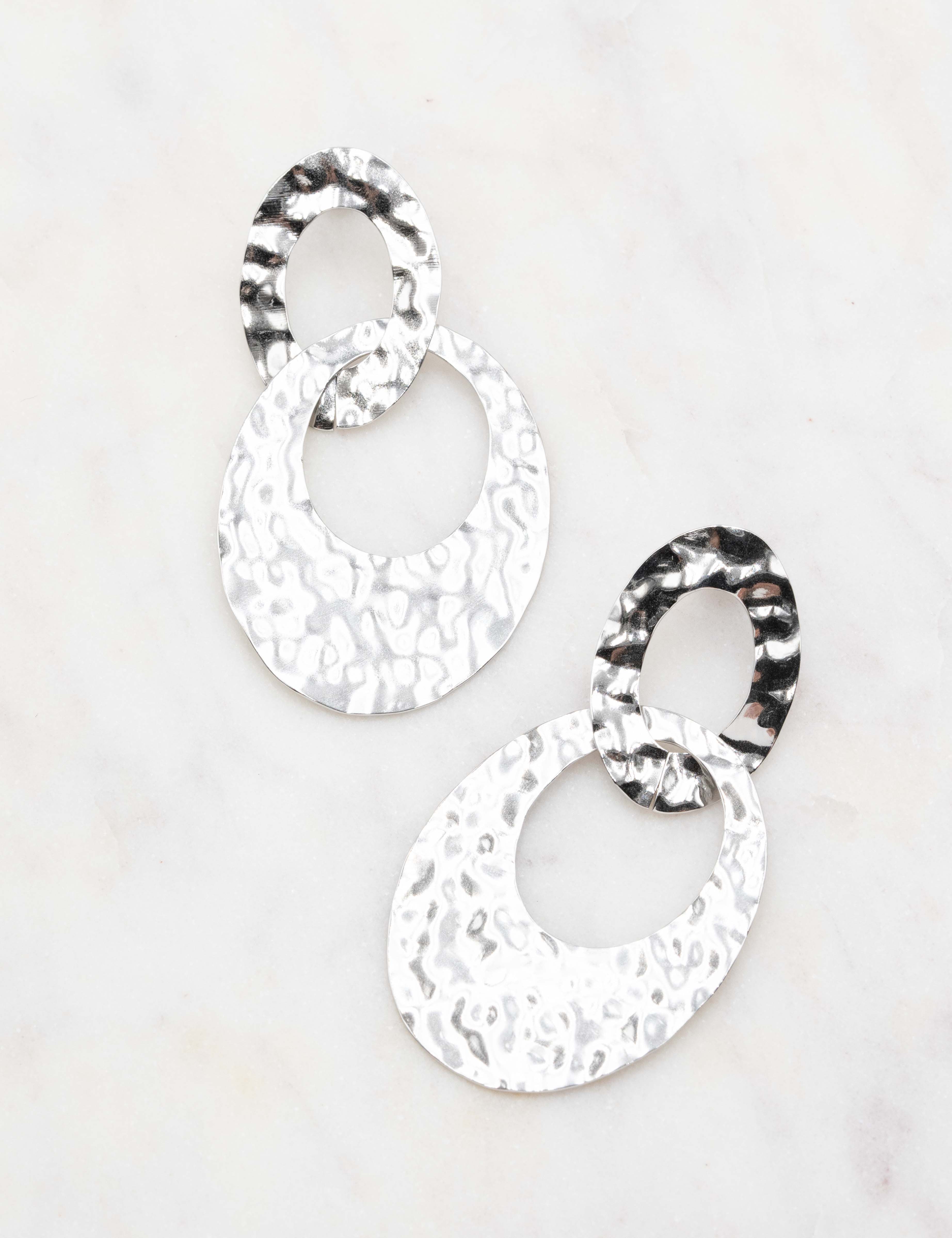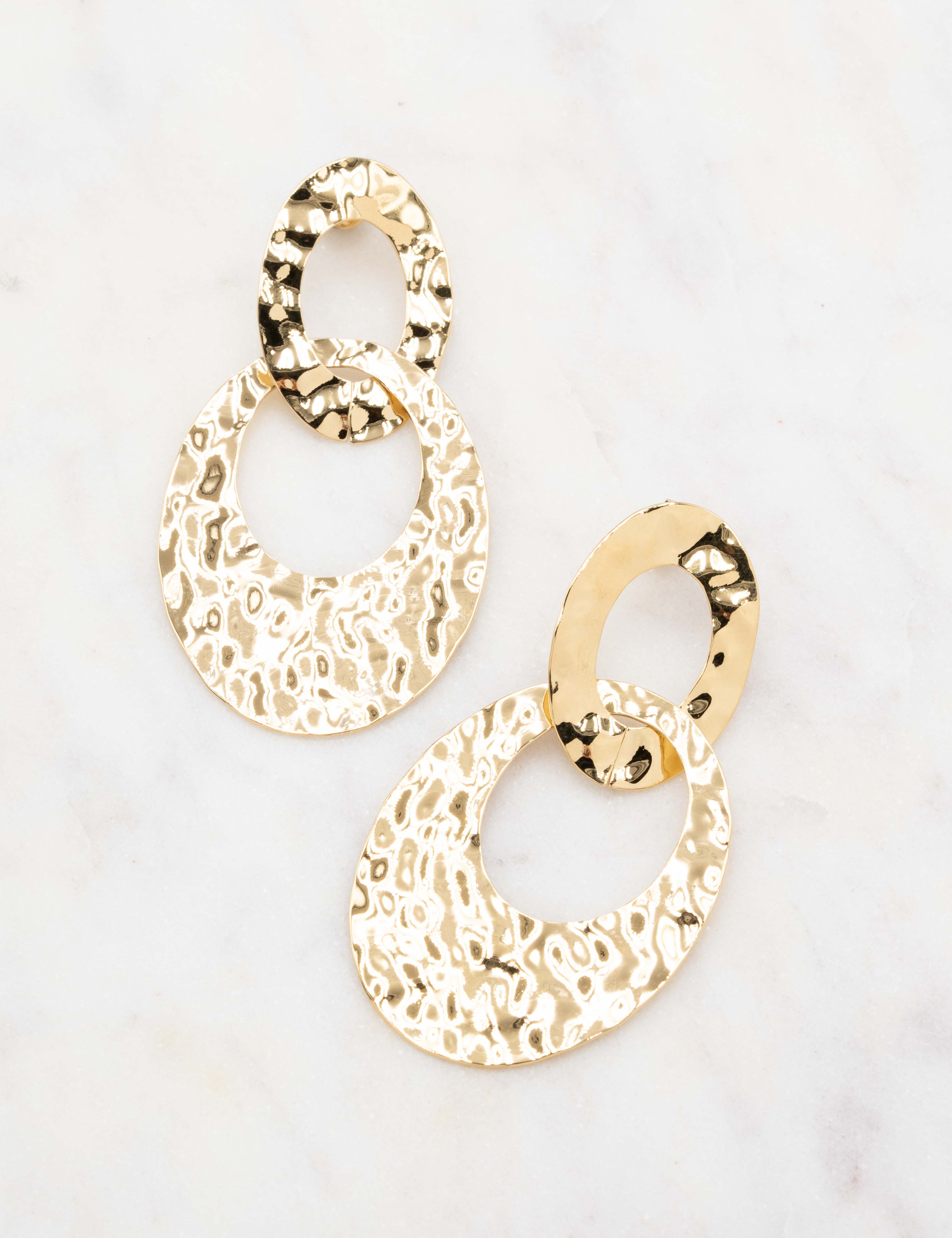 Boucles d'oreilles graphiques à puce composées de 2 anneaux martelés entrelacés.