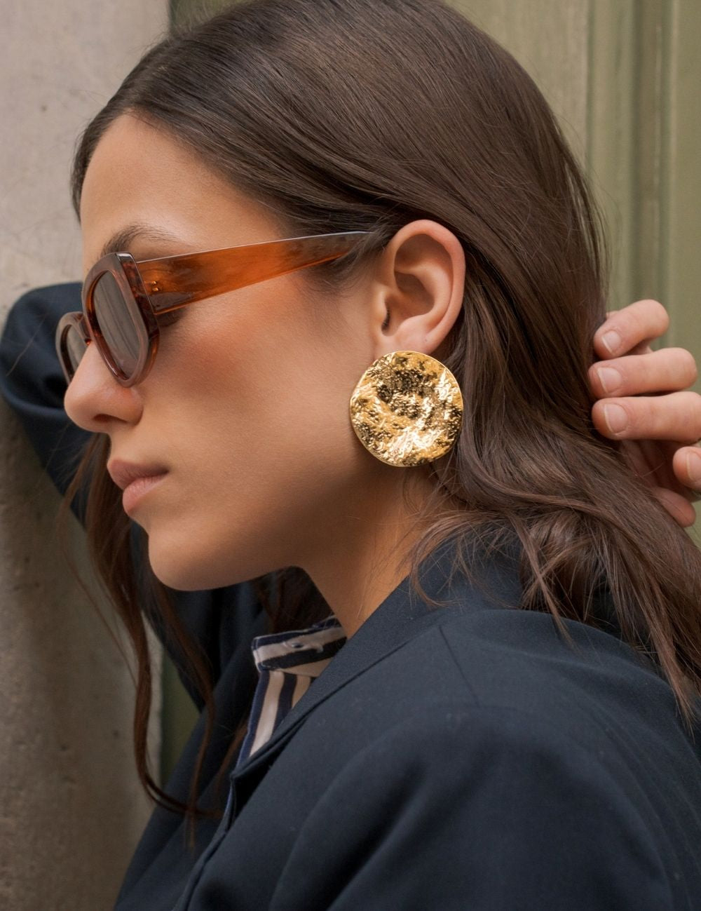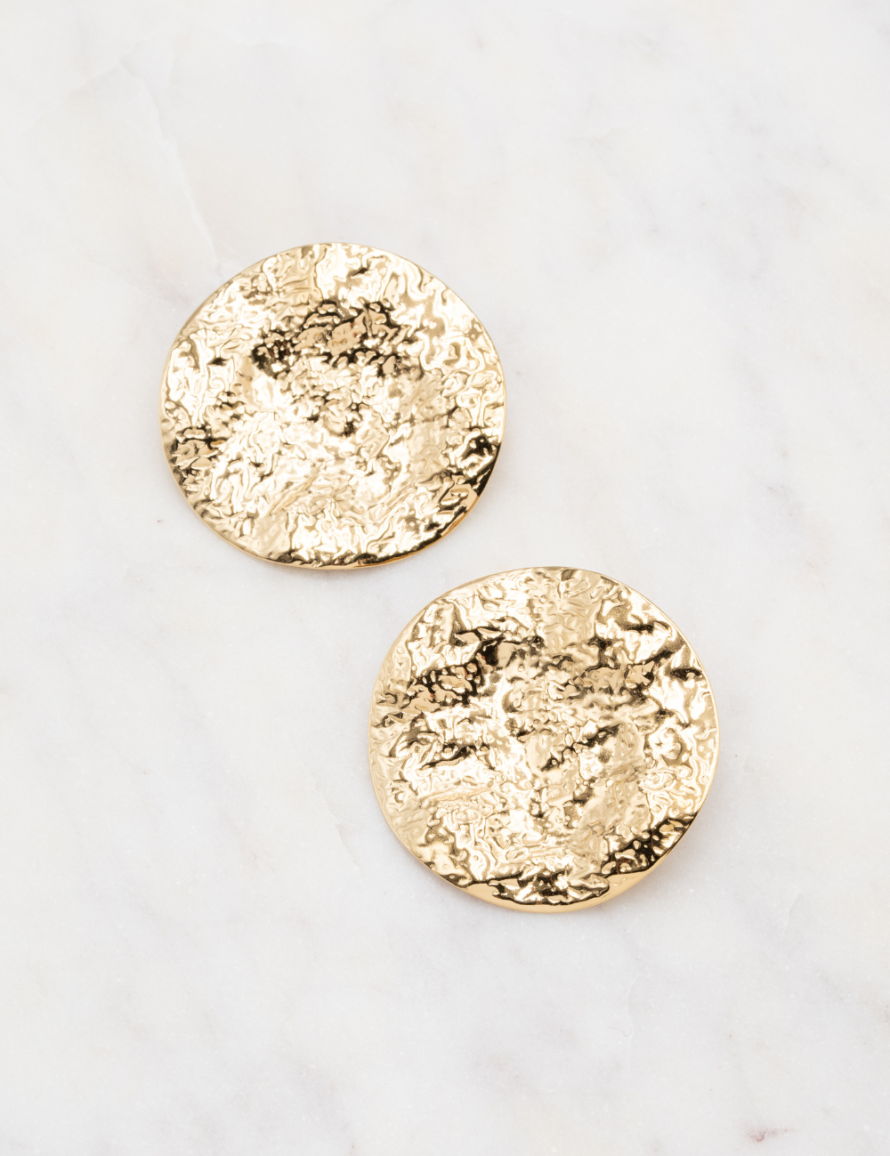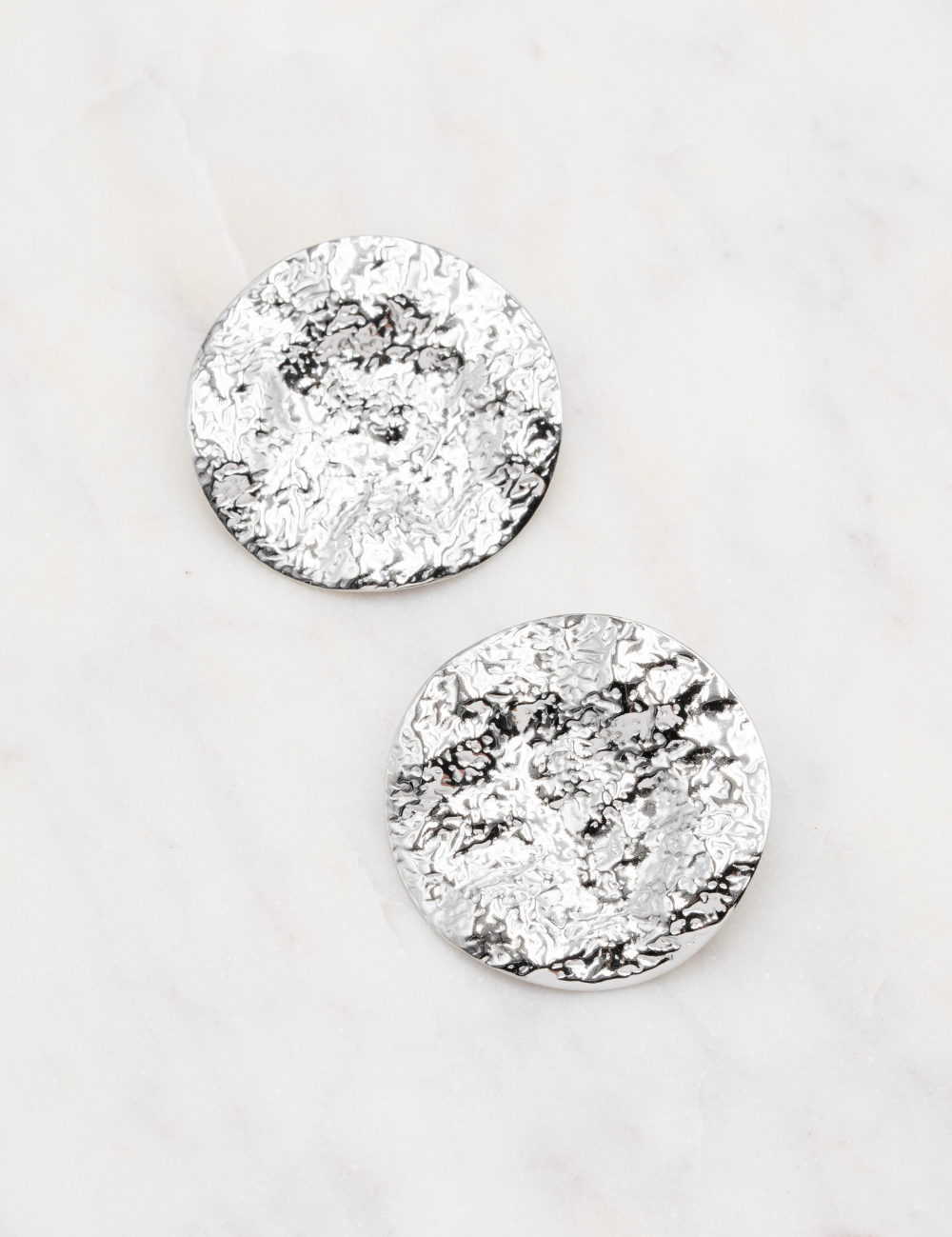 Boucles d'oreilles graphiques à puce composées d'une pièce martelée et reliefée.