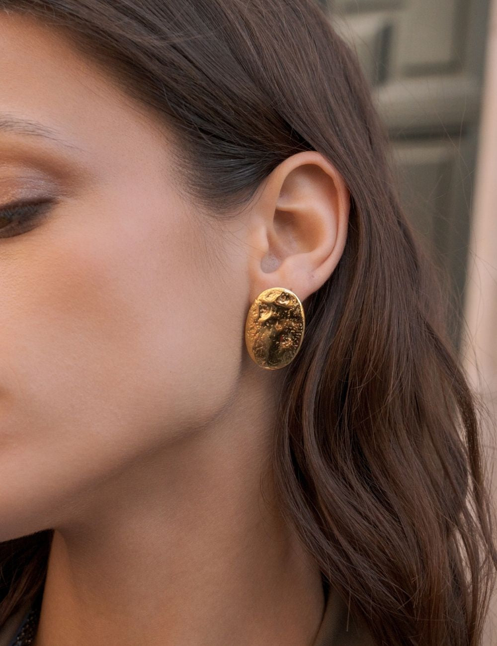 Boucles d'oreilles graphiques à puce composées d'une pièce martelée.