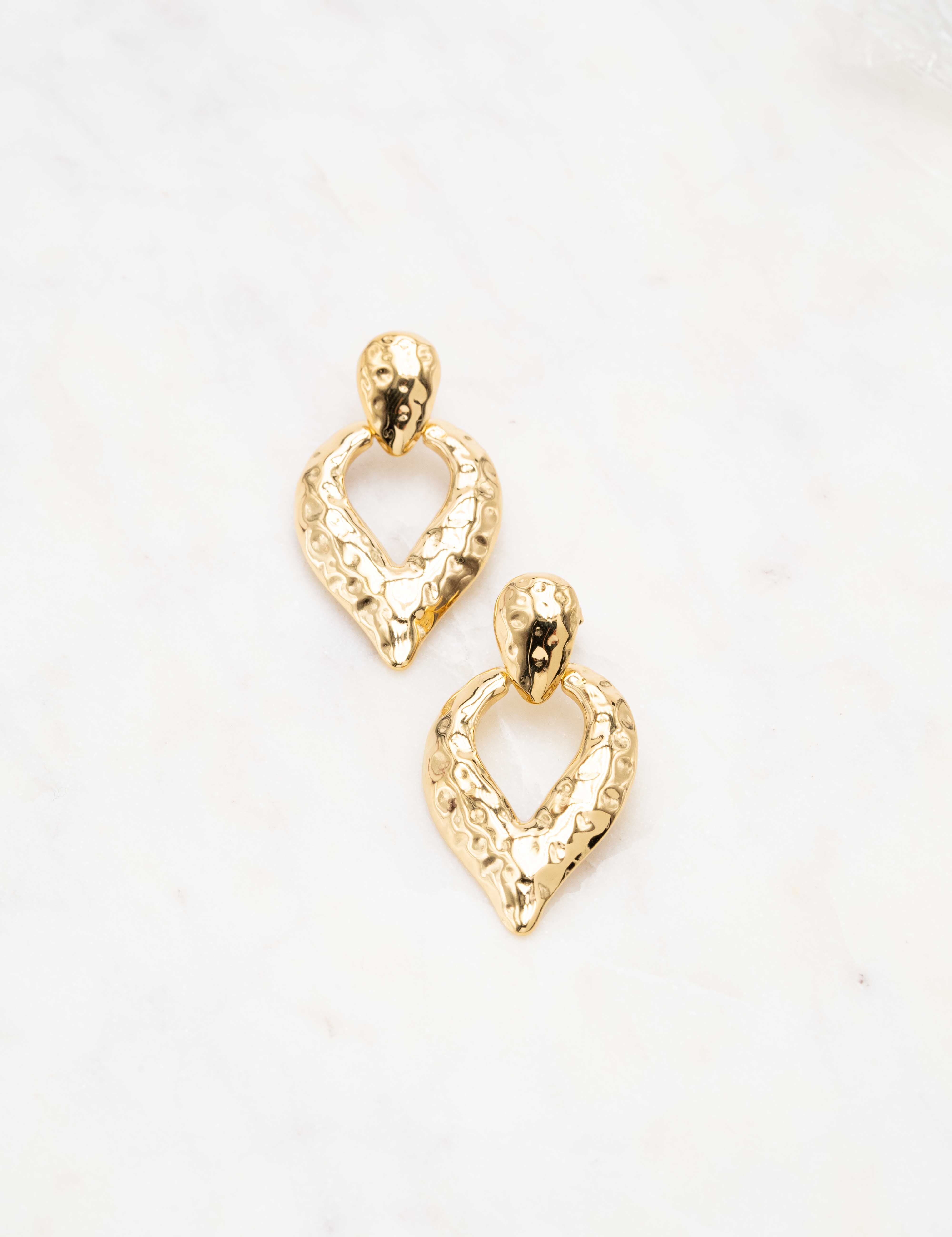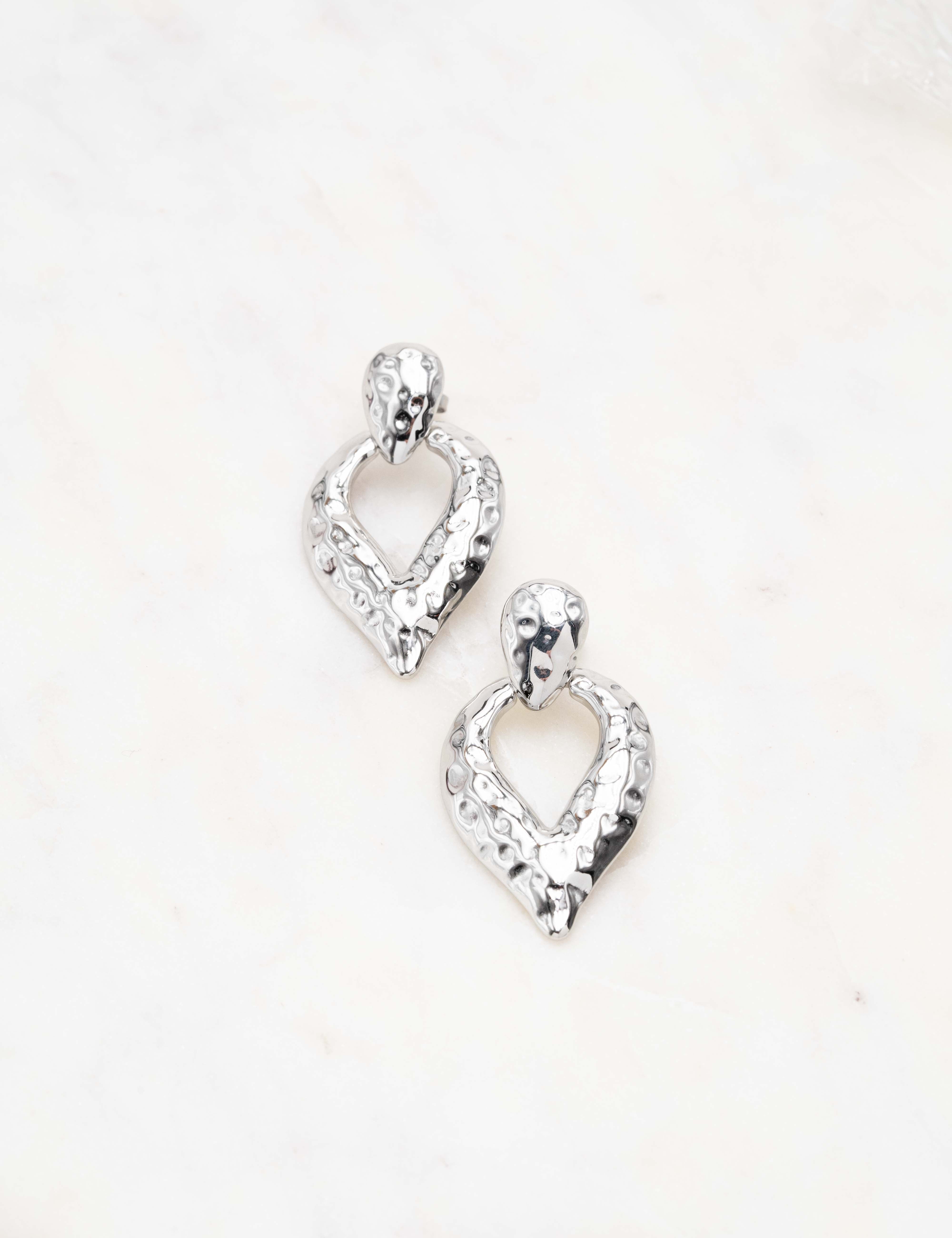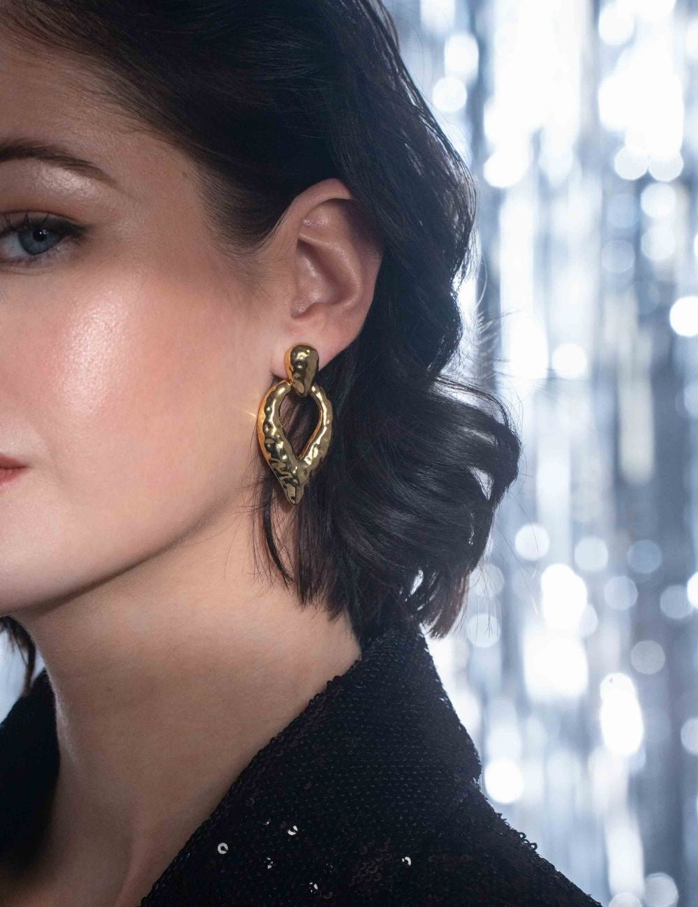 Boucles d'oreilles graphiques à puce pendantes et martelées.