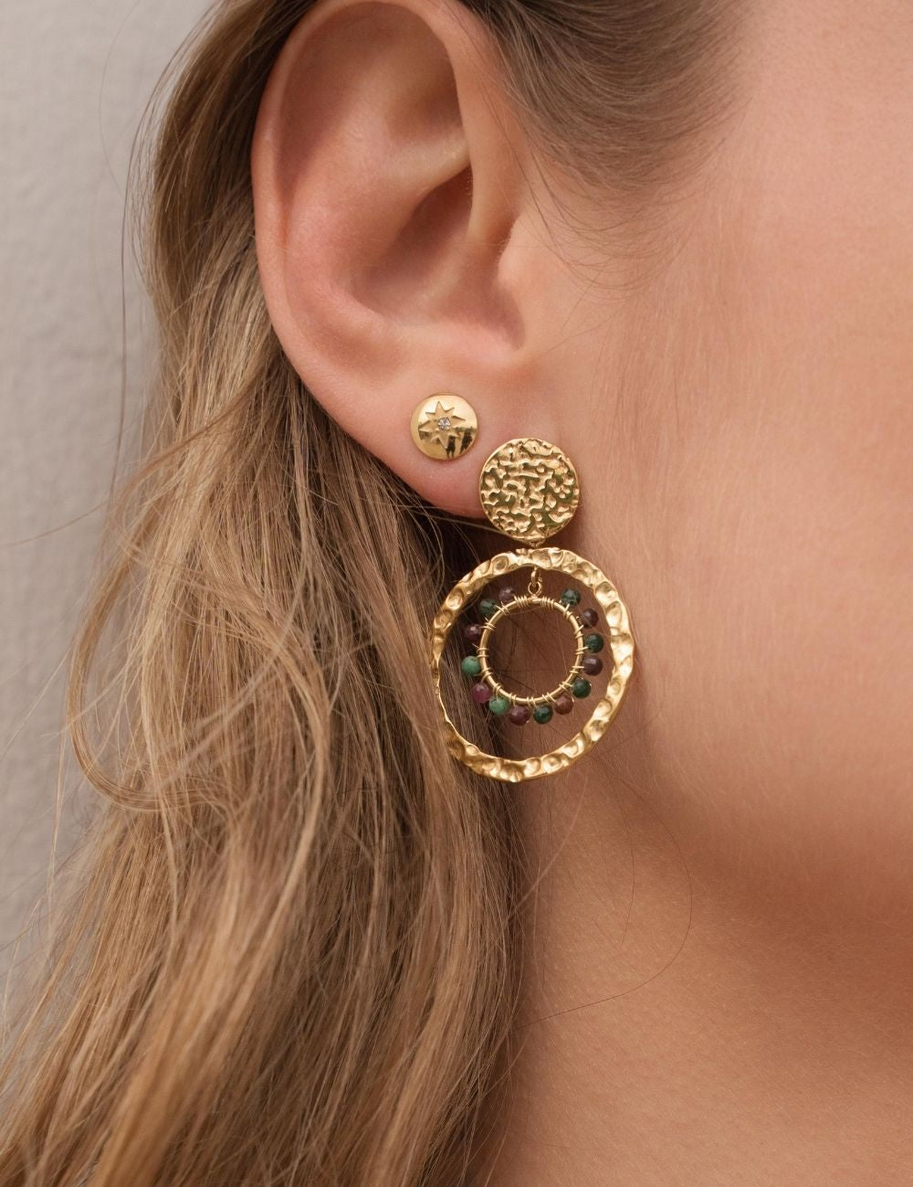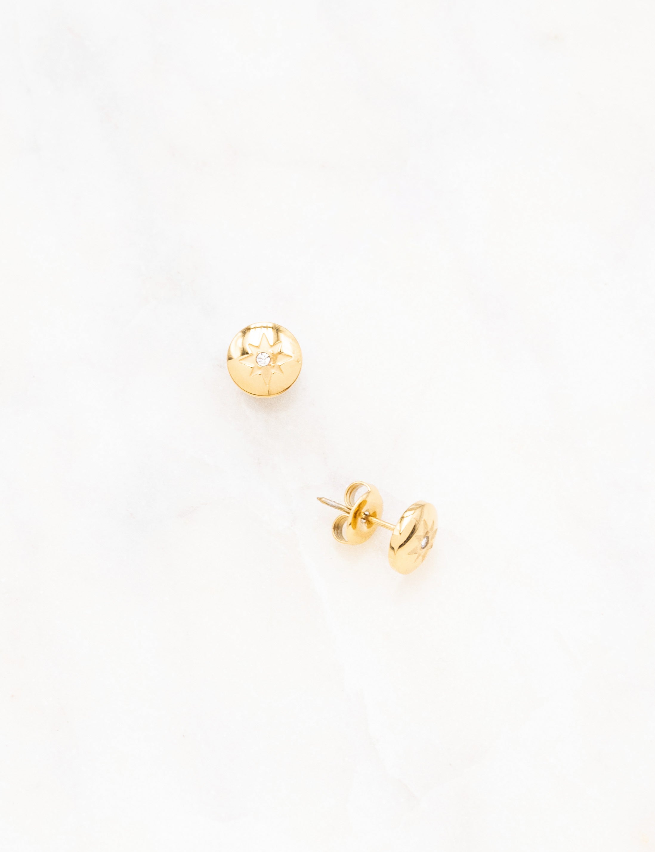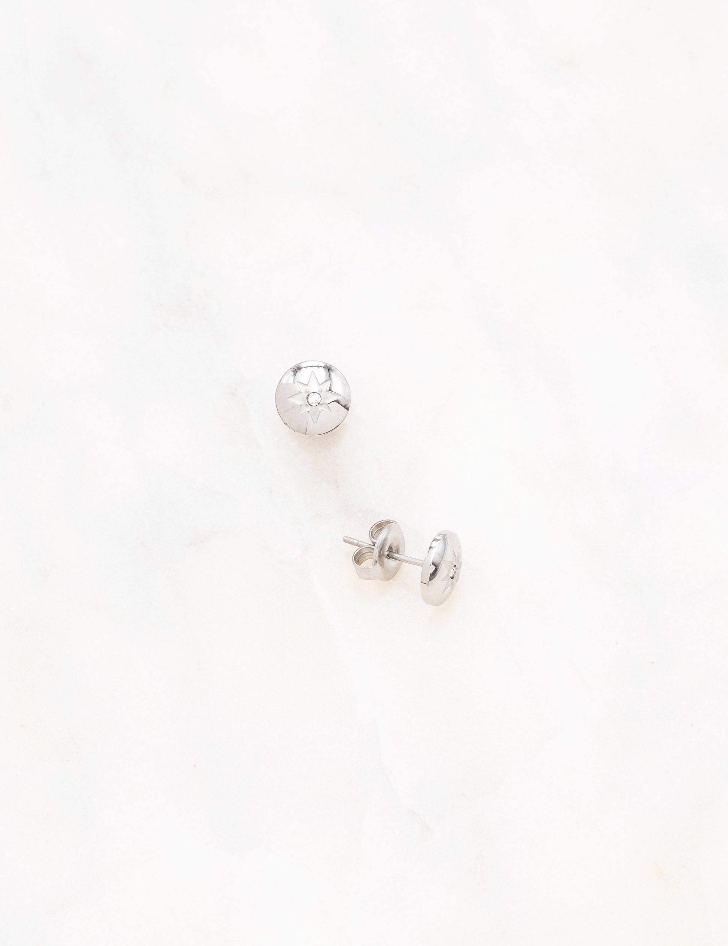Boucles d'oreilles à puce rondes ornées d'un motif étoilé et d'un strass.