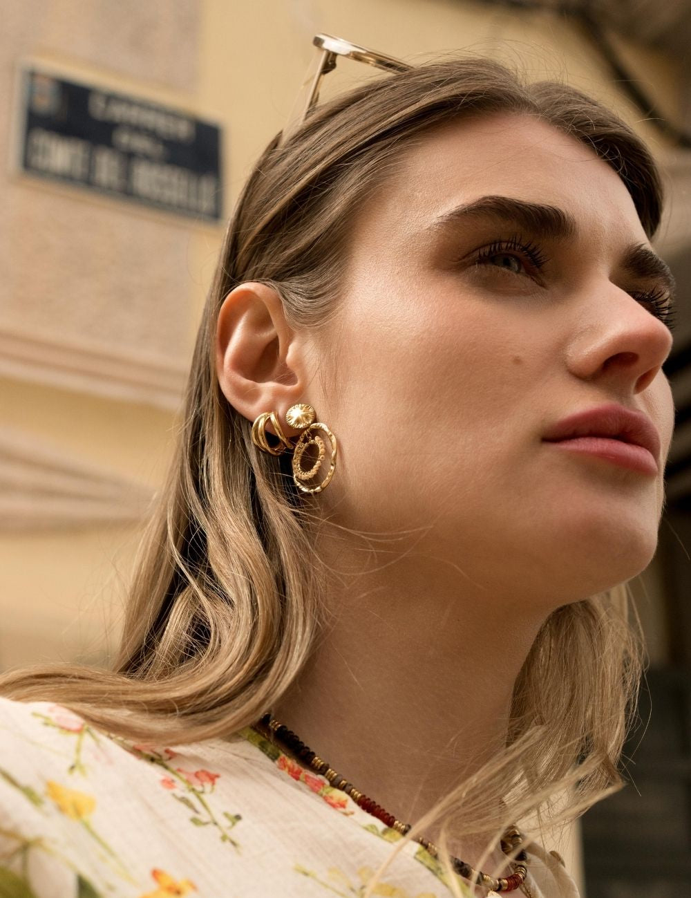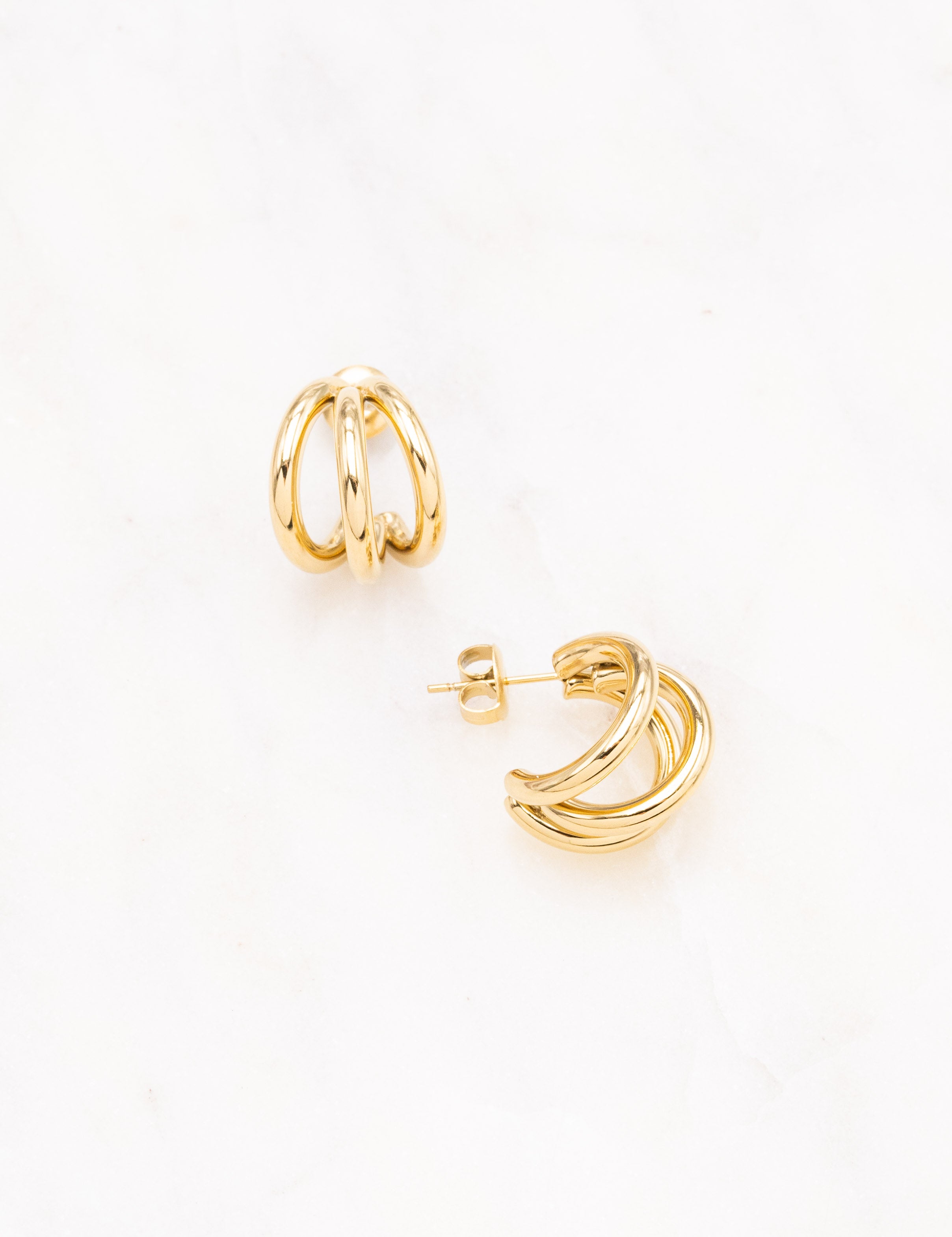 Boucles d'oreilles graphiques type créoles à puce multirangs (3 rangs).