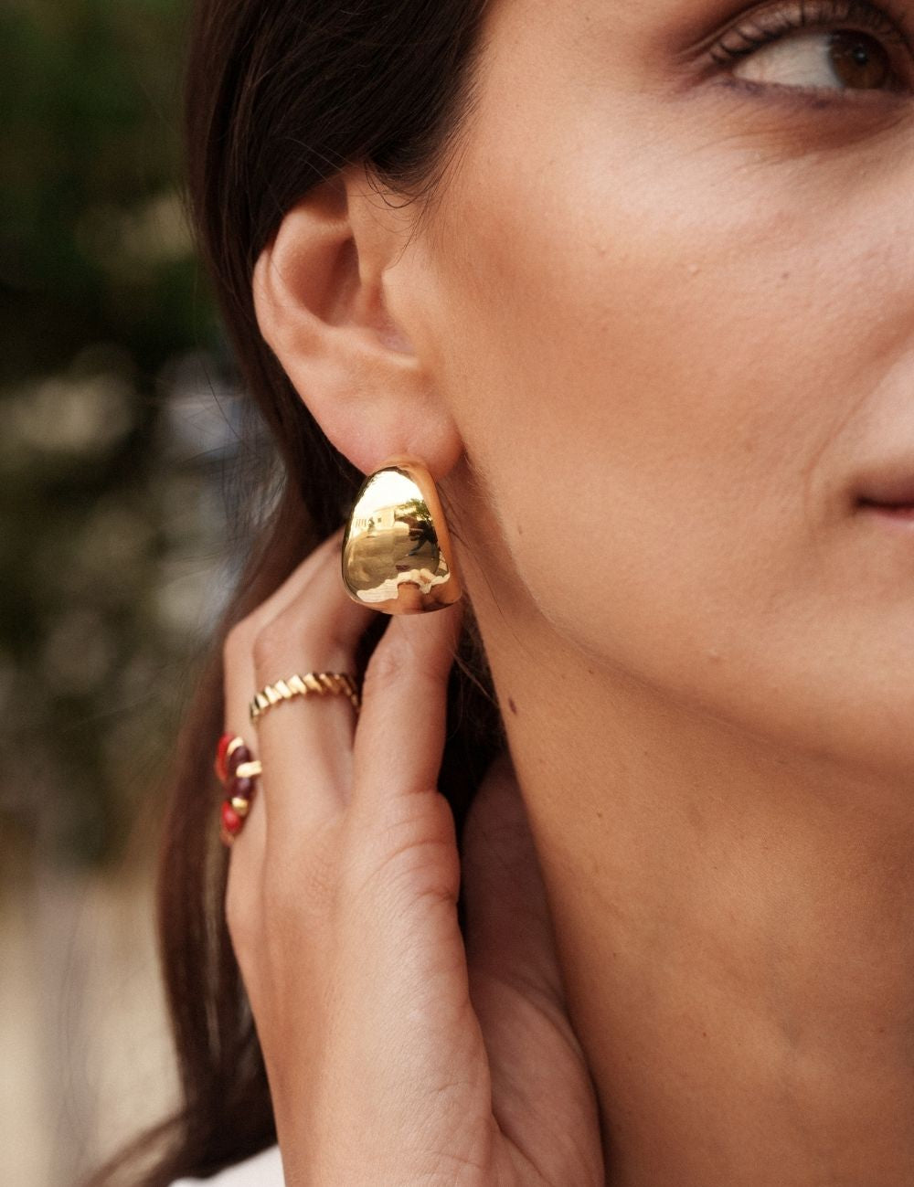 Boucles d'oreilles graphiques de type créoles effet bombé.