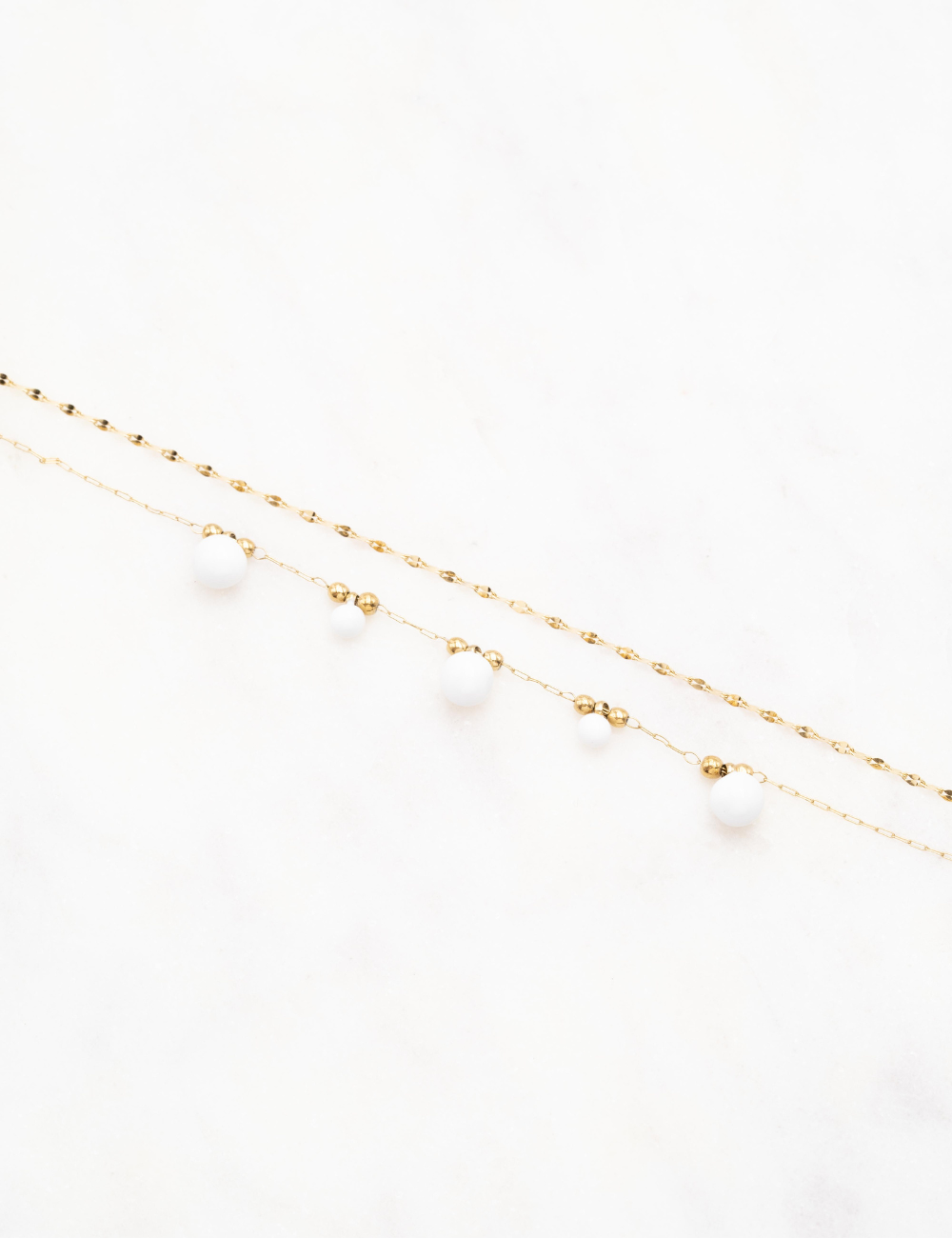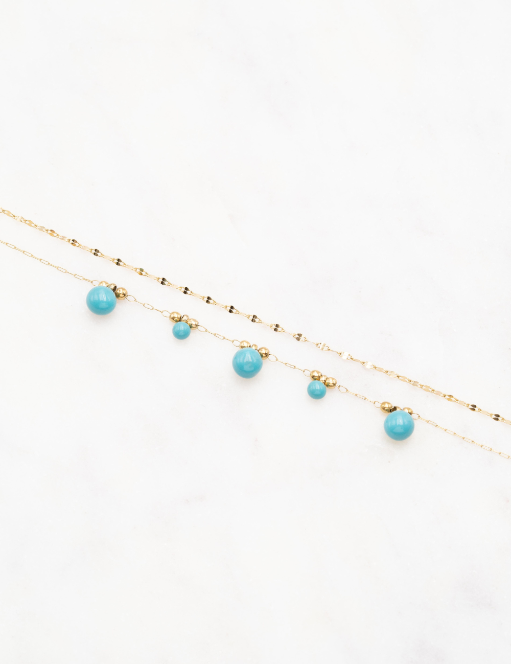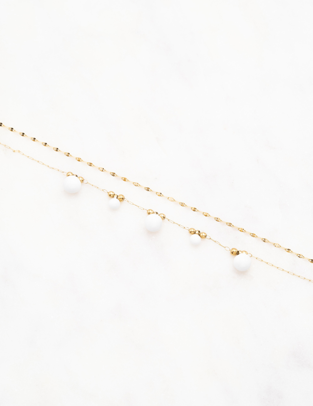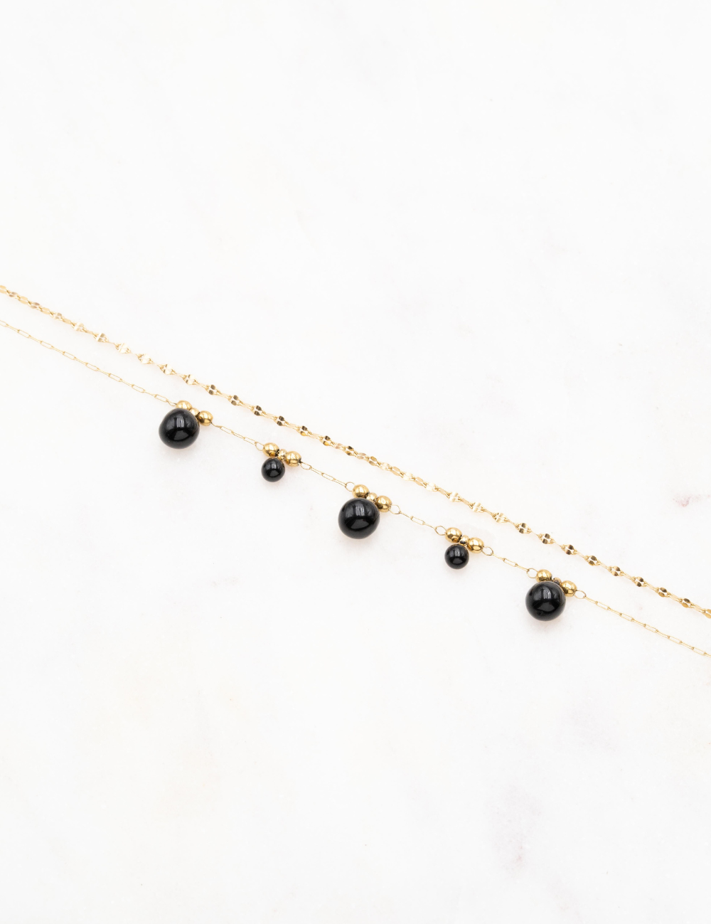 Bracelet réglable double rangs sur chaîne orné de petites boules en acier et en émail coloré.