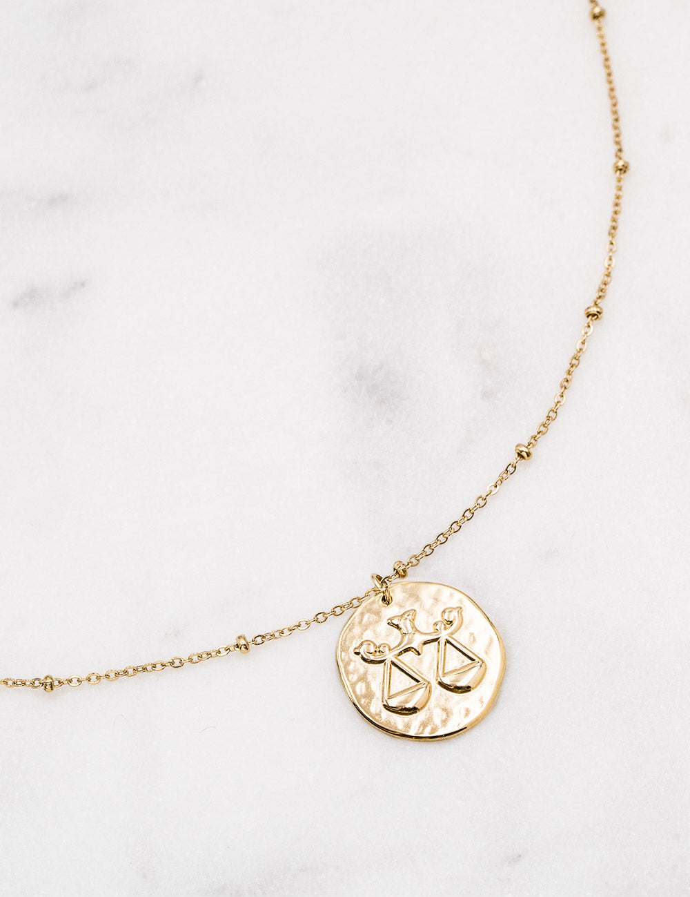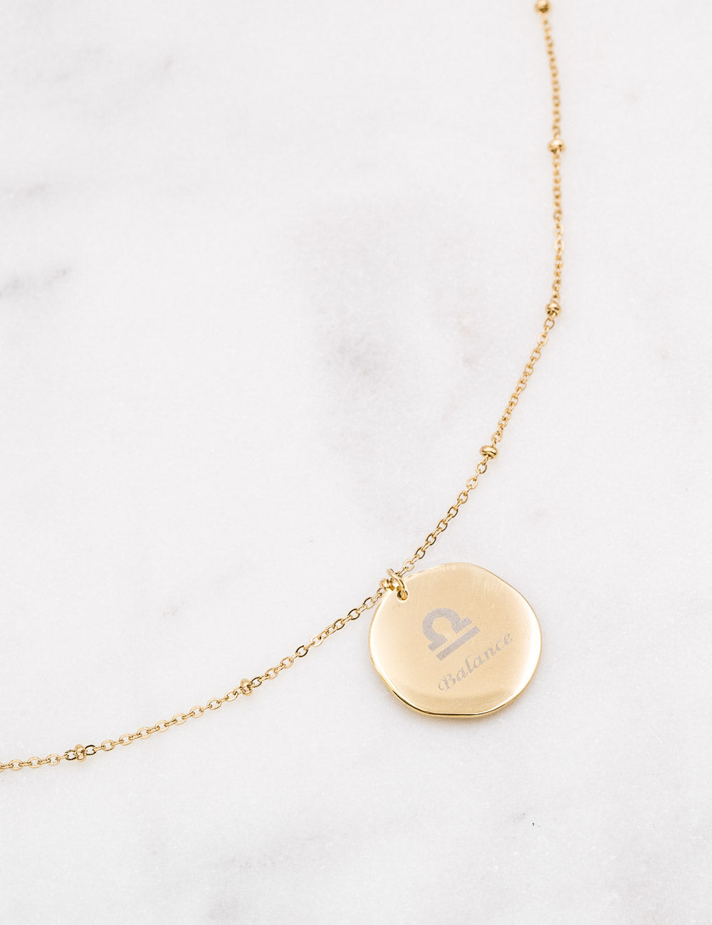 Collier sur chaine réglable avec pendant au motif du signe du zodiaque.