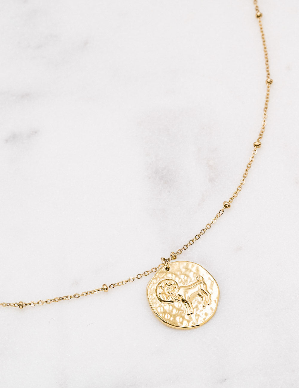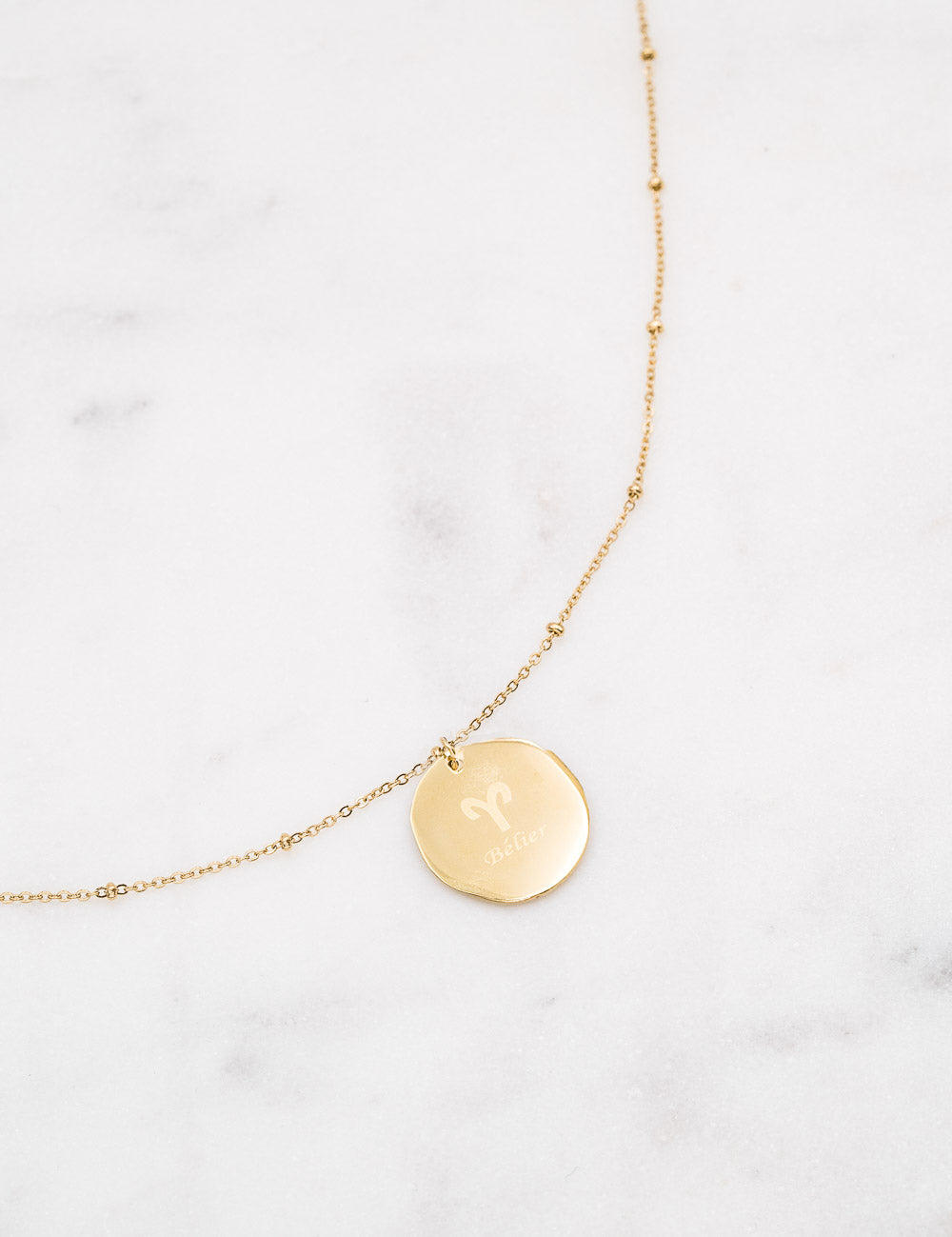 Collier sur chaine réglable avec pendant au motif du signe du zodiaque.