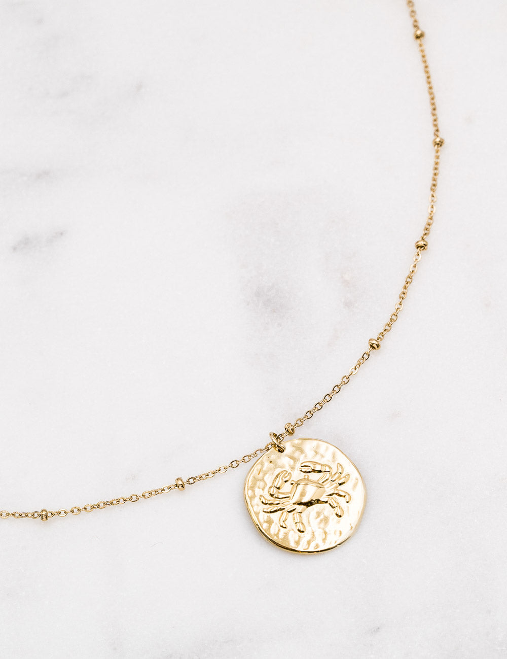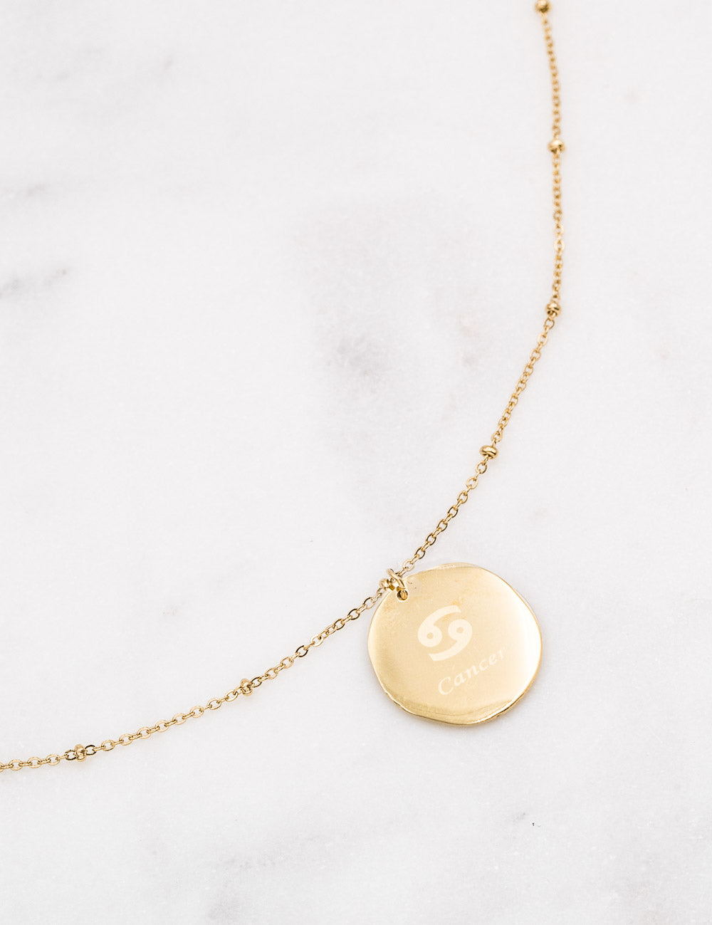 Collier sur chaine réglable avec pendant au motif du signe du zodiaque.