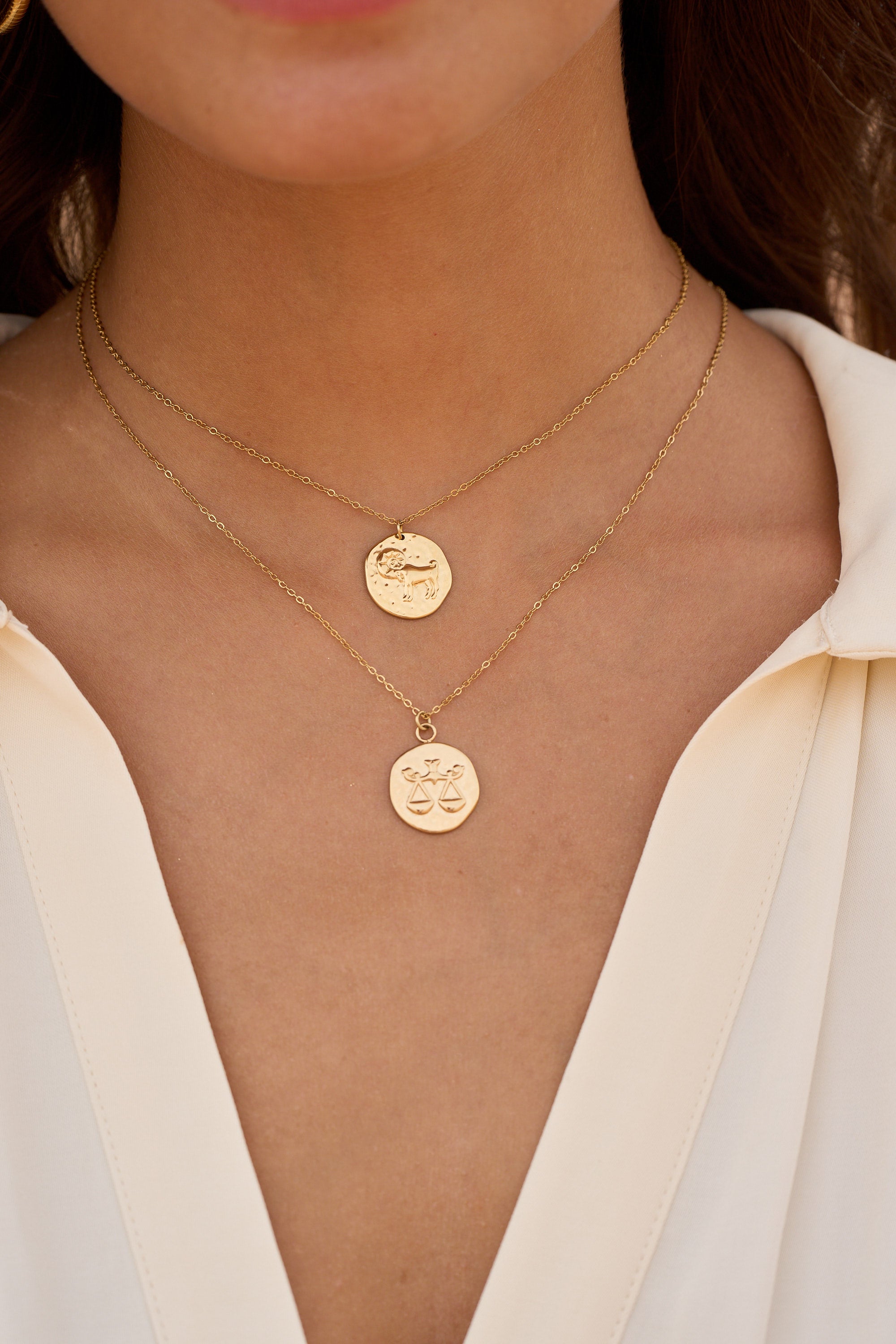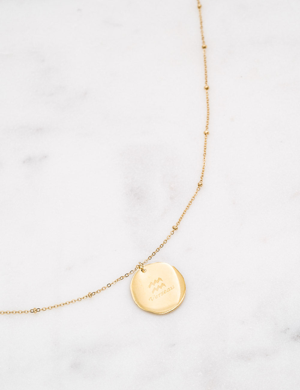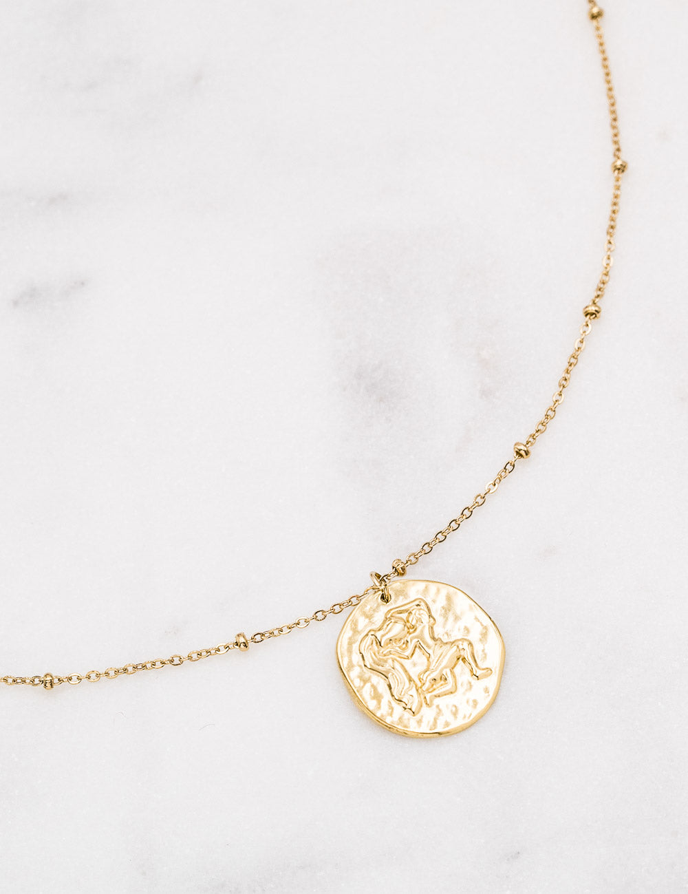 Collier sur chaine réglable avec pendant au motif du signe du zodiaque.
