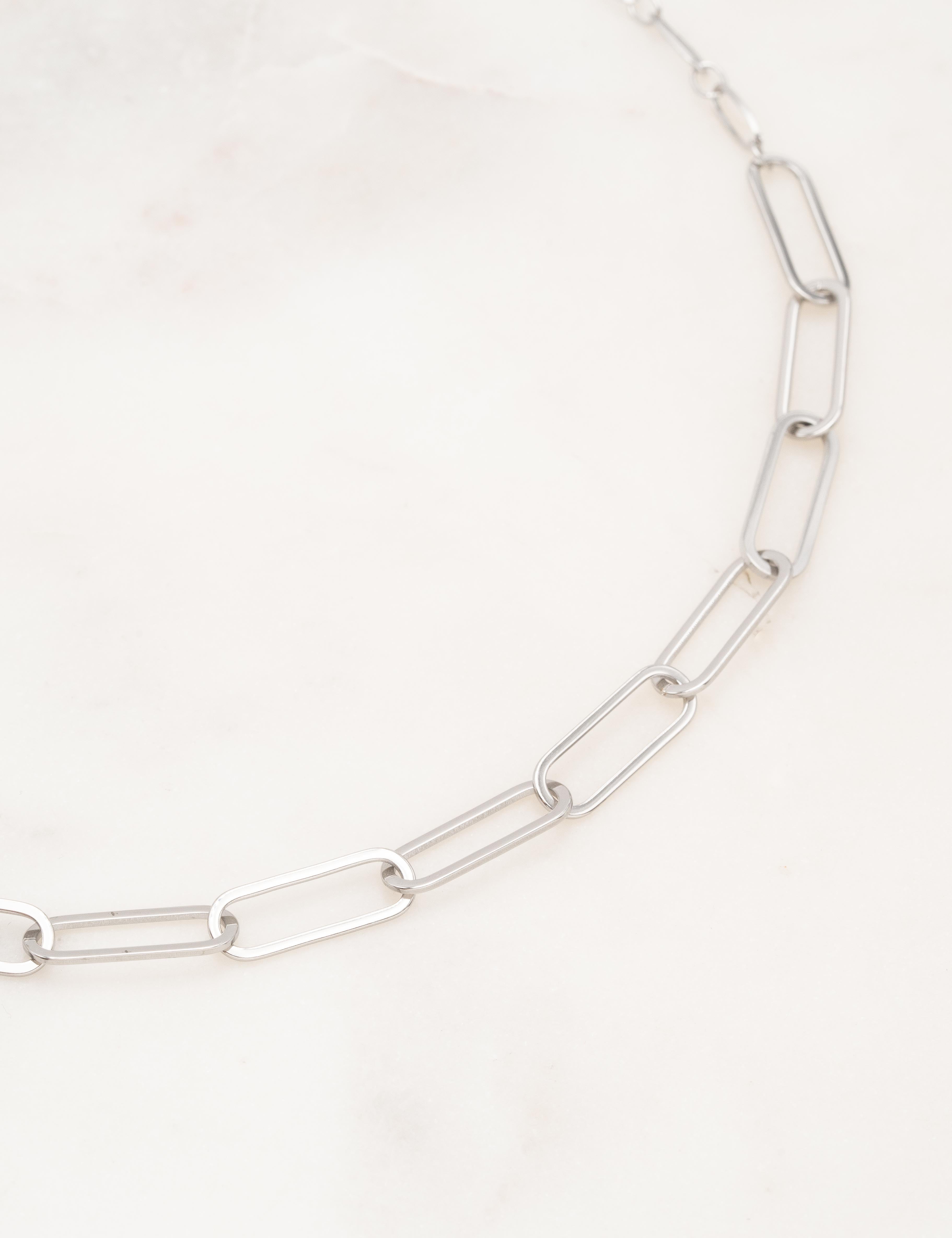 Collier réglable graphique composé d'un jeu d'anneaux minimalistes. Fermoir mousqueton et chainette de réglage.
