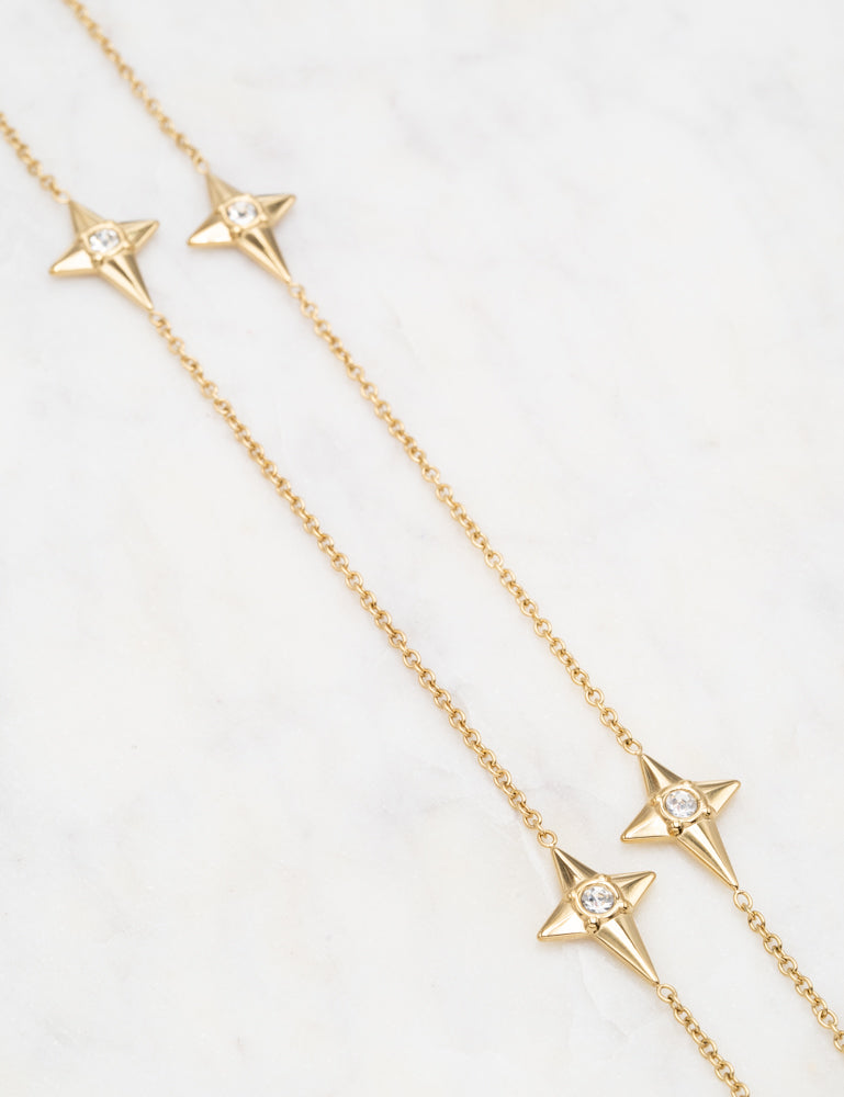 Collier type sautoir composé de 4 étoiles ornées de strass.