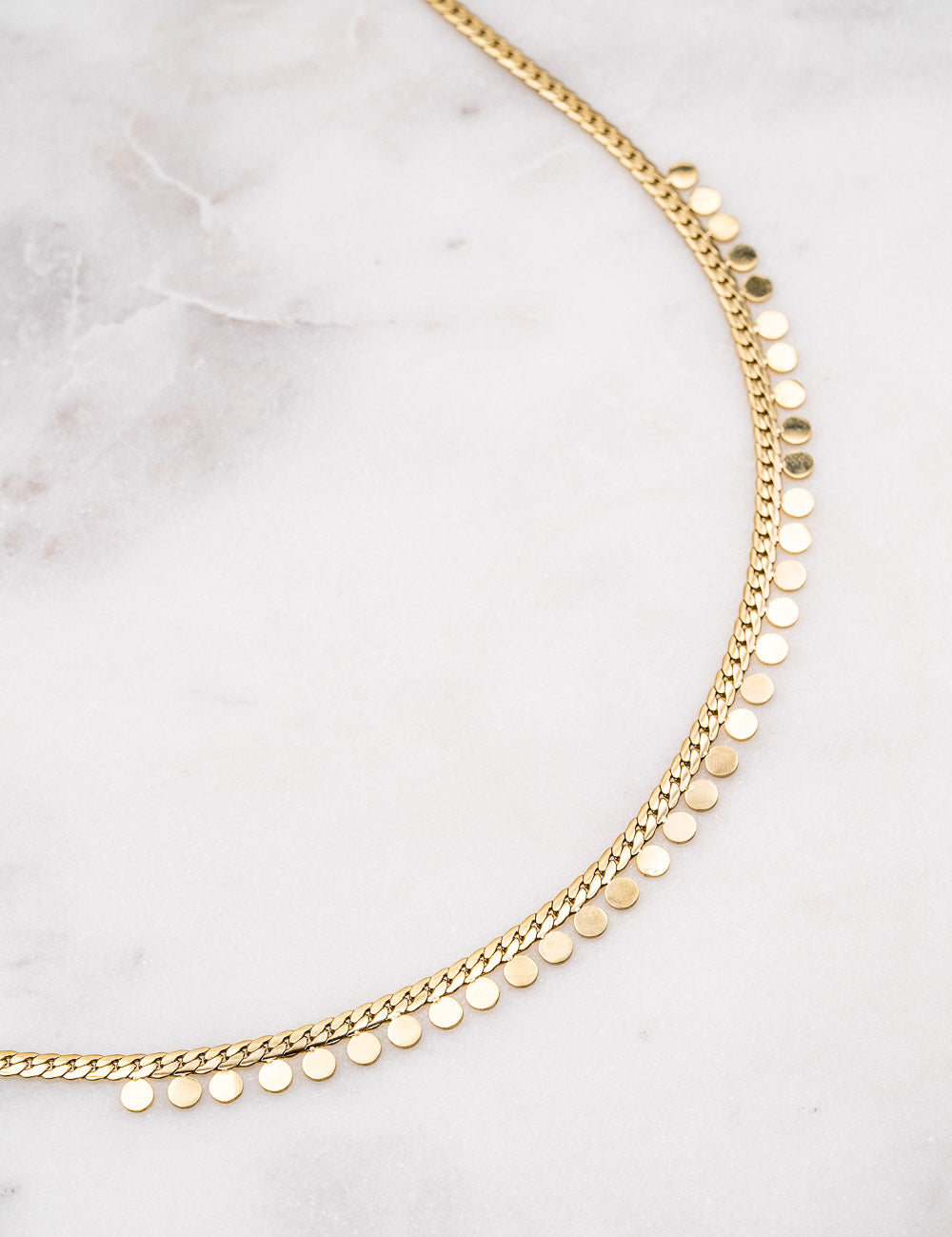 Collier sur chaine maille composé de pampilles rondes.
