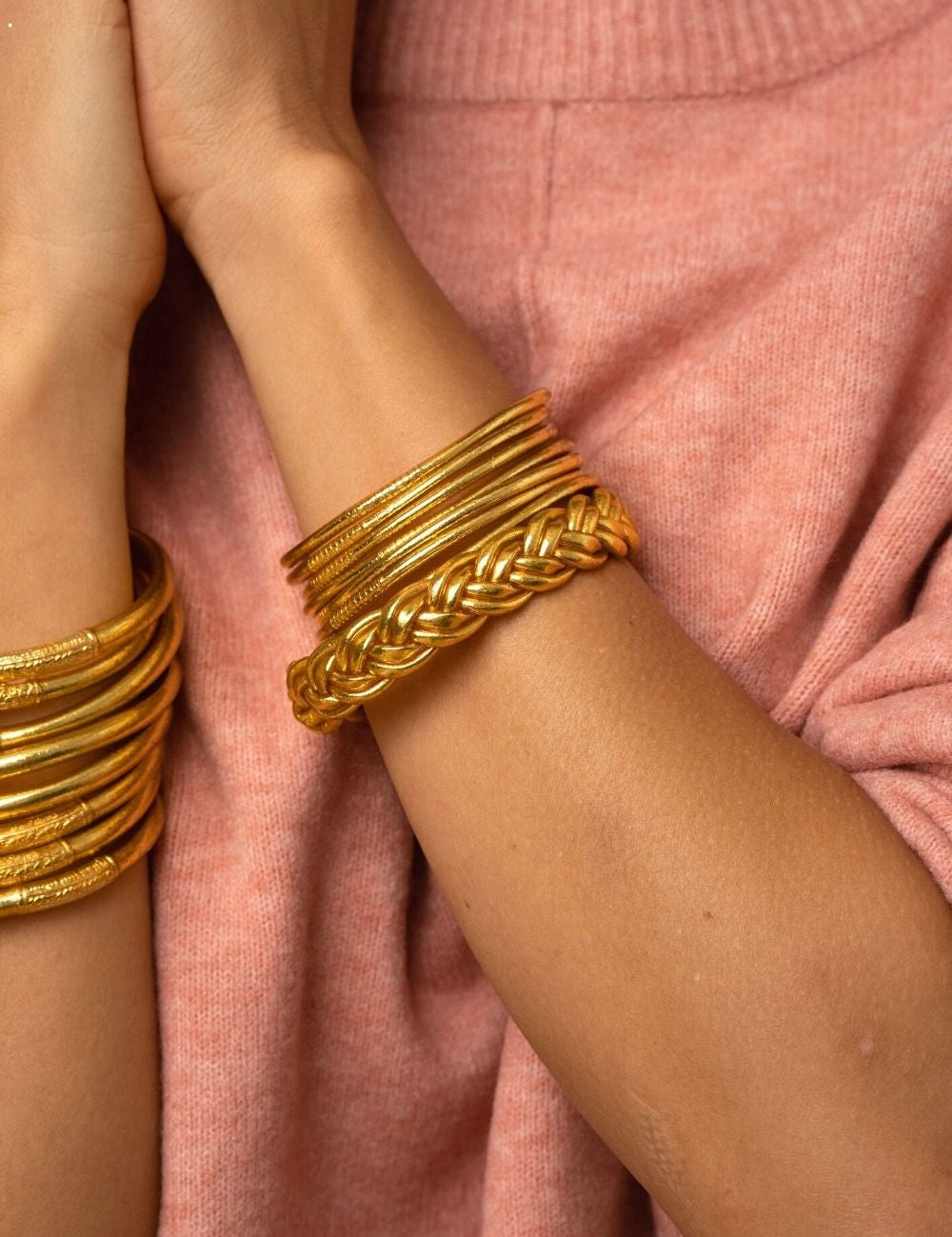 Bracelet Bouddhiste double Tressé - Doré