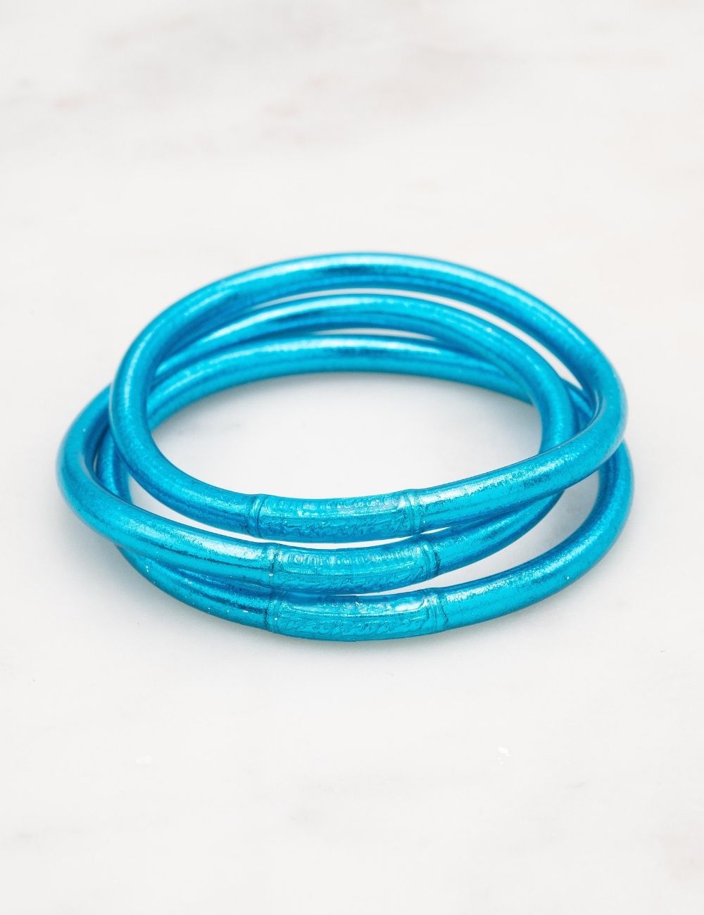 L'eau savonneuse permet aussi de les enfiler et enlèvera également l'excès de paillette qui pourrait se trouver sur le bracelet.