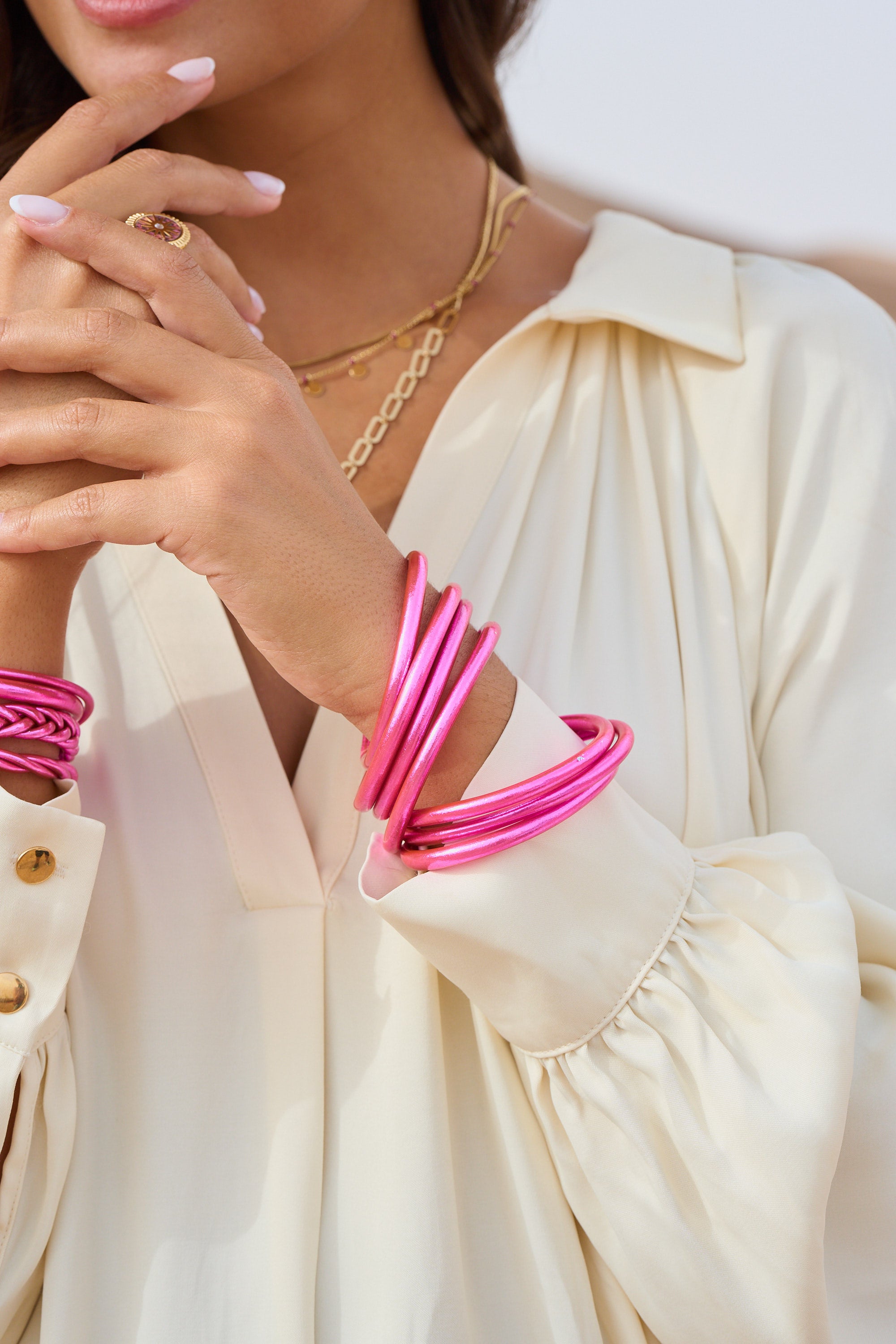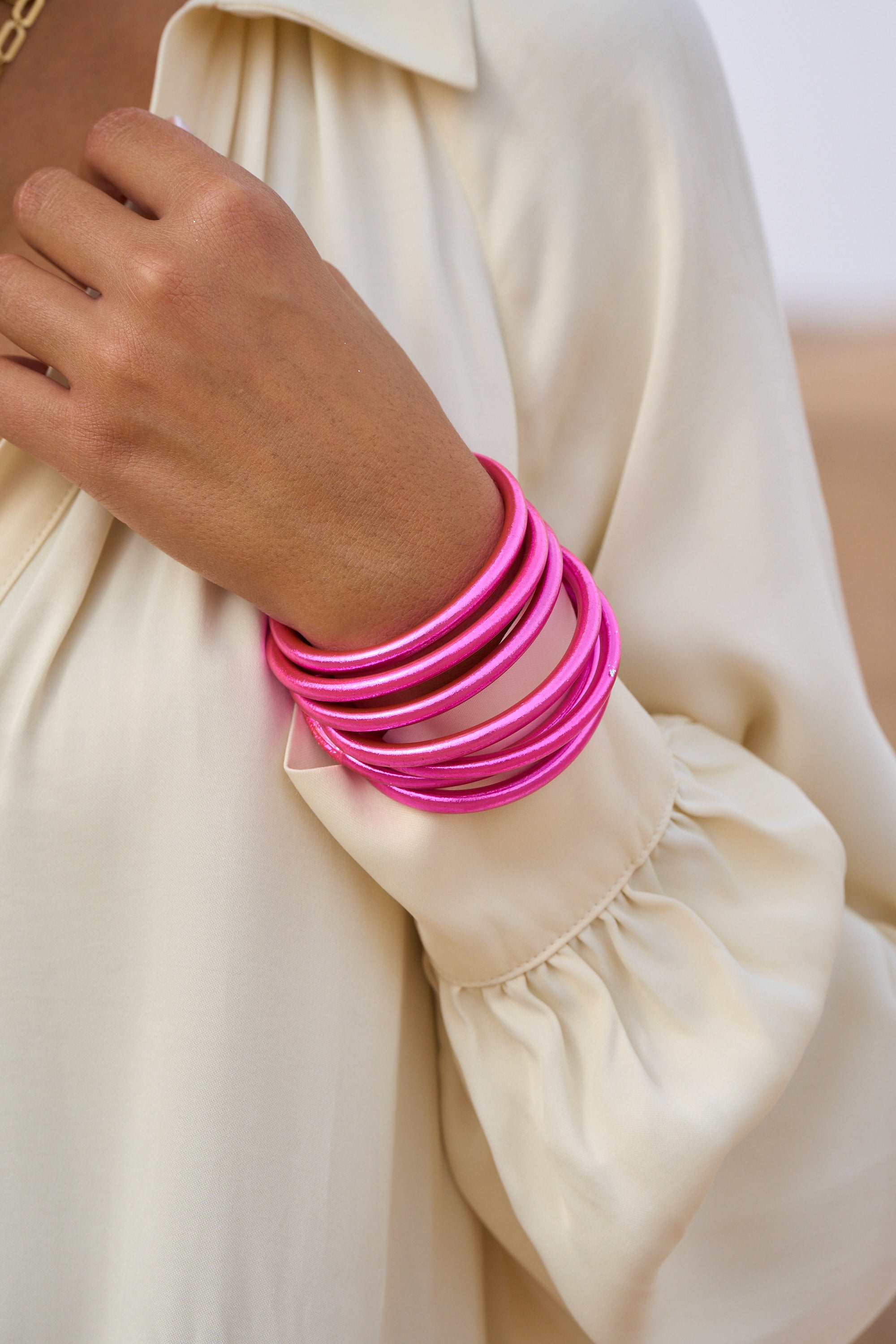 Chauffer légèrement les bracelets au sèche cheveux pour les détendre ou les passer sous l'eau chaude.