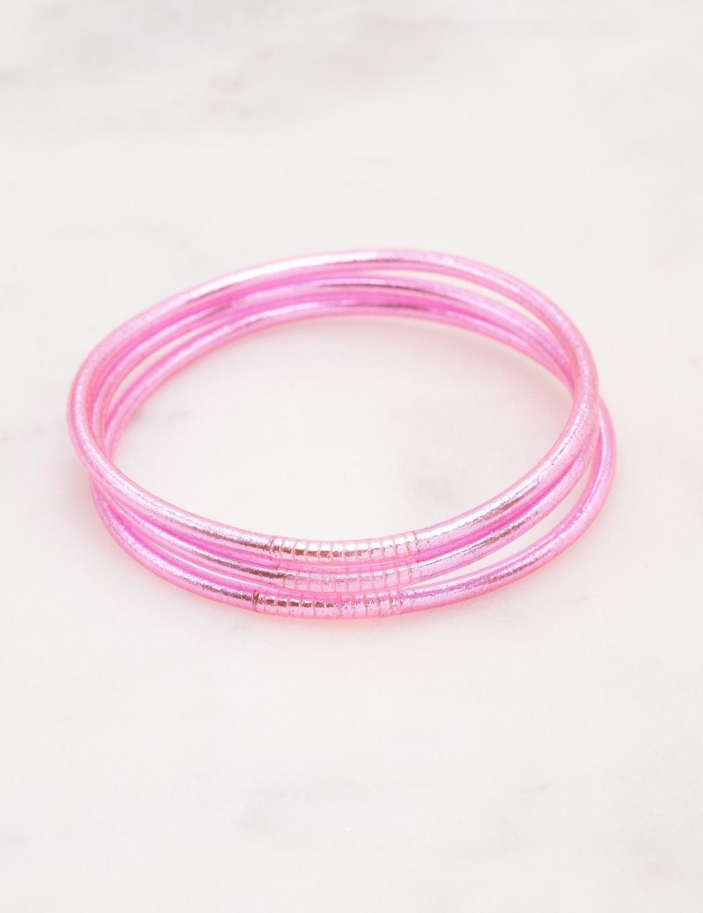L'eau savonneuse permet aussi de les enfiler et enlèvera également l'excès de paillette qui pourrait se trouver sur le bracelet.
