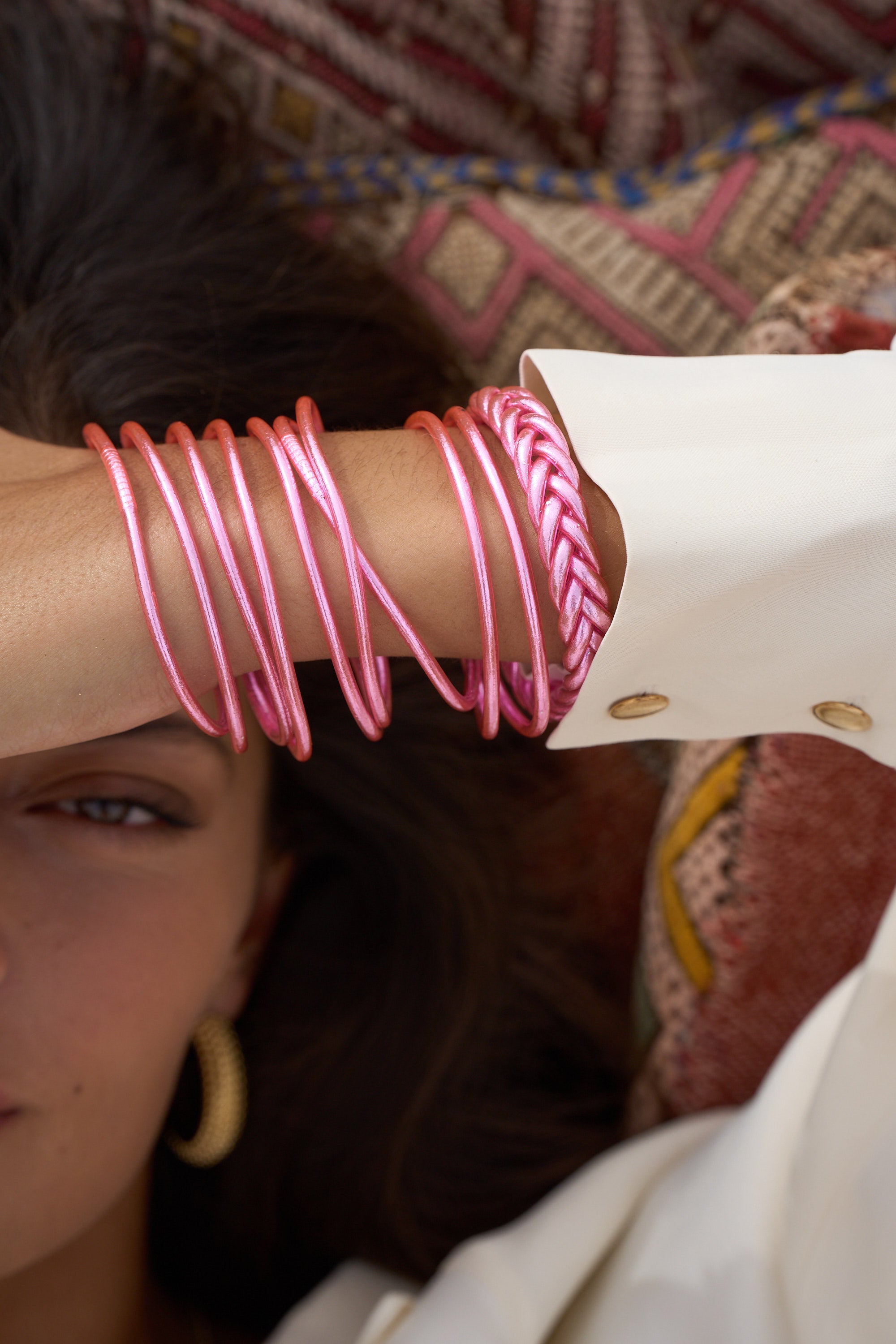 Chauffer légèrement les bracelets au sèche cheveux pour les détendre ou les passer sous l'eau chaude.