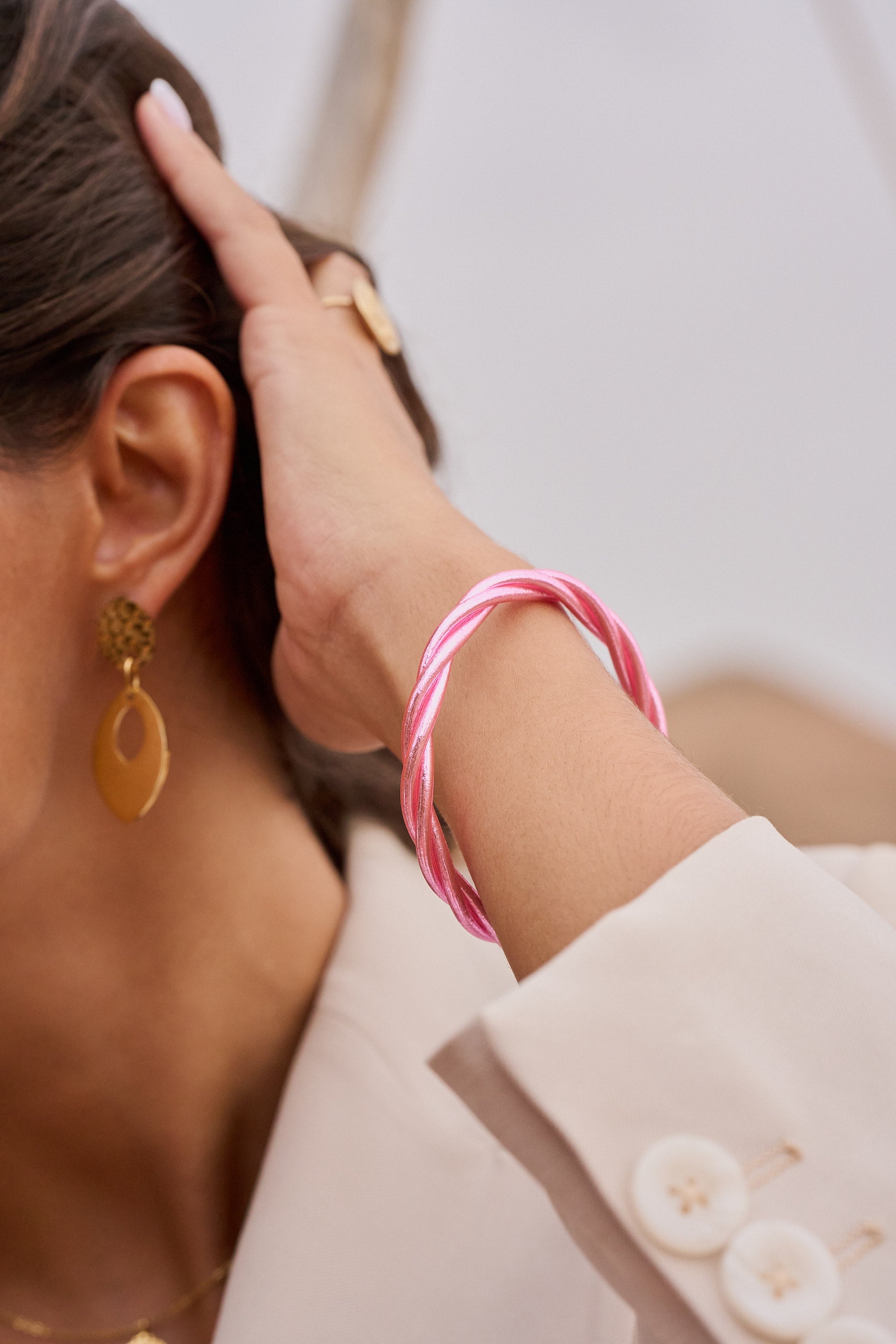 Bracelet Bouddhiste torsadé - Rose