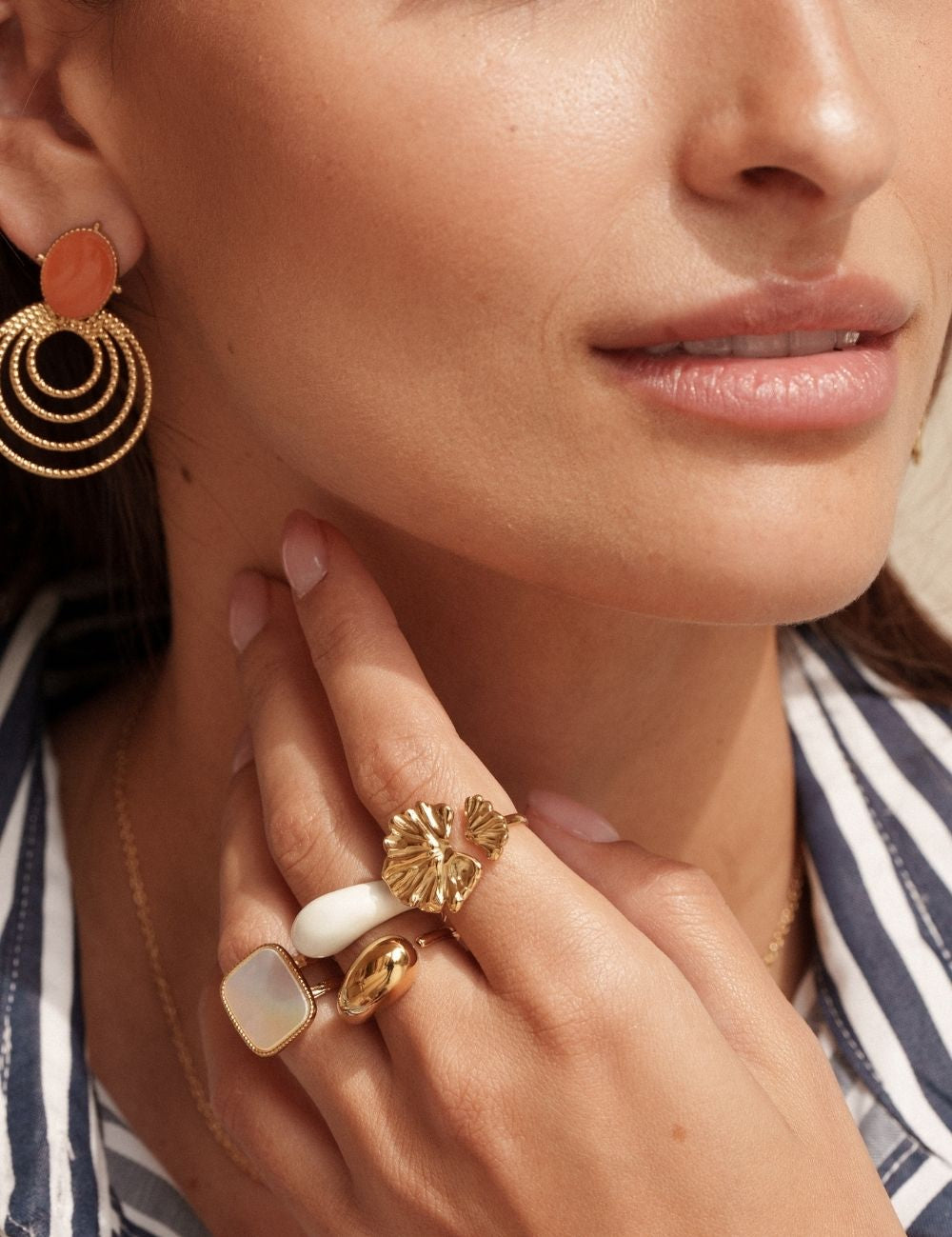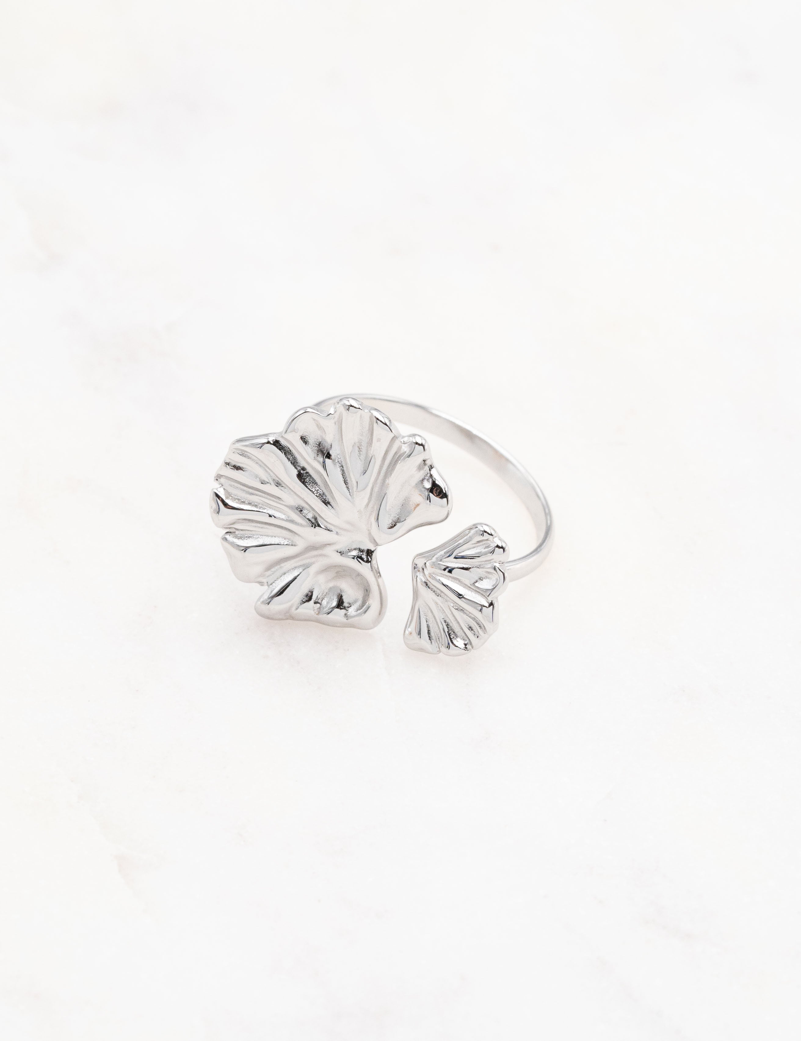 Bague fine ajustable composée de deux pièces au motif feuillage.