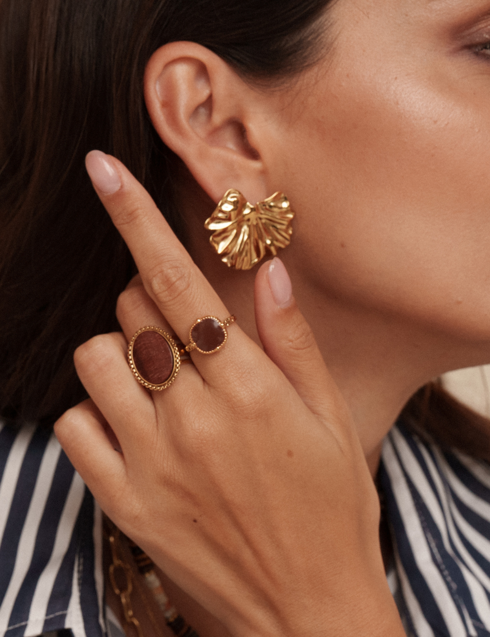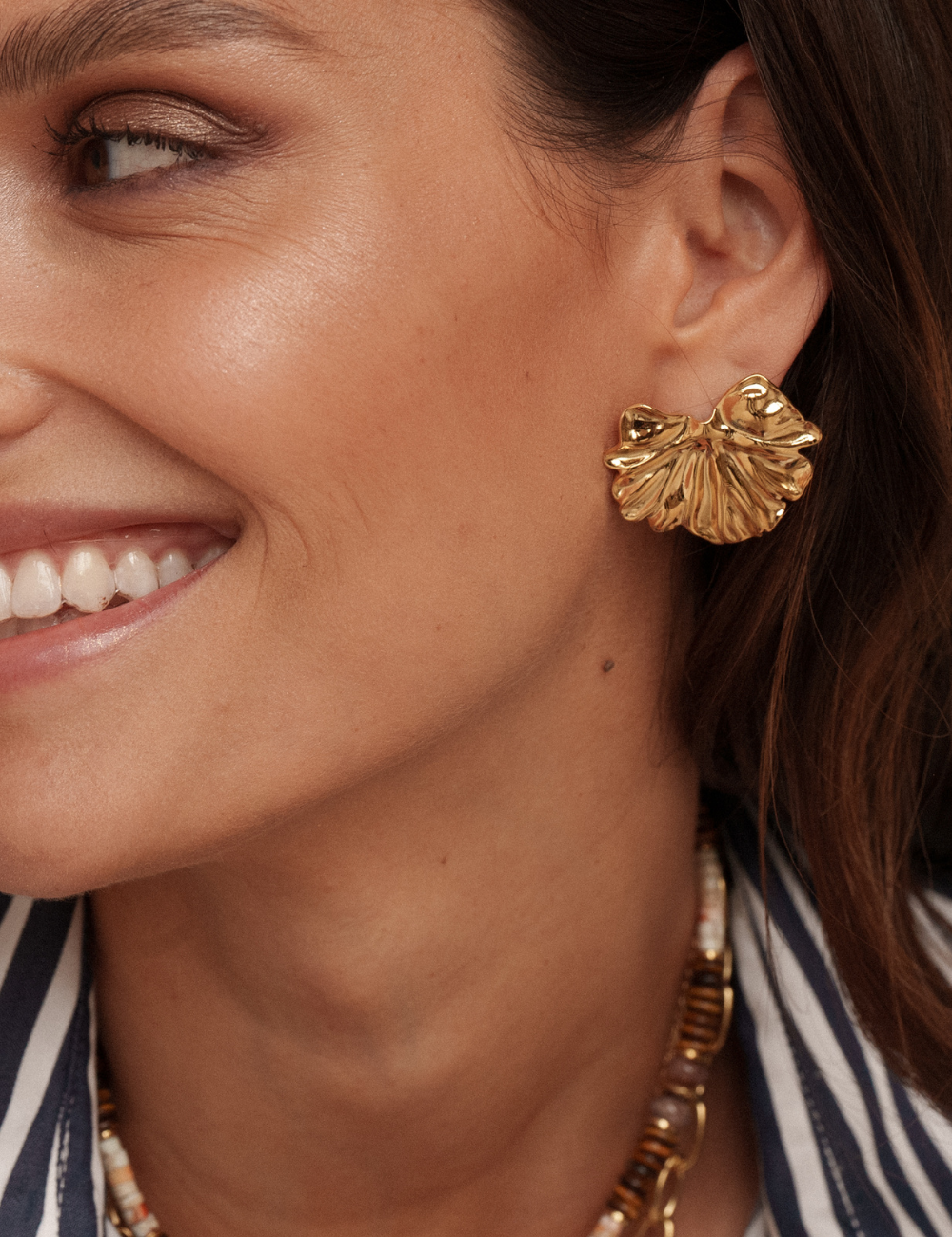 Boucles d'oreilles graphiques à puce composées d'une pièce au motif feuillage.