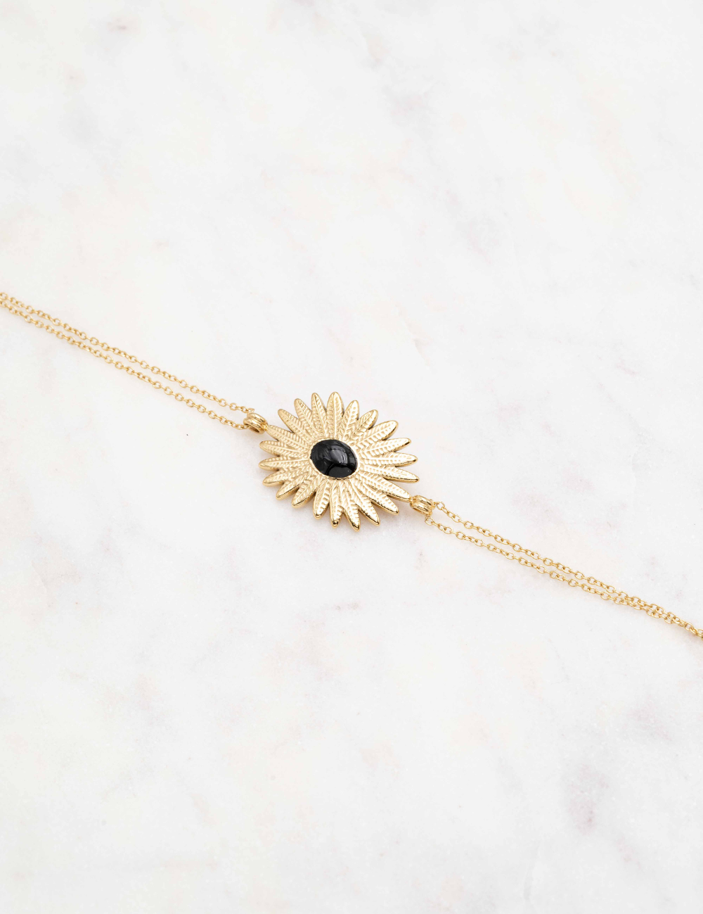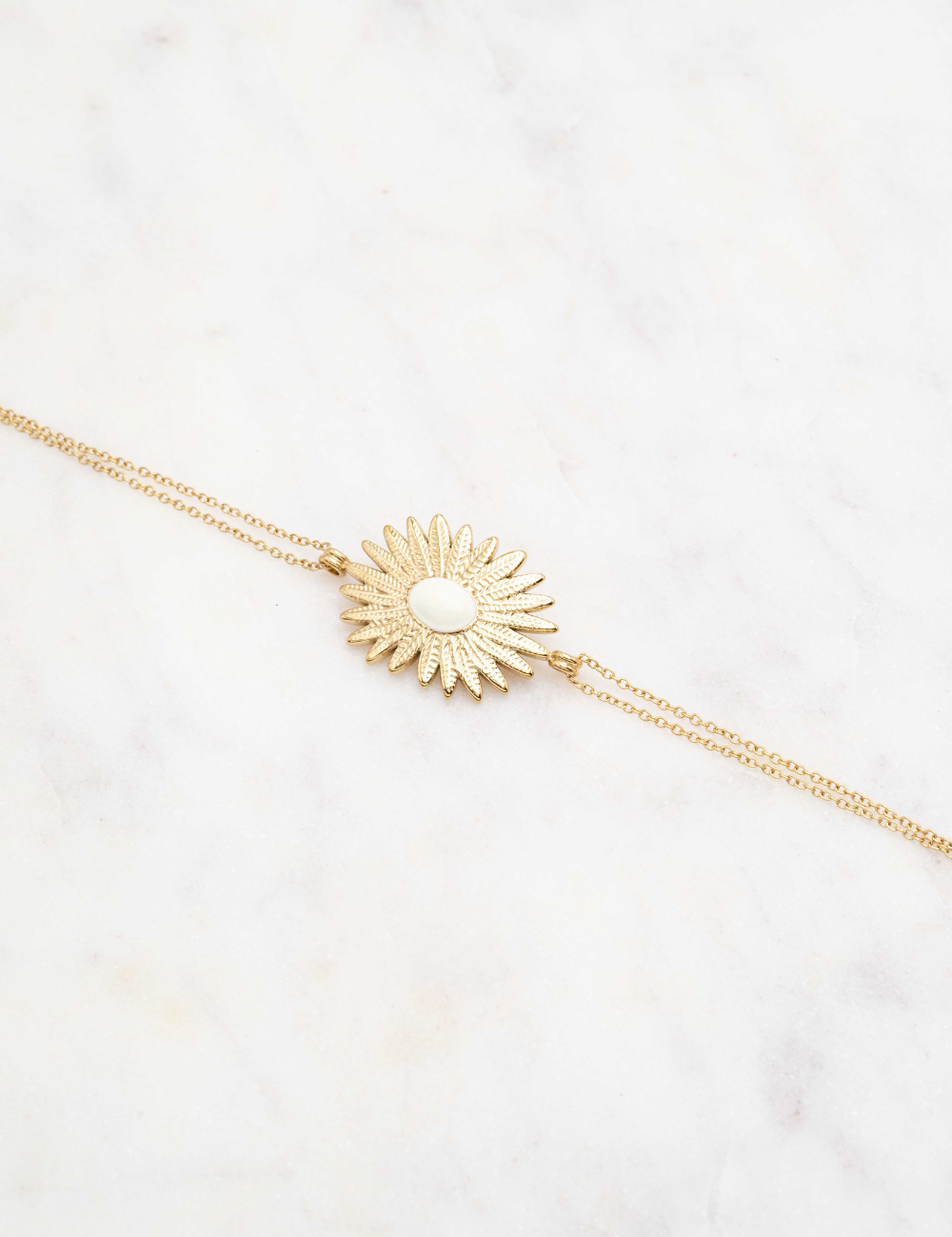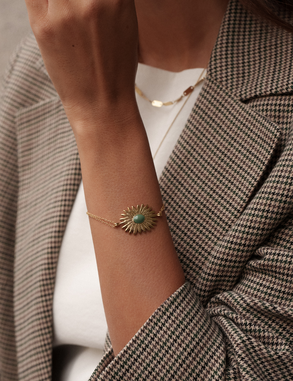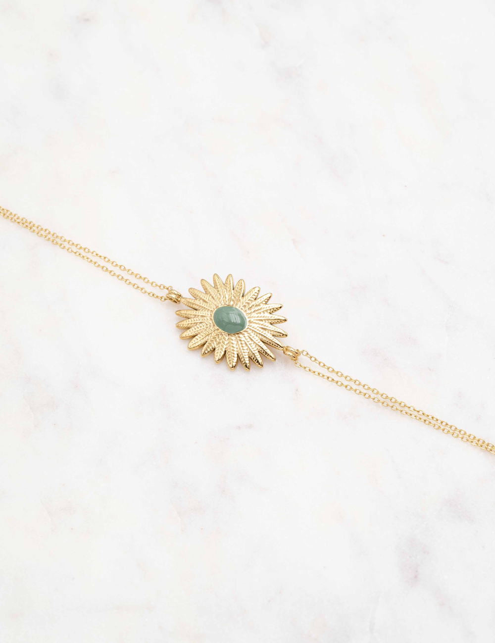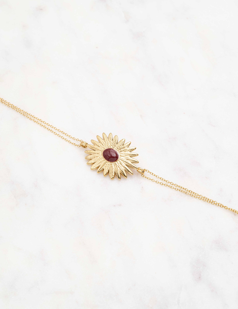 Bracelet réglable composé d'une pièce au motif feuillage orné d'une touche émaillée colorée.