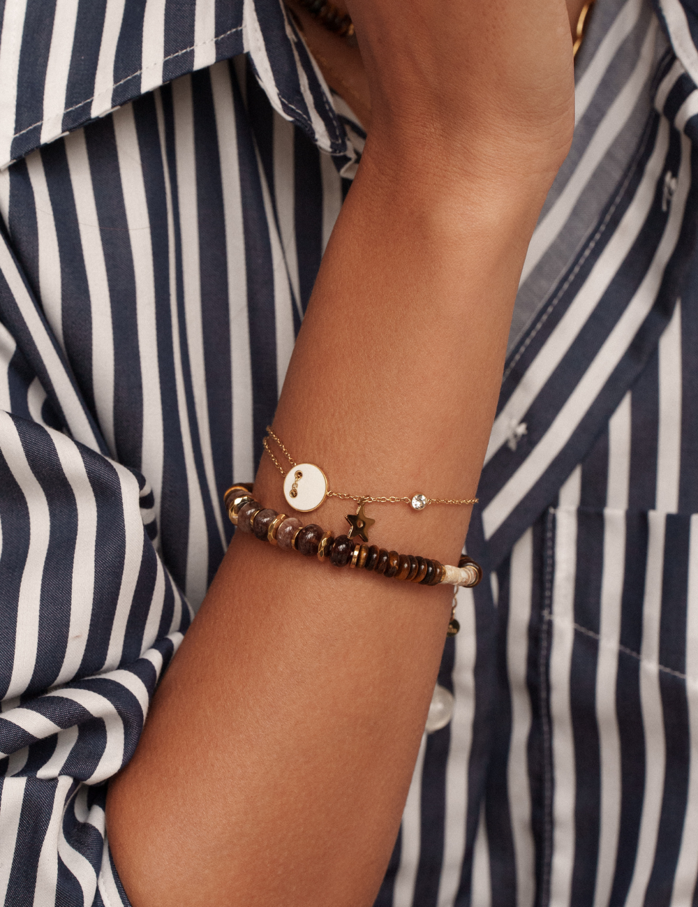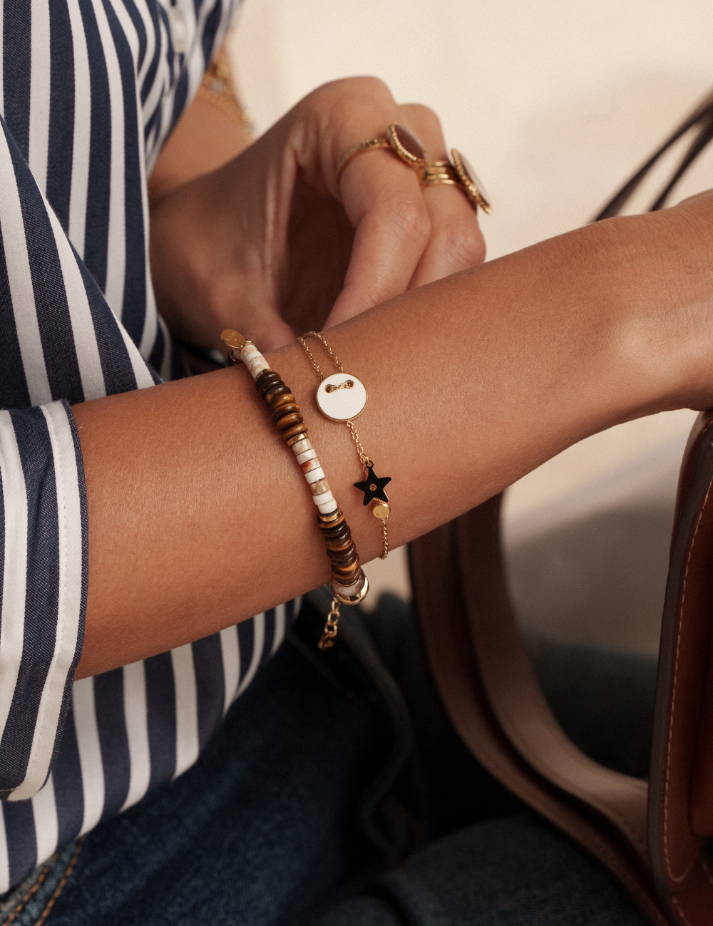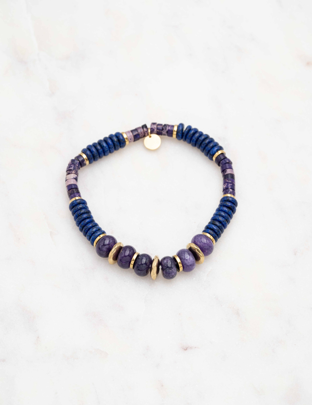 Bracelet élastique composé d'un joli enfilage de perles en acier et pierres naturelles mélangées.
