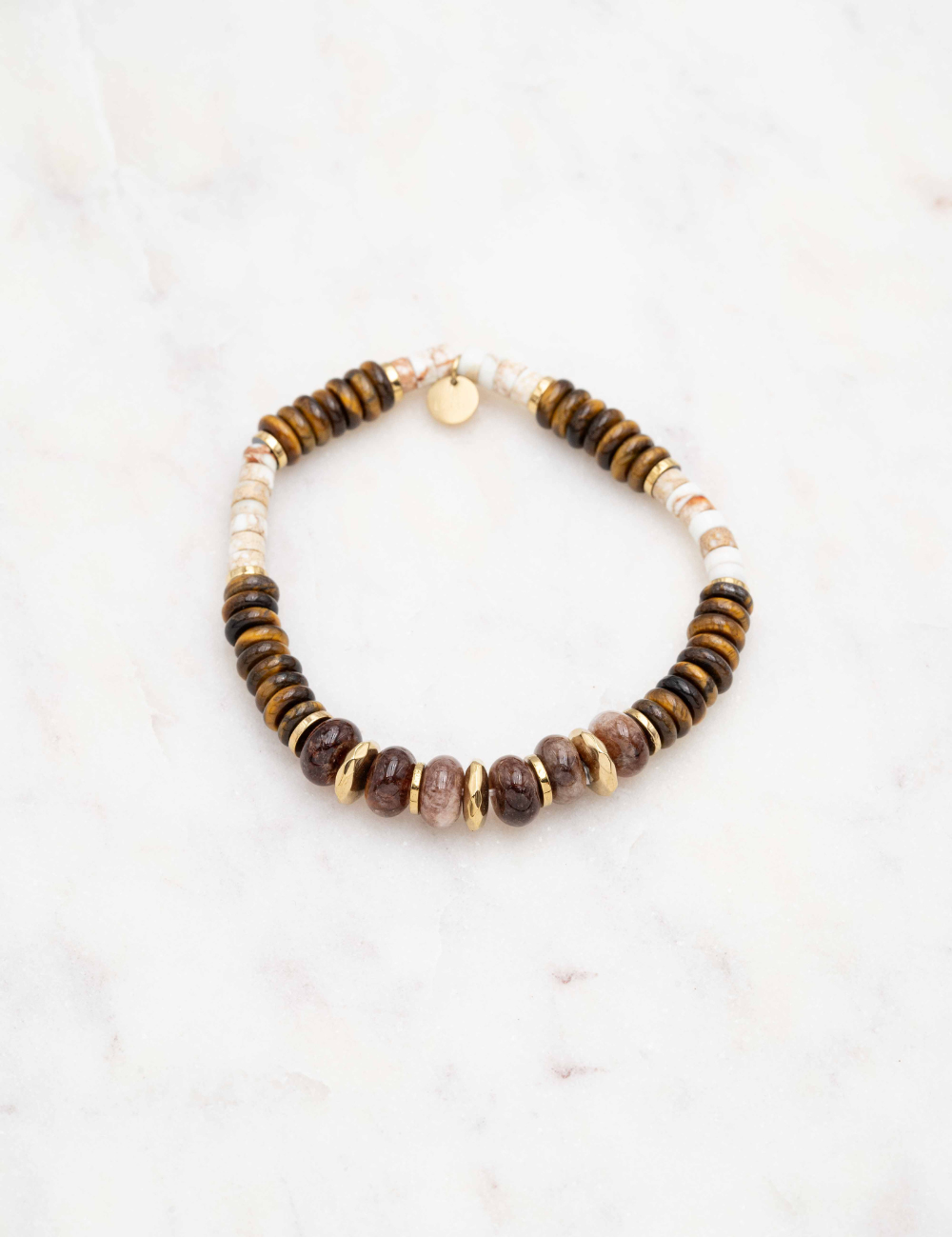 - Les pierres naturelles utilisées : Howlite, agate teintée, Oeil de tigre, Labradorite, Jaspe impérial.
