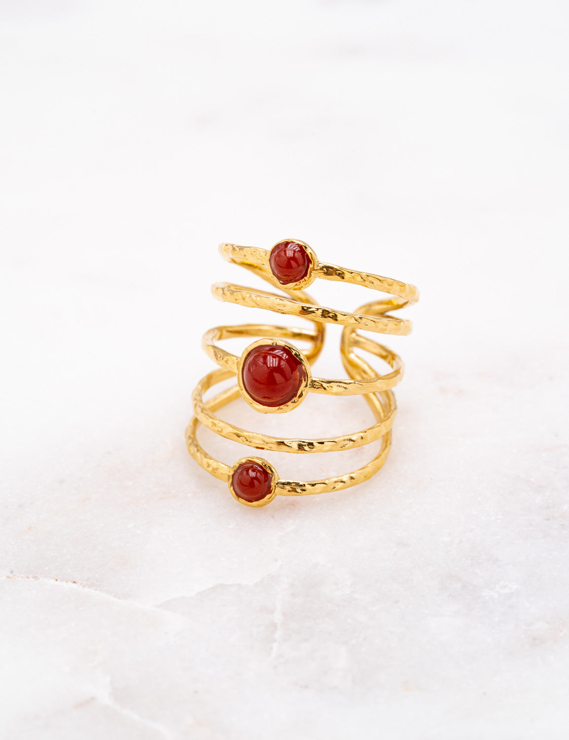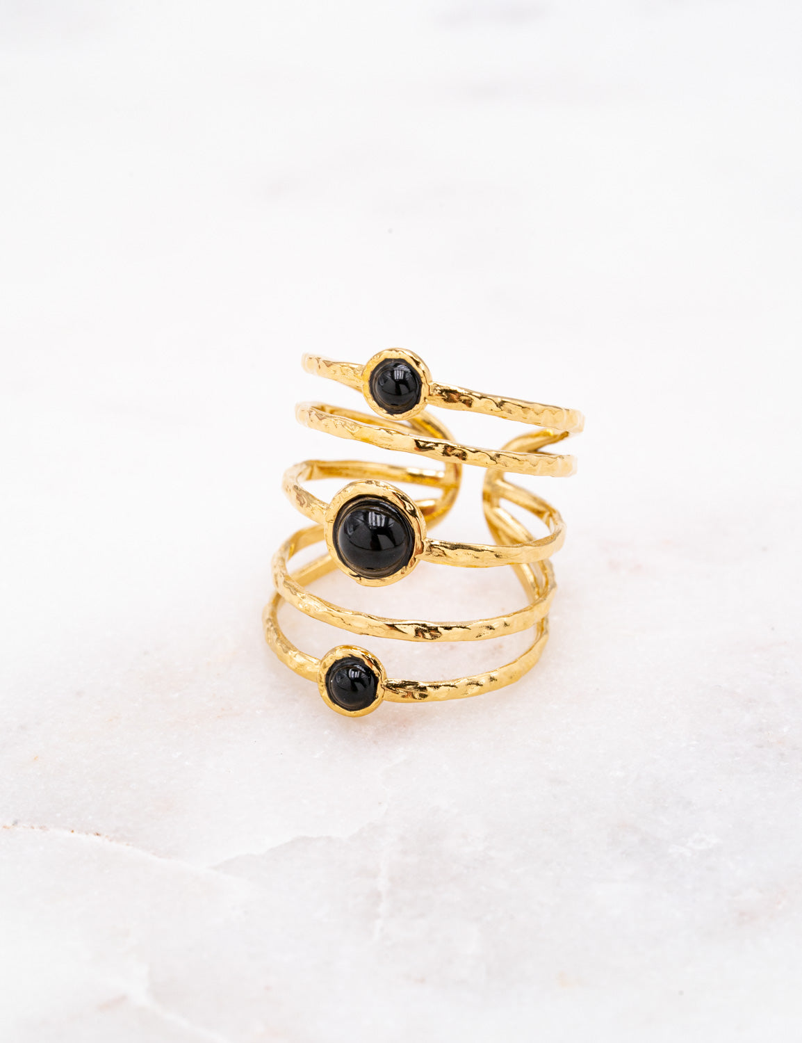 Bague ajustable multirangs graphiques texturés ornés de pierres naturelles.
