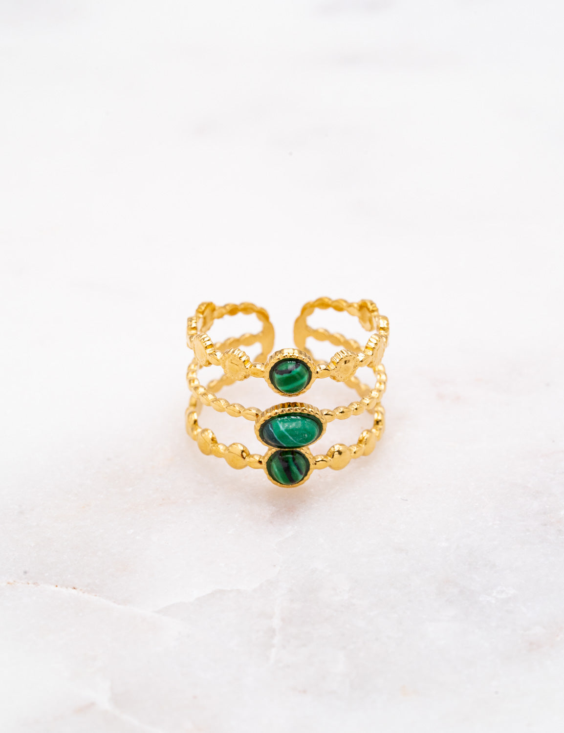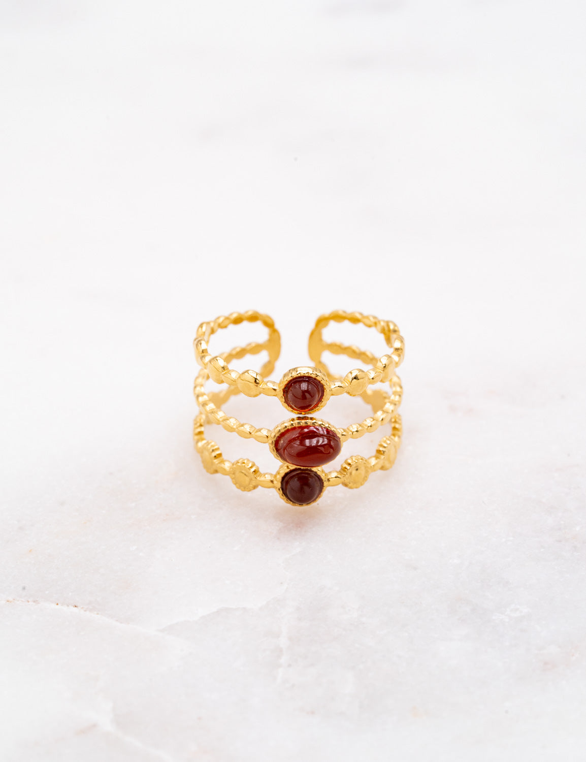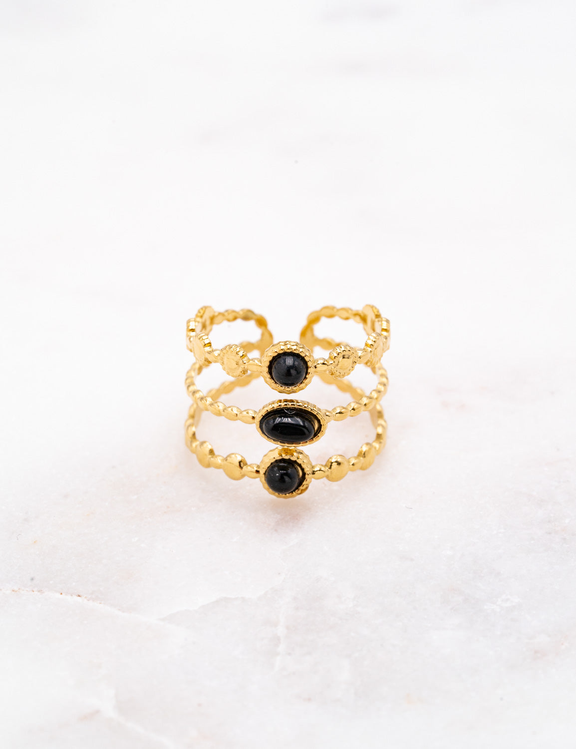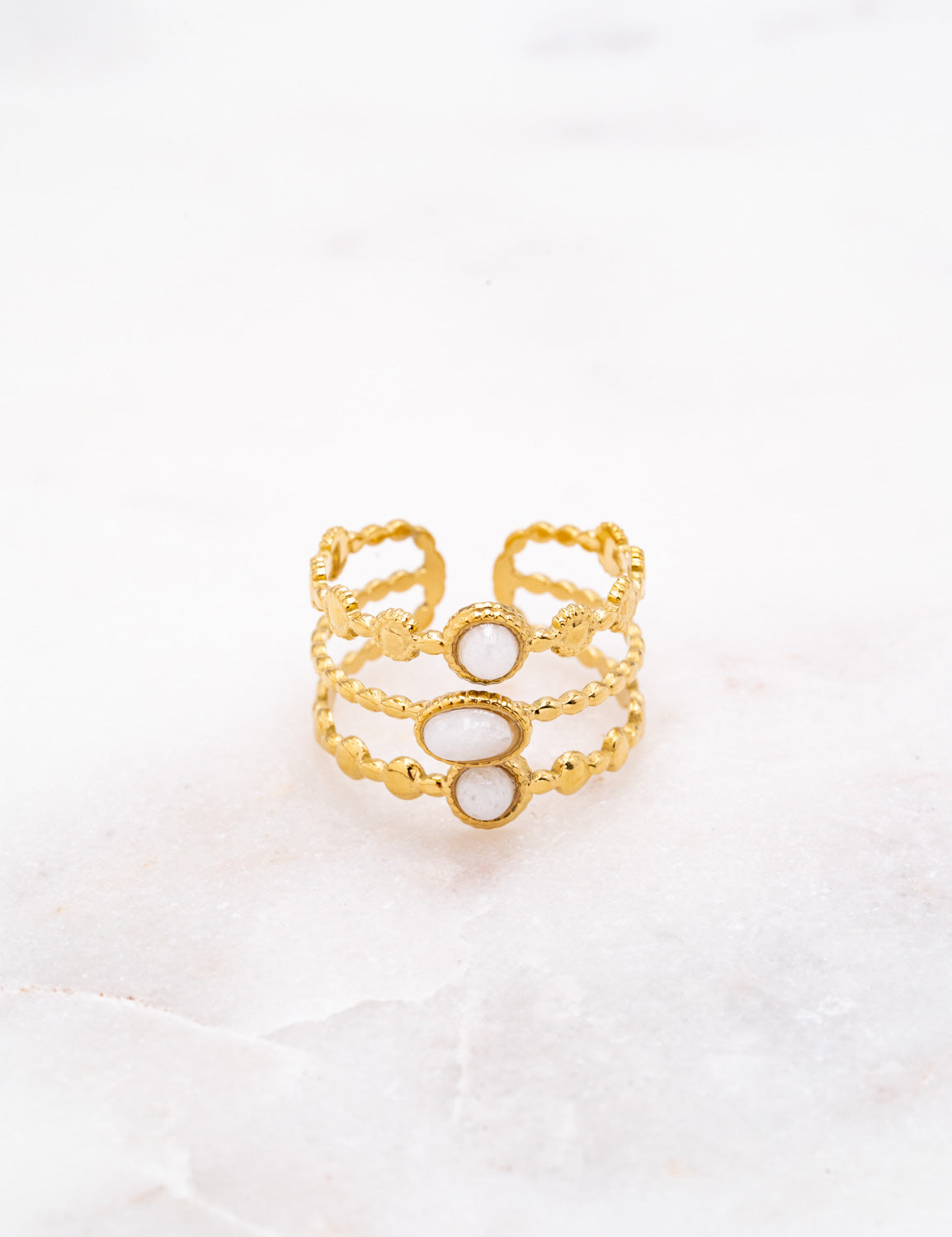 Bague ajustable multirangs graphiques texturés, effet cannelé et ornés de pierres naturelles.