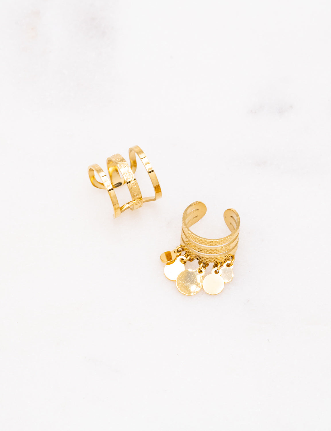 Lot de 2 Ear Cuffs atypiques (texturés et à pampilles rondes). Malléables.