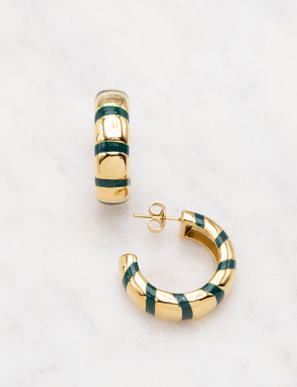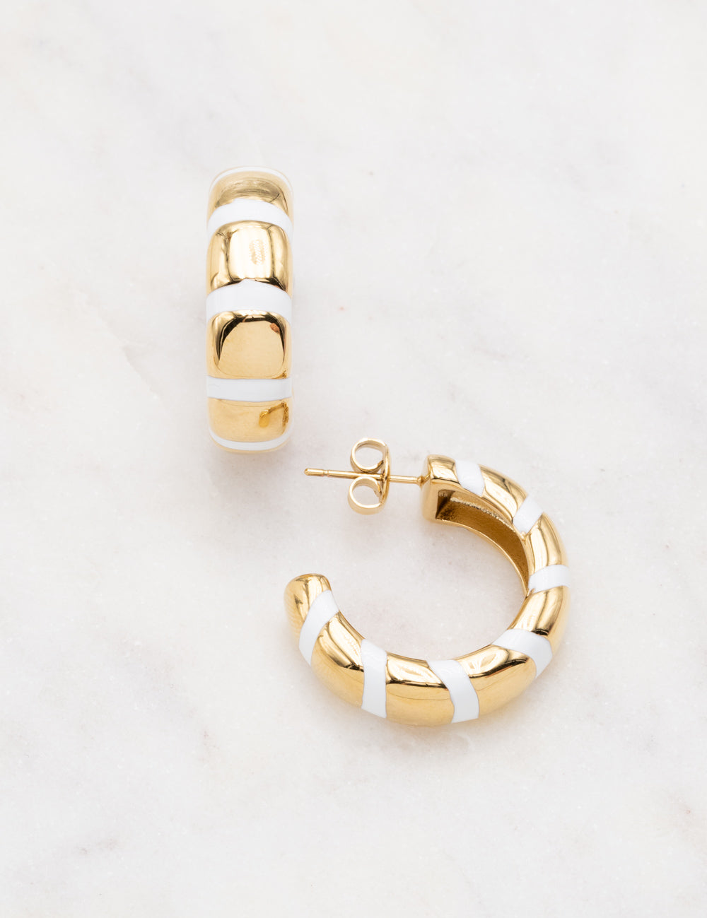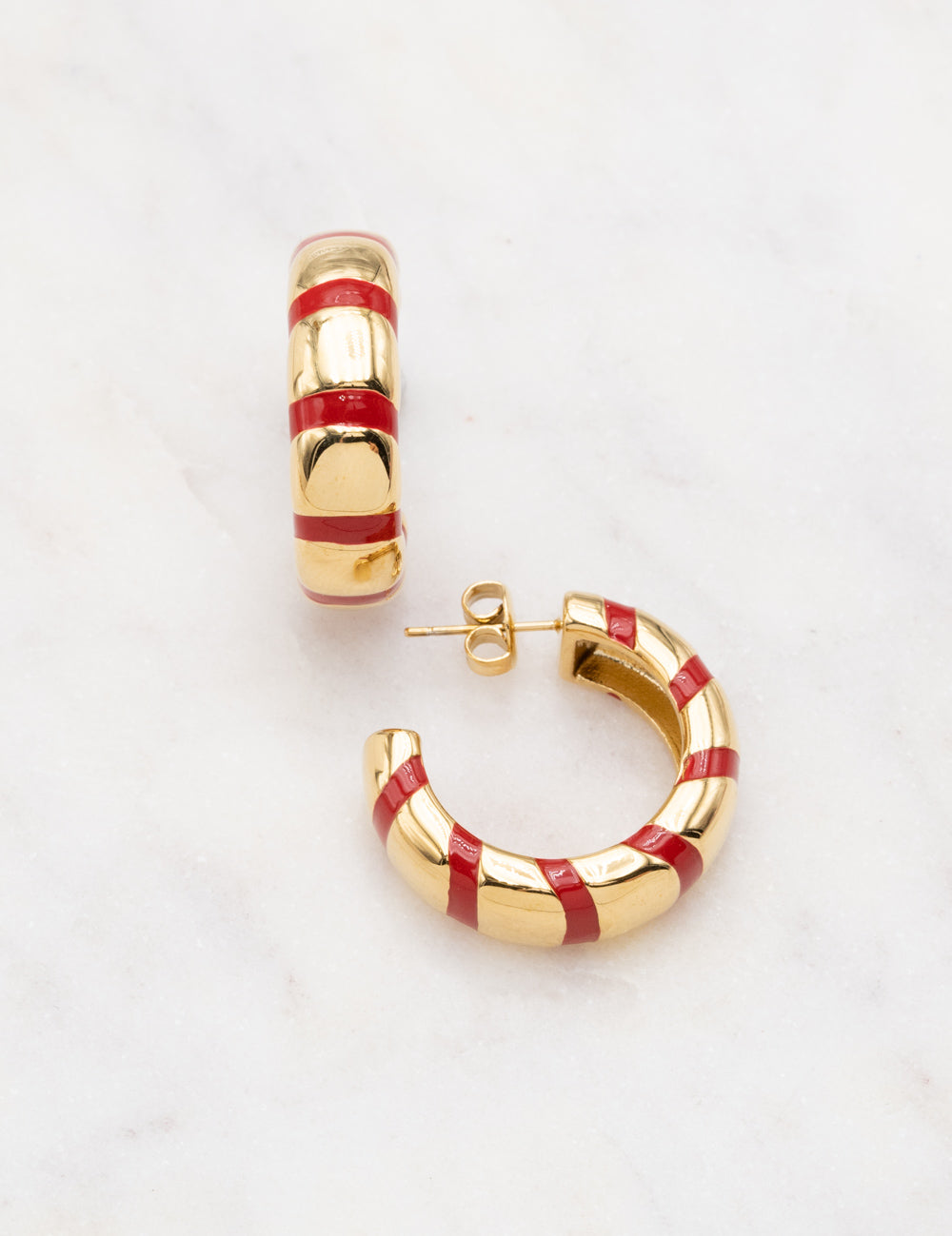 Boucles d'oreilles type créoles à puce émaillées épaisses et lisses avec un effet miroir.