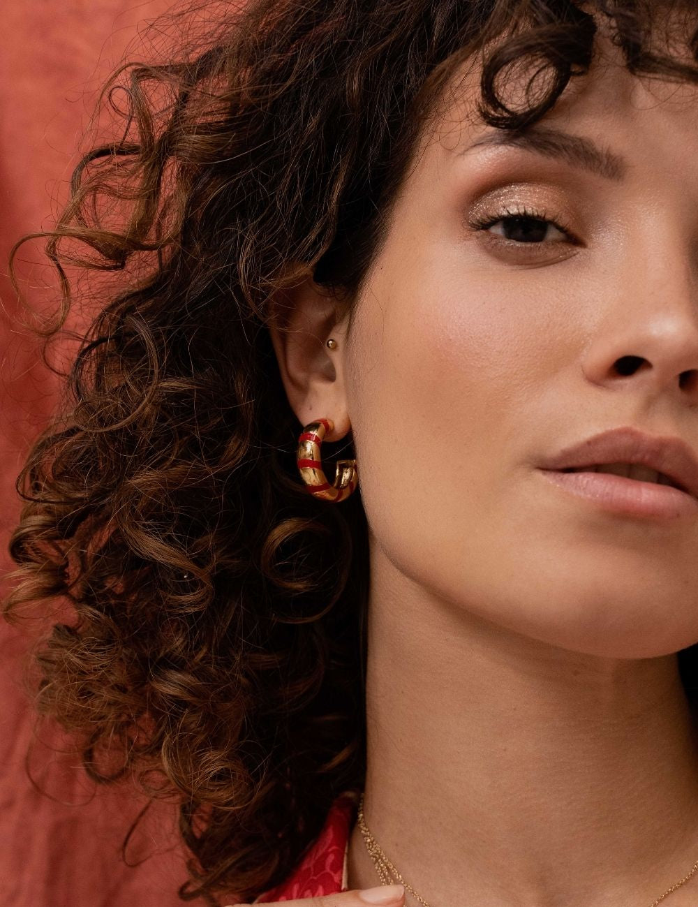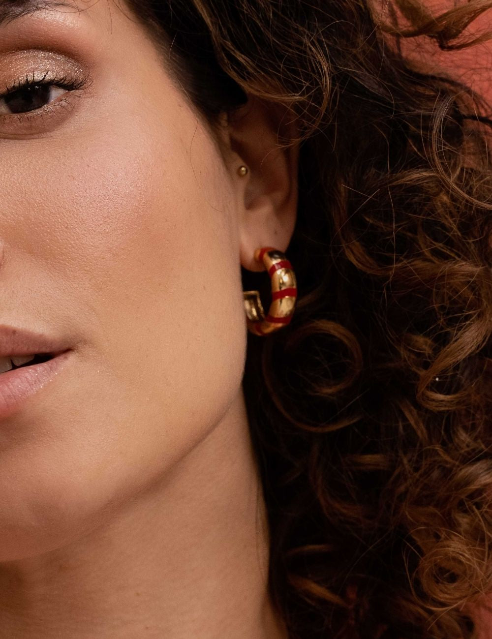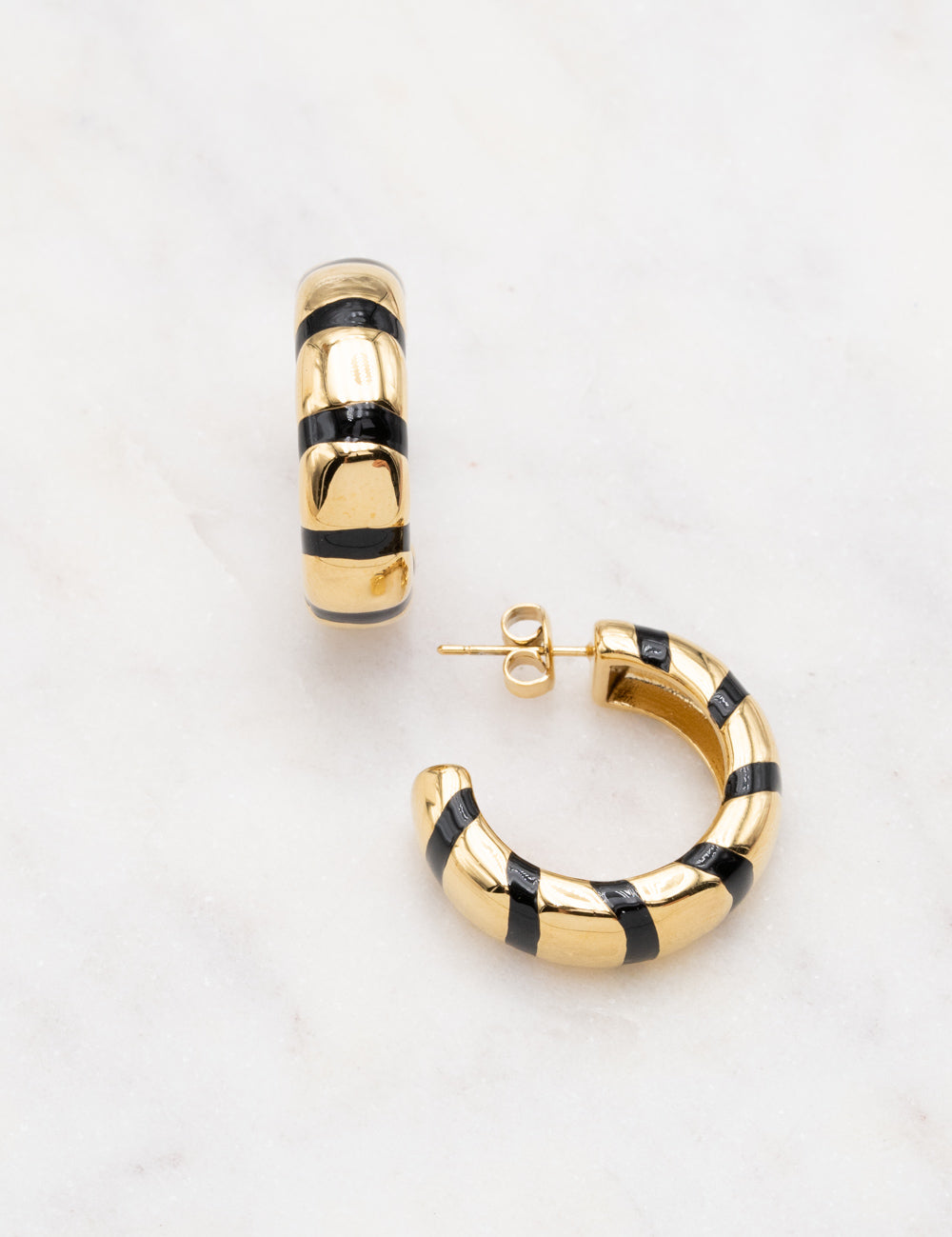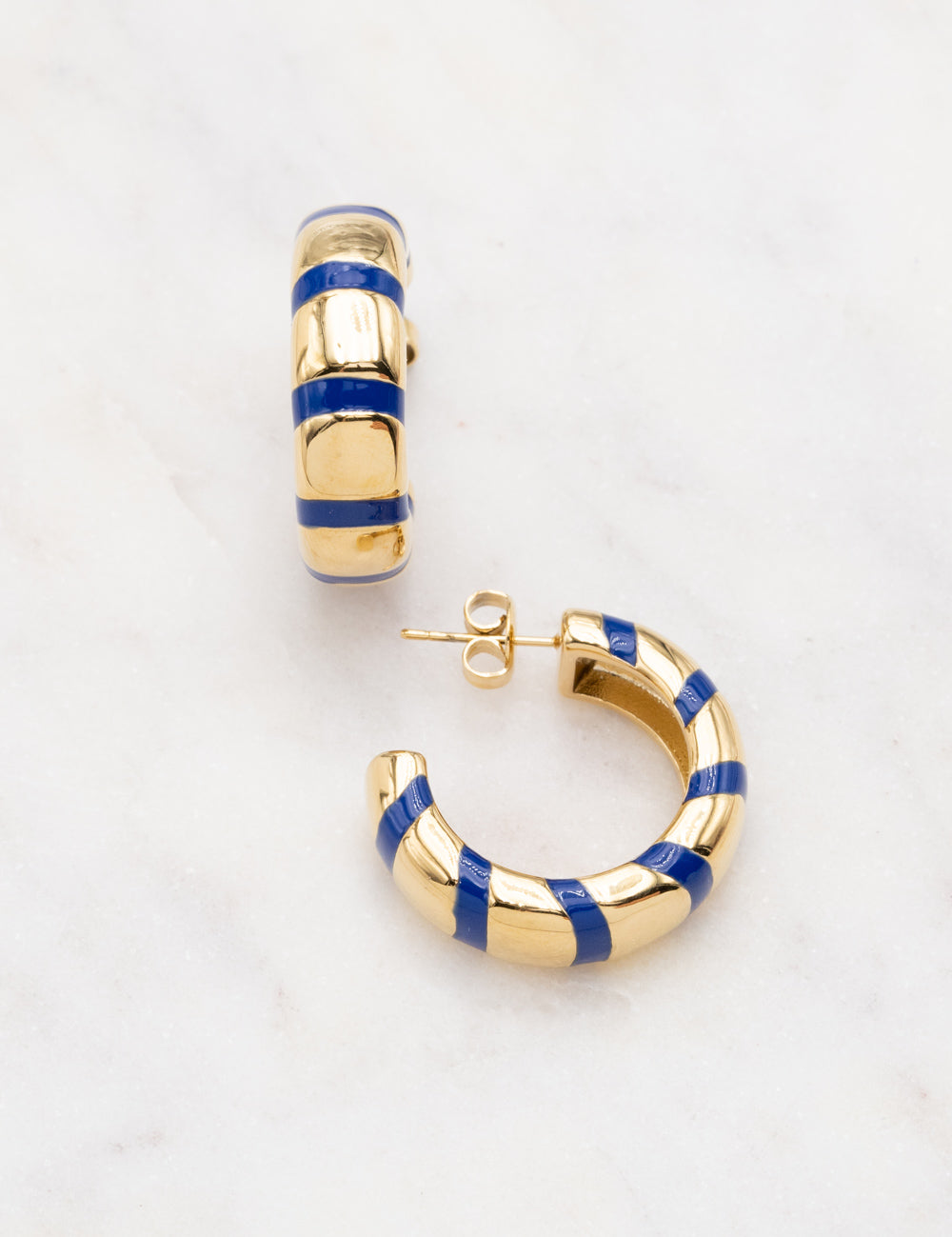 Boucles d'oreilles type créoles à puce émaillées épaisses et lisses avec un effet miroir.