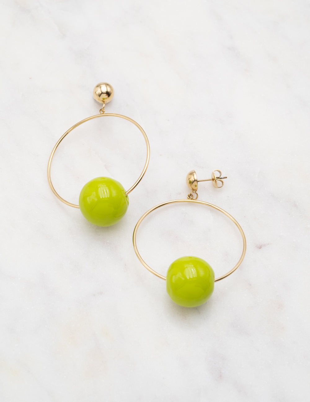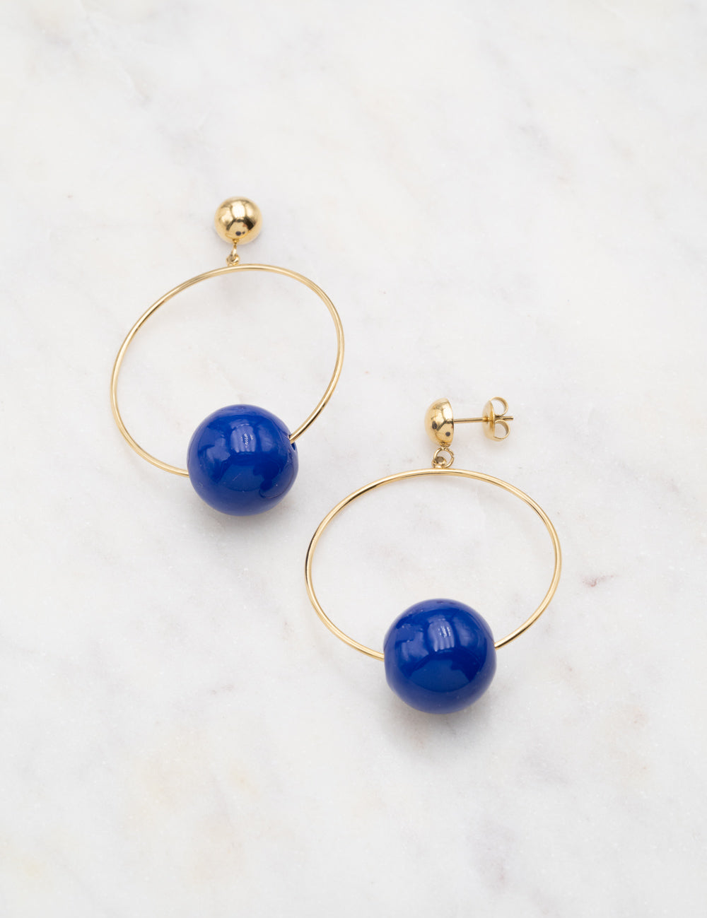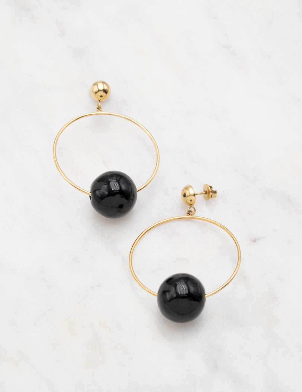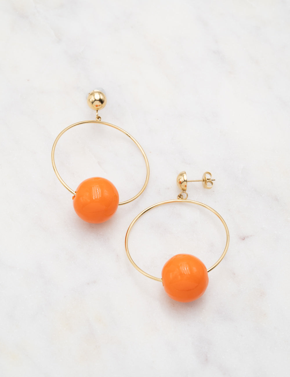 Boucles d'oreilles à puce composées d'un anneau et d'une boule en acétate.
