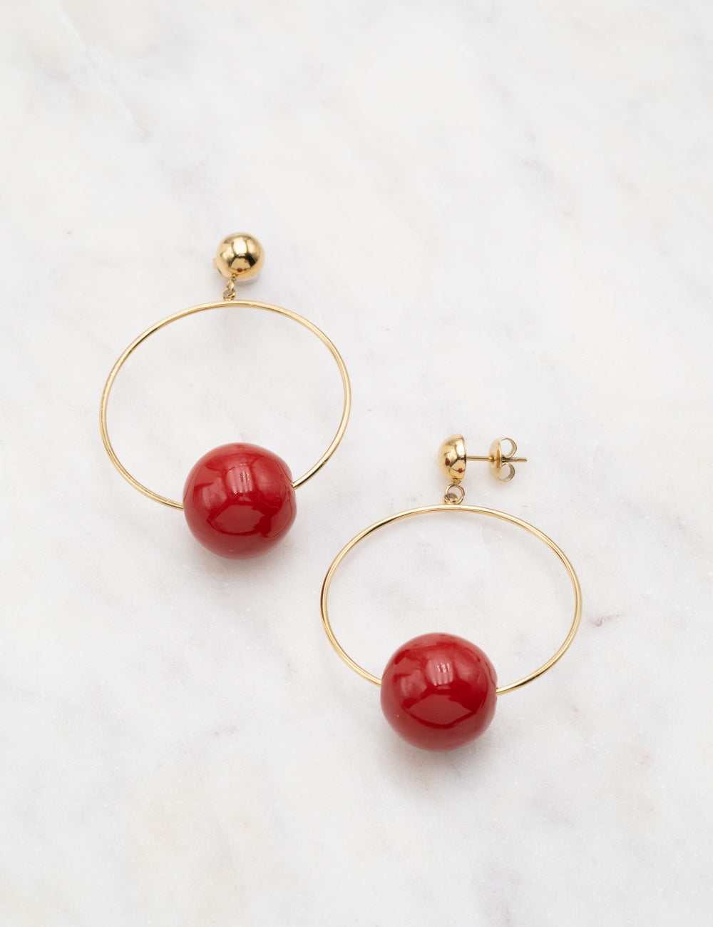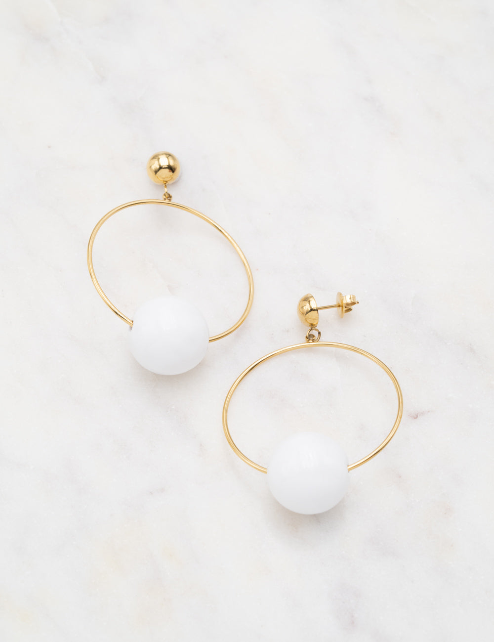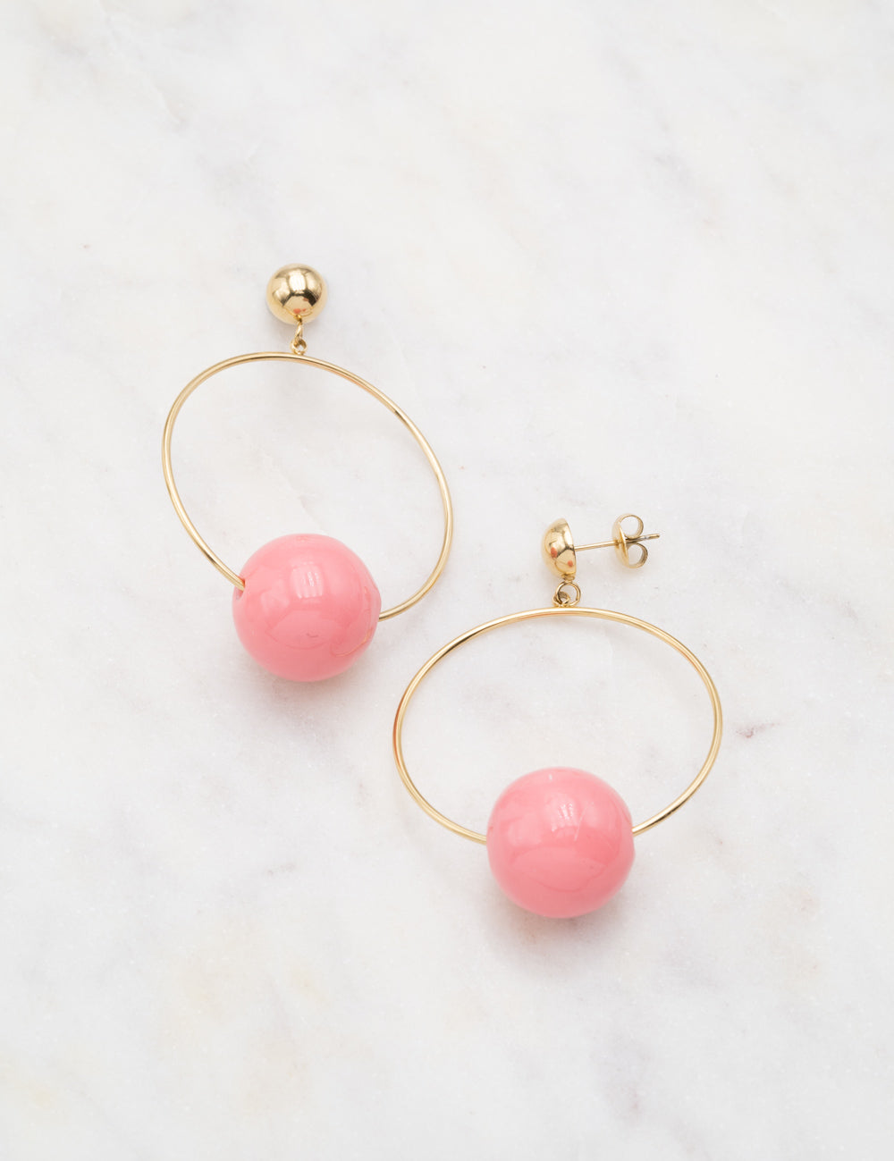 Boucles d'oreilles à puce composées d'un anneau et d'une boule en acétate.