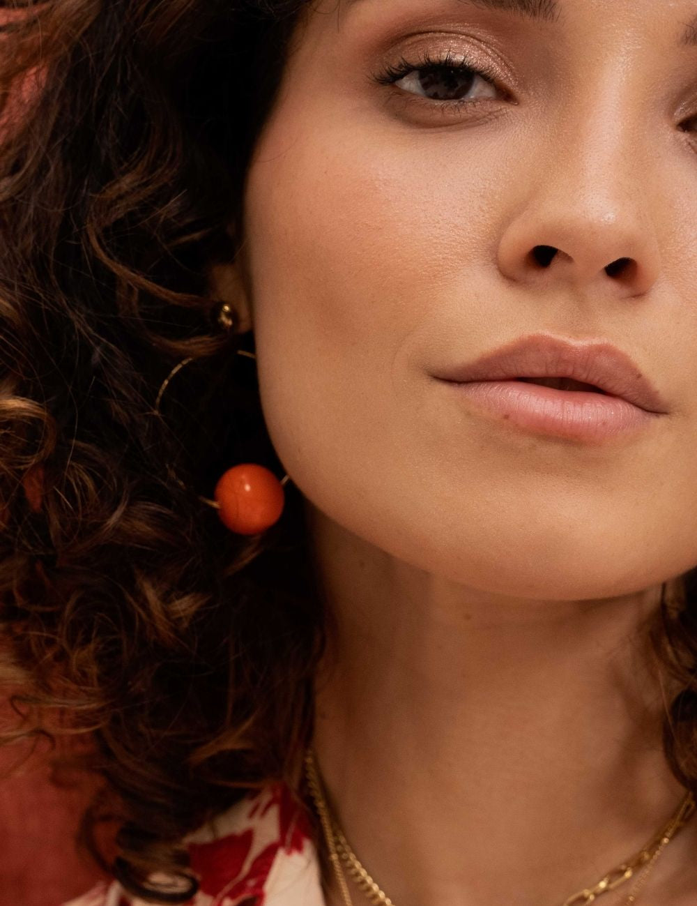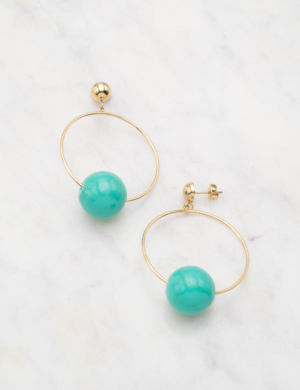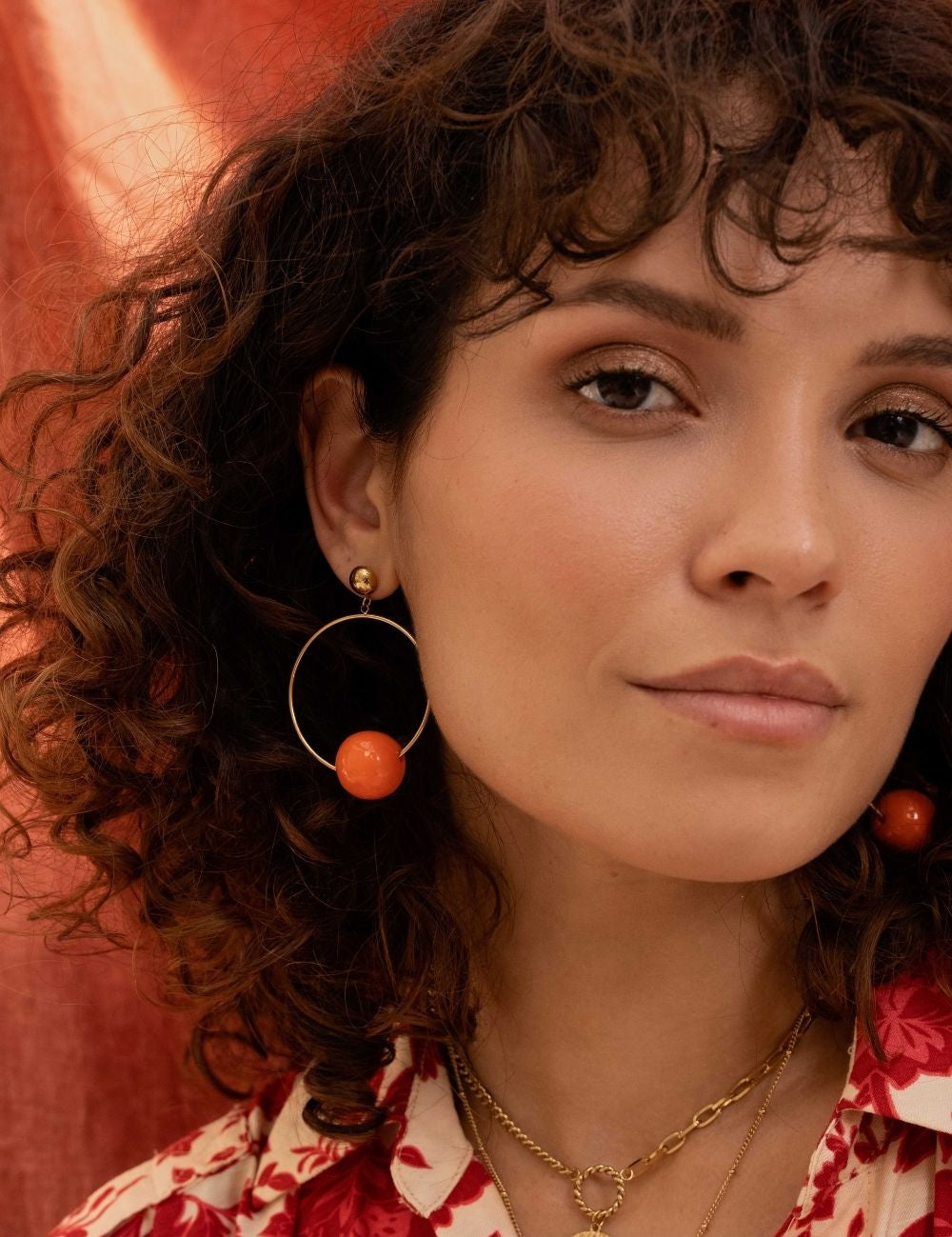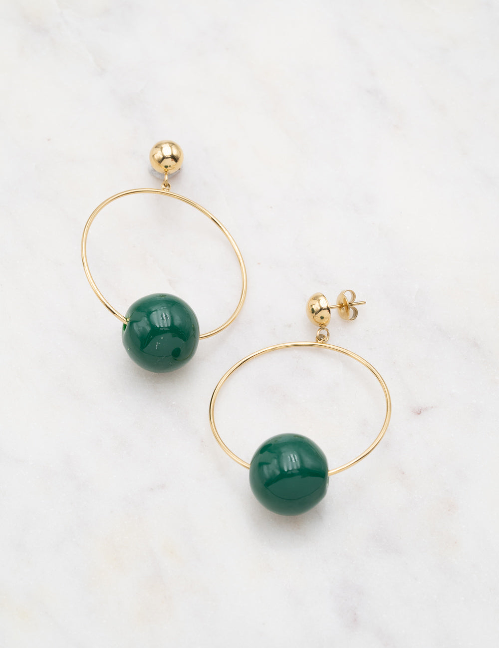 Boucles d'oreilles à puce composées d'un anneau et d'une boule en acétate.