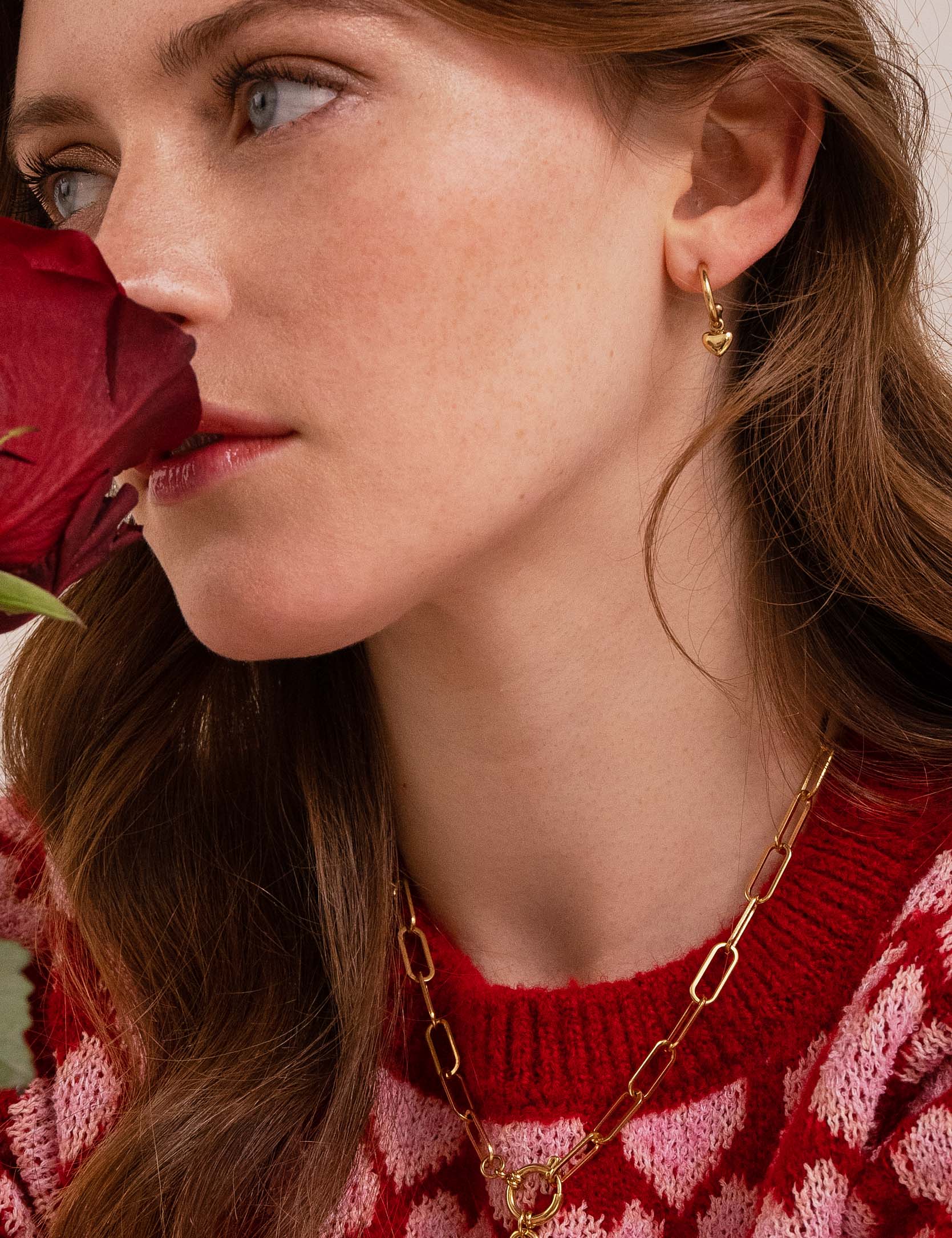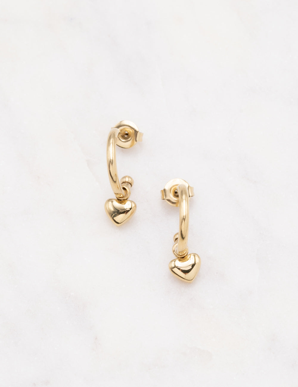 Boucles d'oreilles graphiques type créoles à puce composées d'une pièce au motif de coeur. Fermoir papillon.