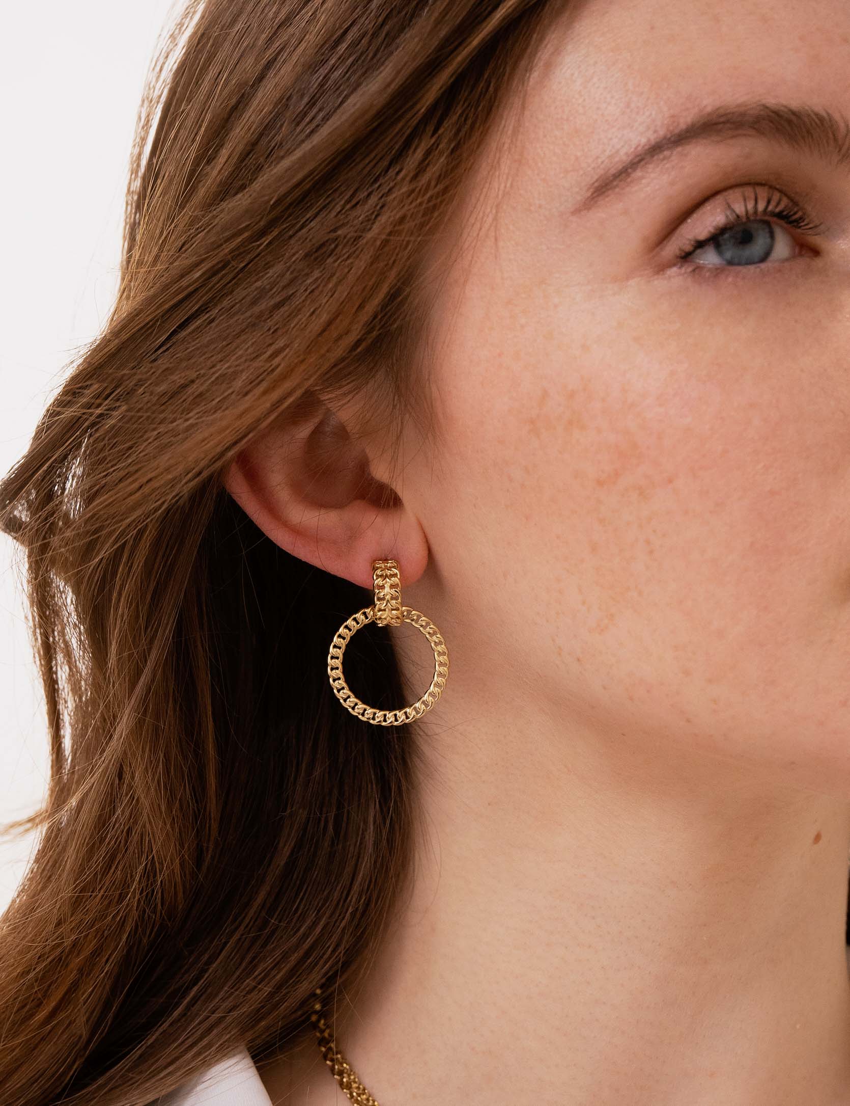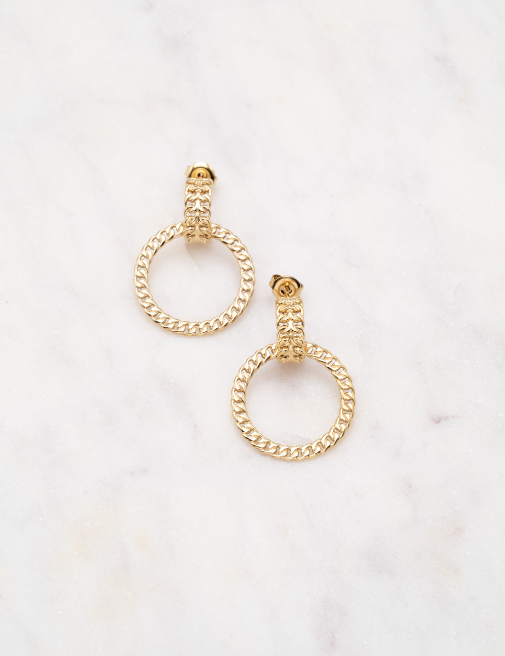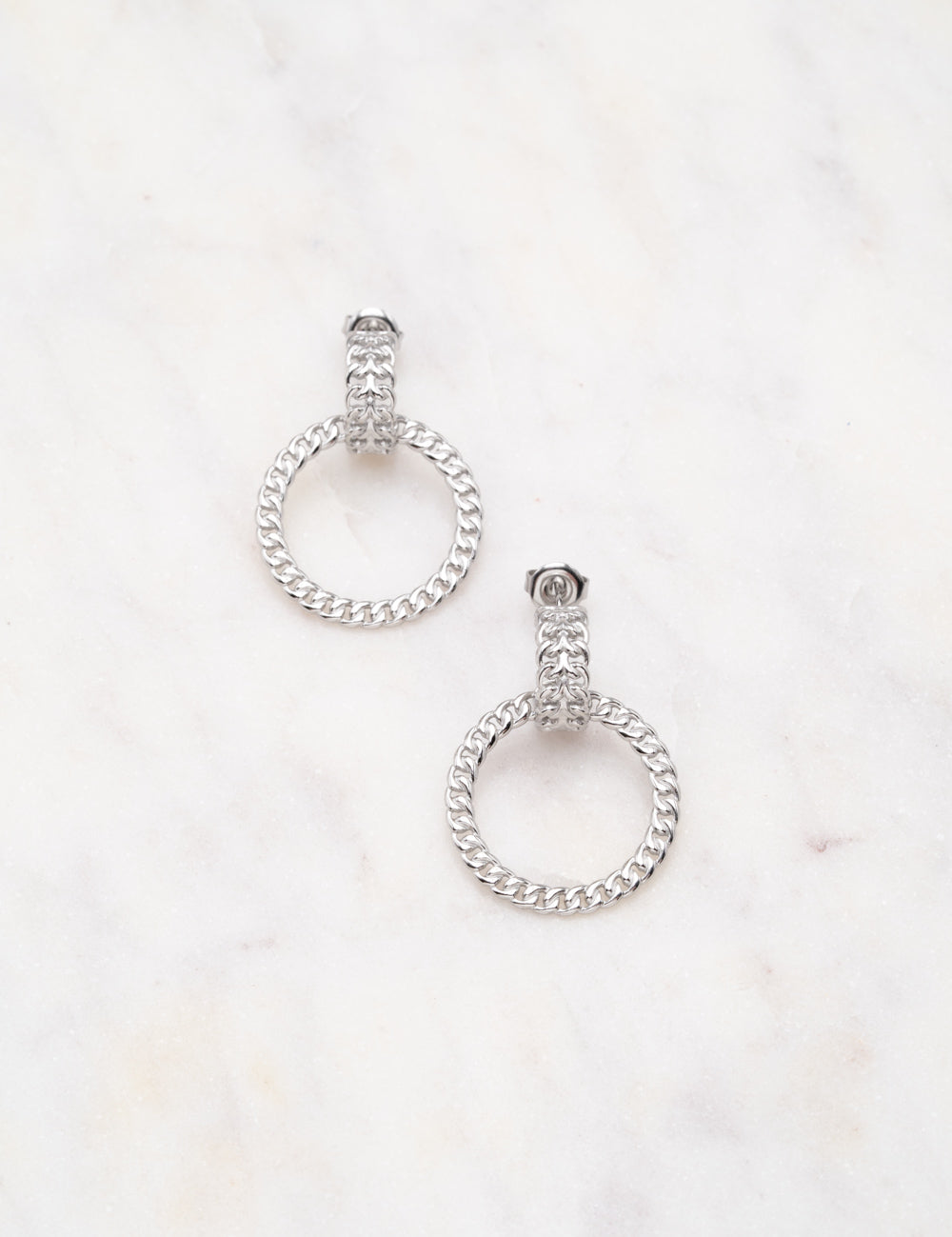 Boucles d'oreilles type créoles à puce composées d'une demi créole et d'un anneau en maille plate. Fermoir papillon.