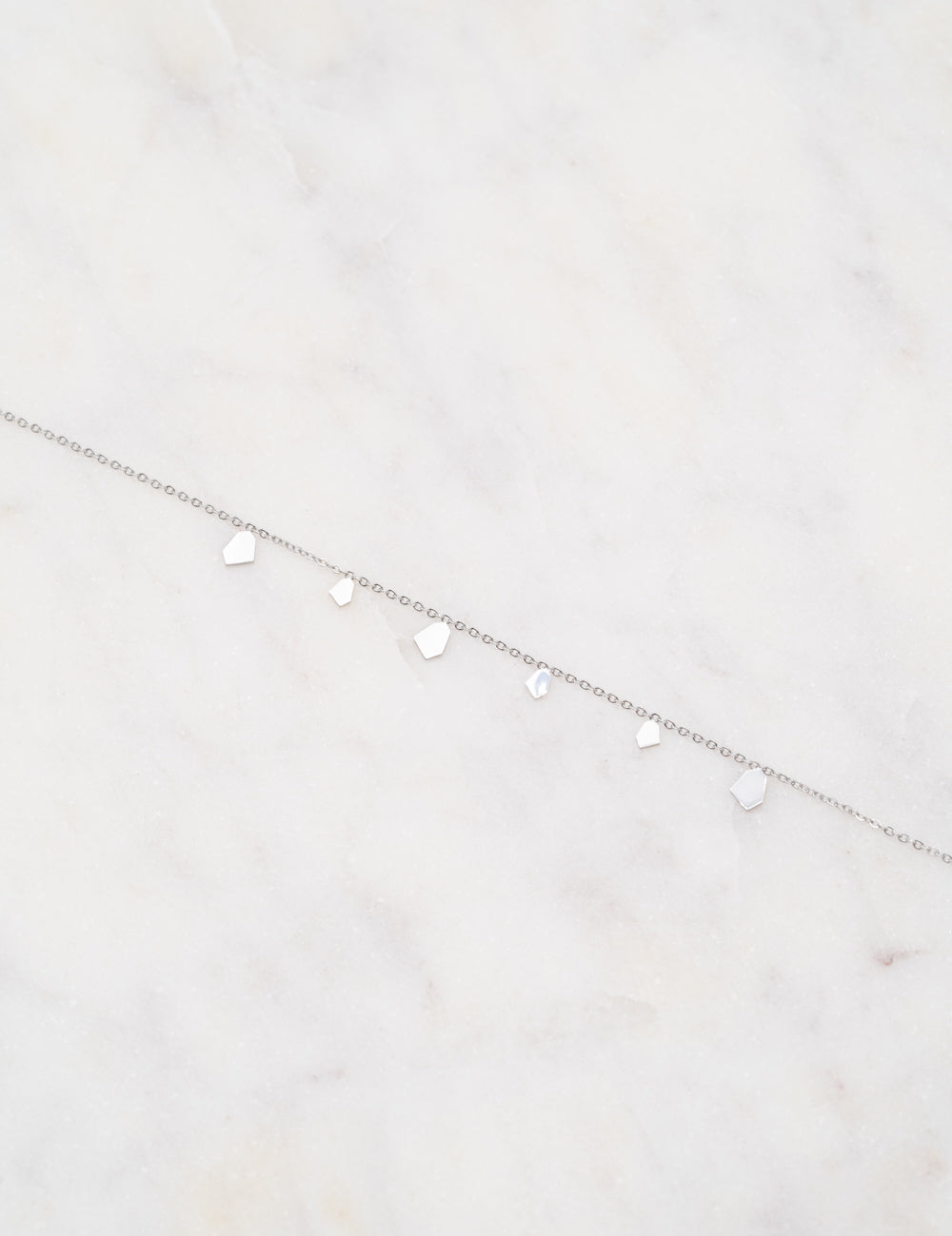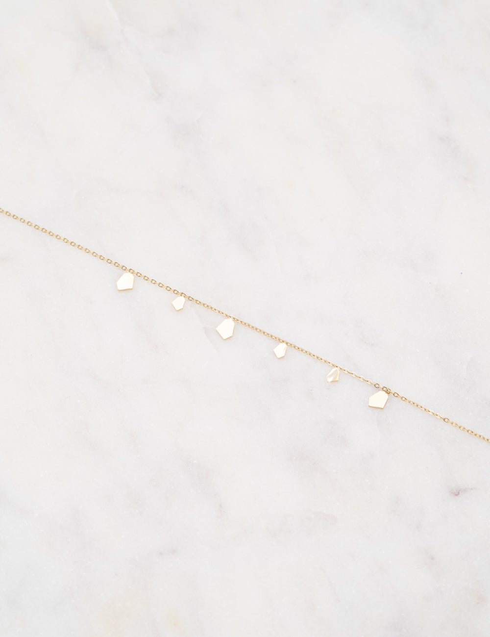 Bracelet réglable sur chaîne orné de pampilles graphiques. Fermoir mousqueton et chaînette de réglage.