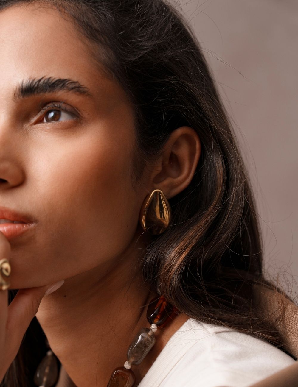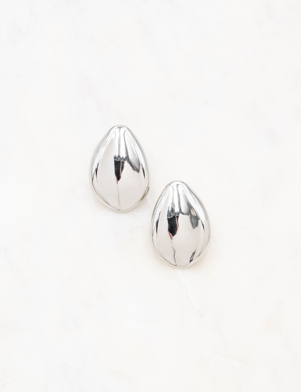 Boucles d'oreilles à puce composées d'une pièce géométrique lisse avec effet miroir.