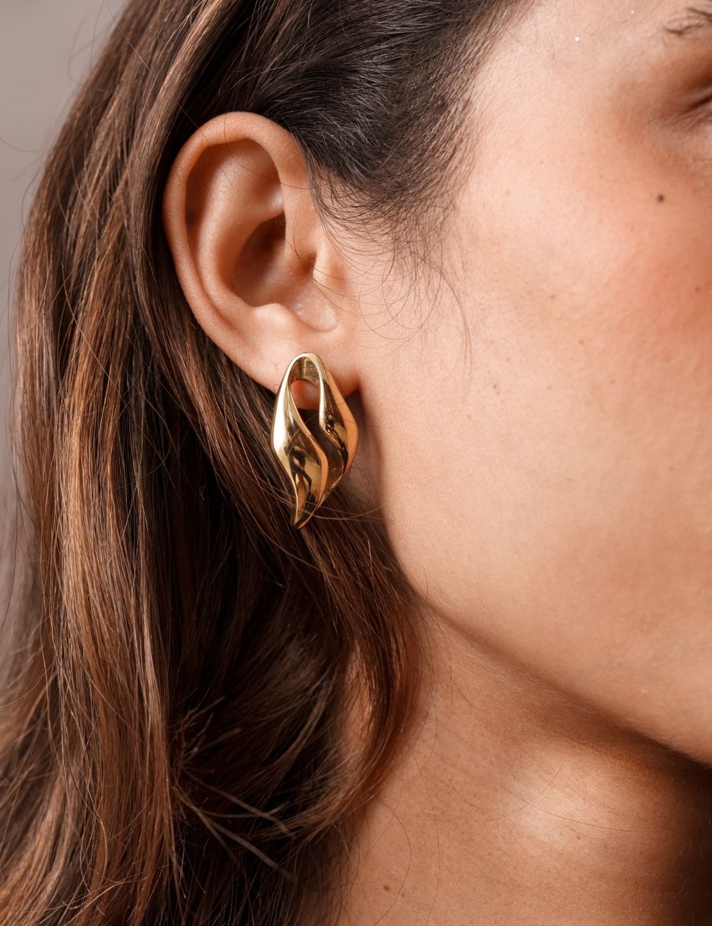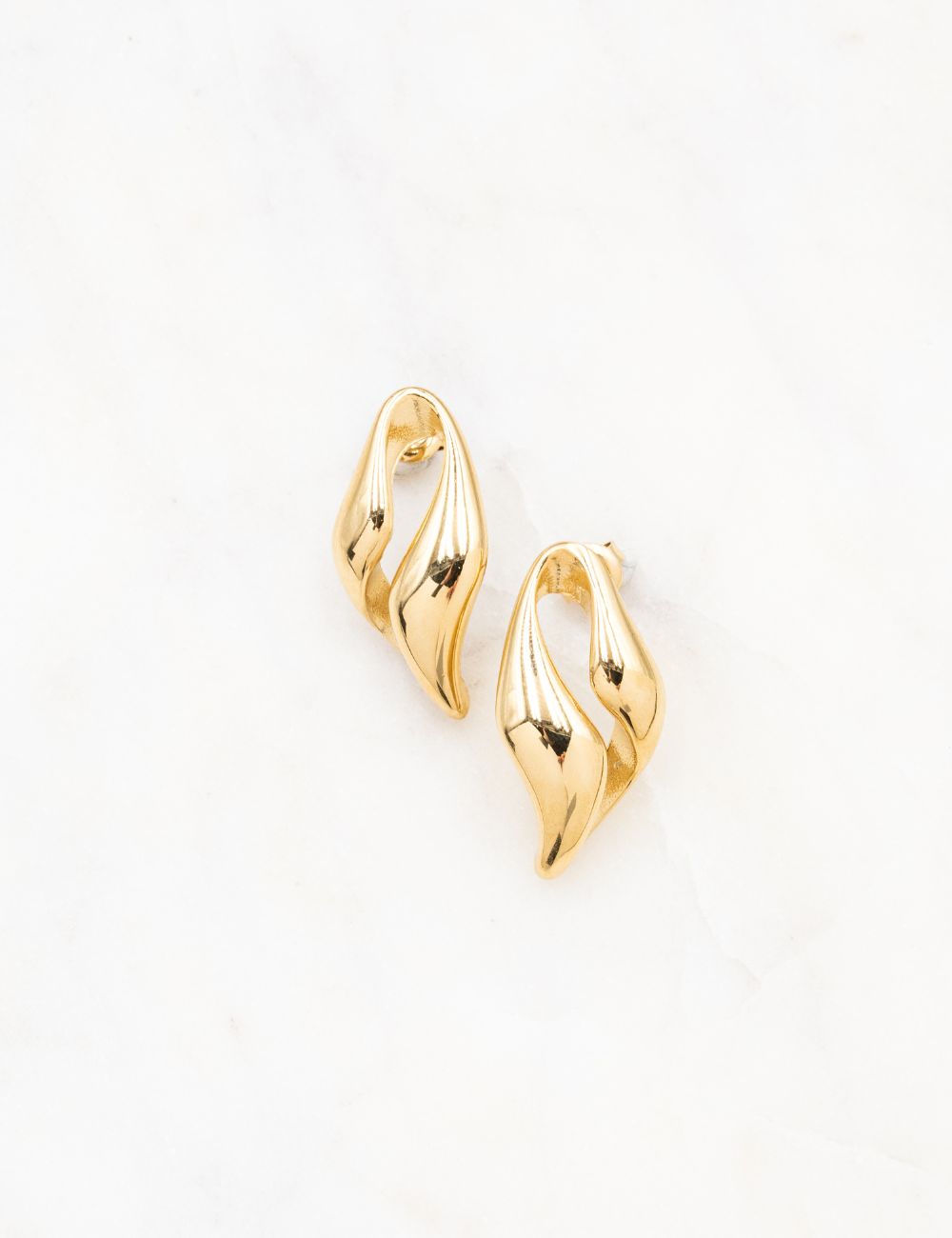 Boucles d'oreilles graphiques à puce ajourées avec un effet lisse.