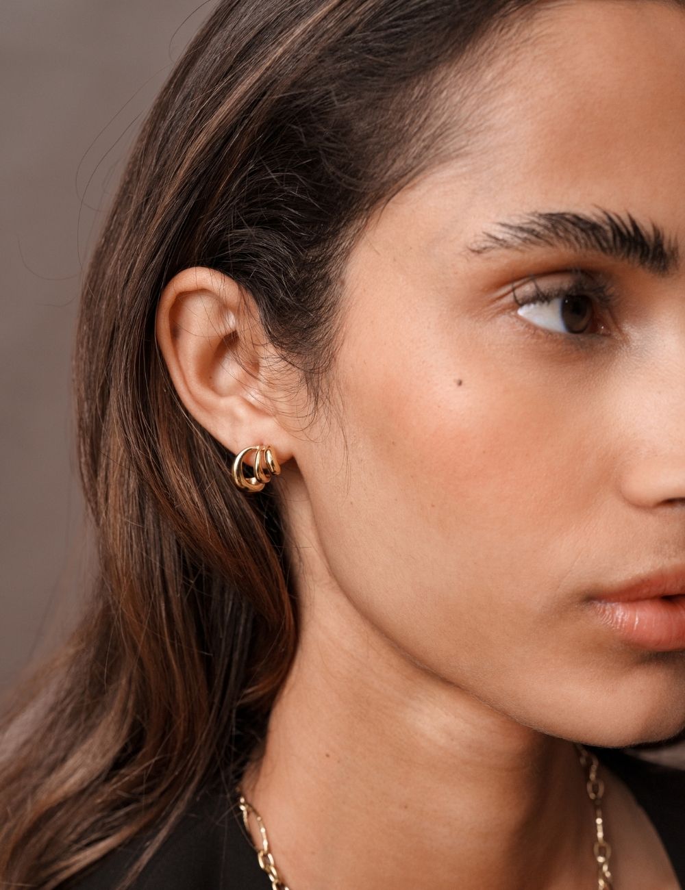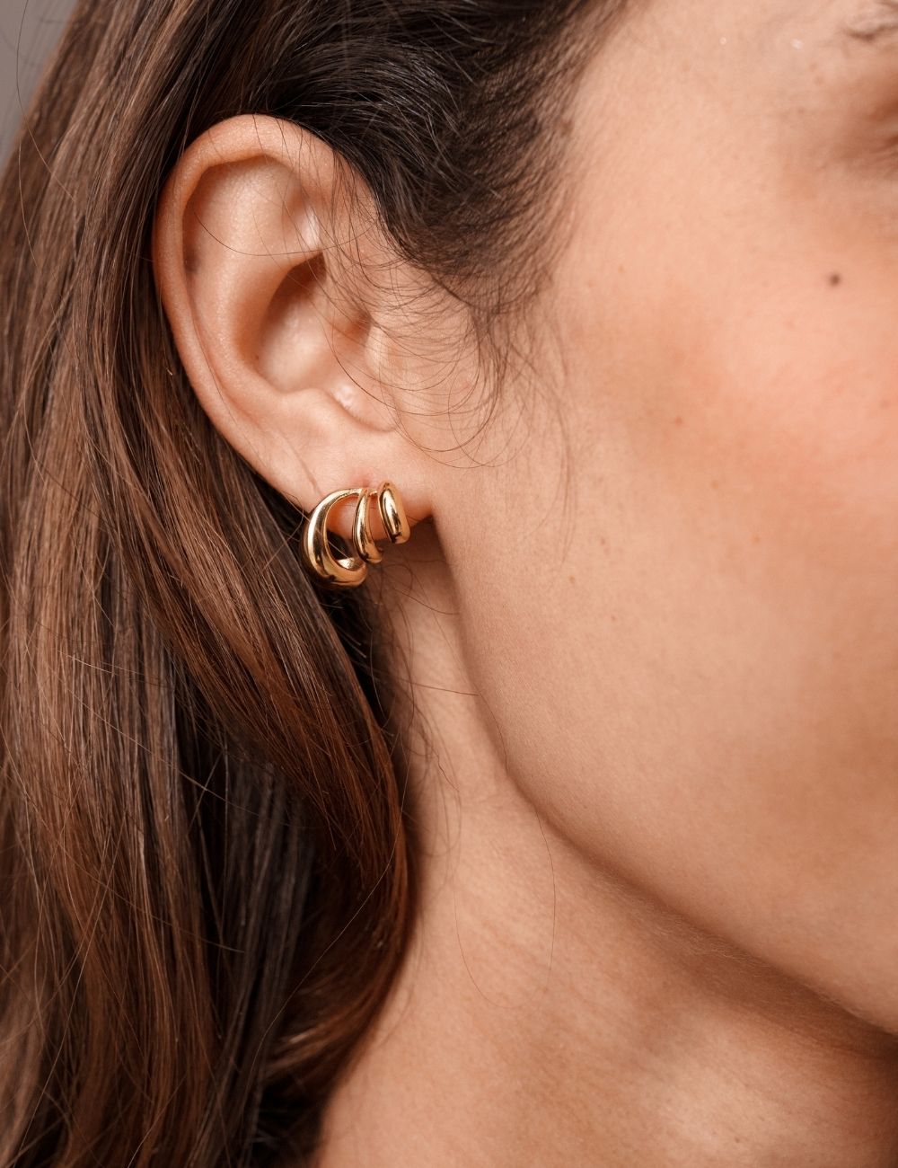 Boucles d'oreilles graphiques type créoles à puce trois rangs lisses avec effet miroir.