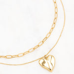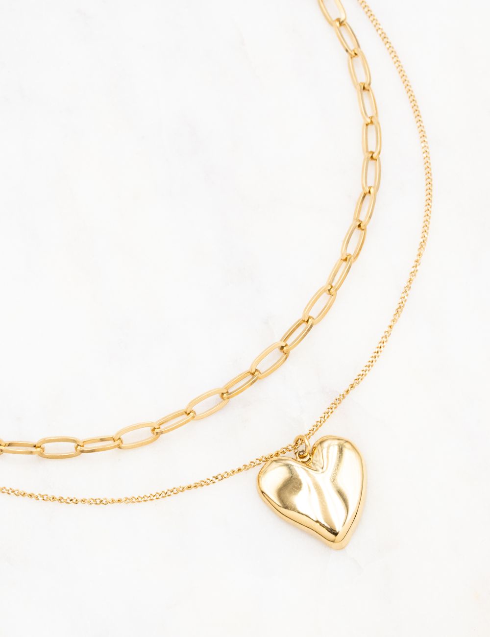 Collier réglable double rangs en maille sur chaîne composé d'une pampille cœur.