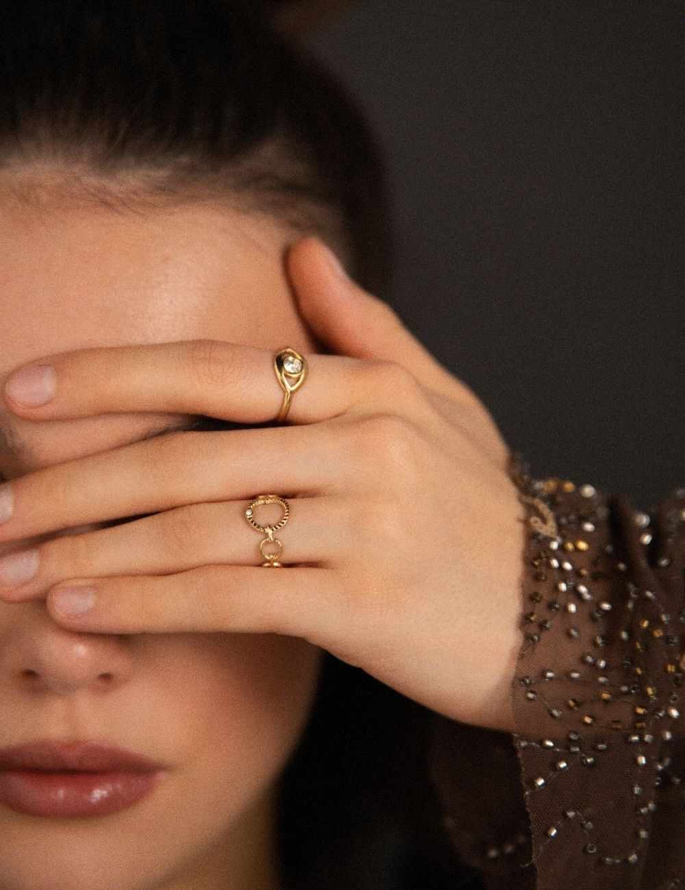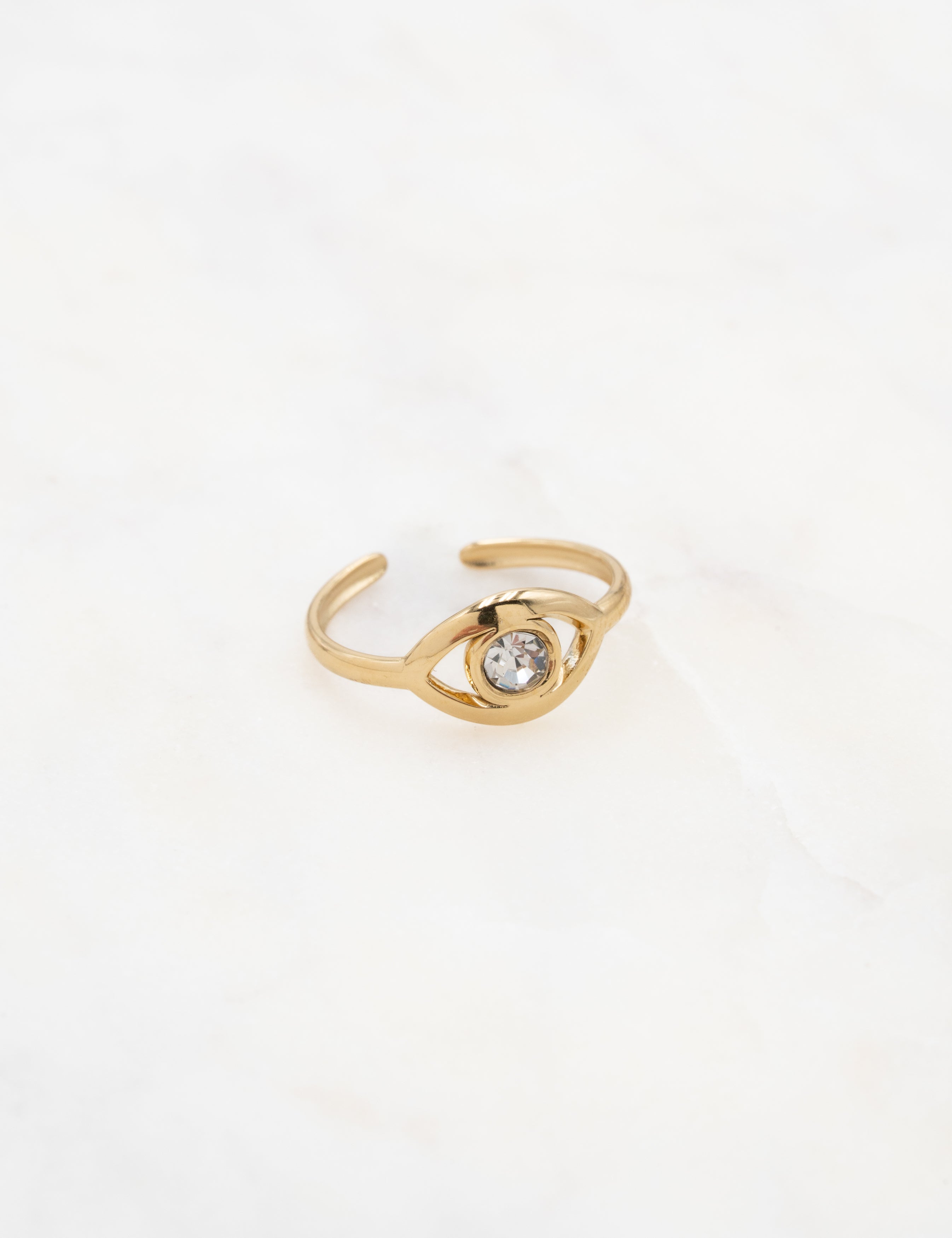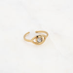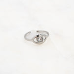 Bague graphique ajustable en forme œil orné d'un oxyde de zirconium.
