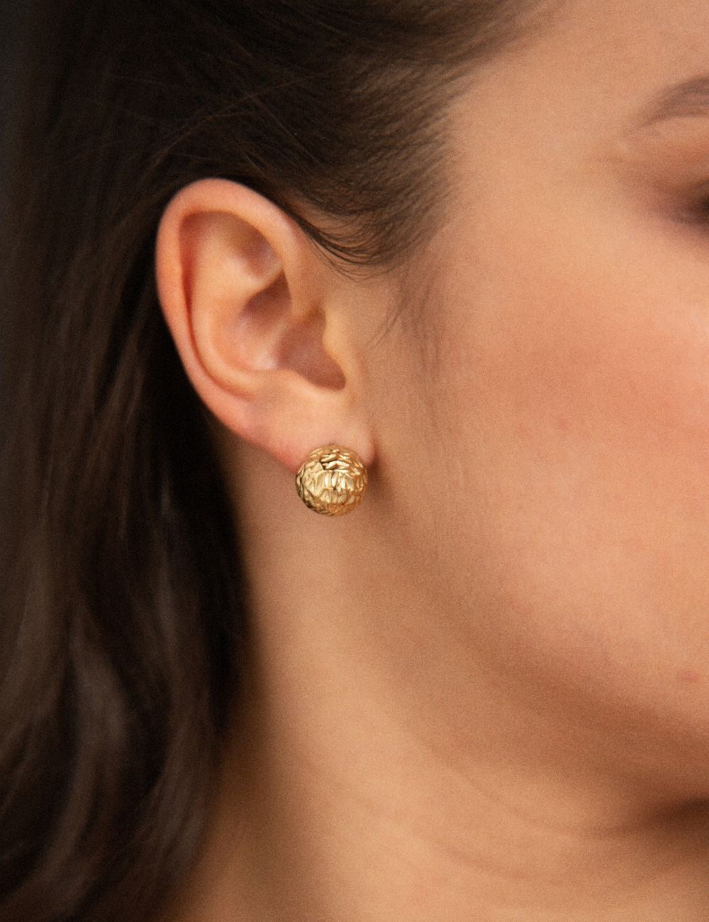 Boucles d'oreilles type créoles à puce texturées et avec un style bombé.