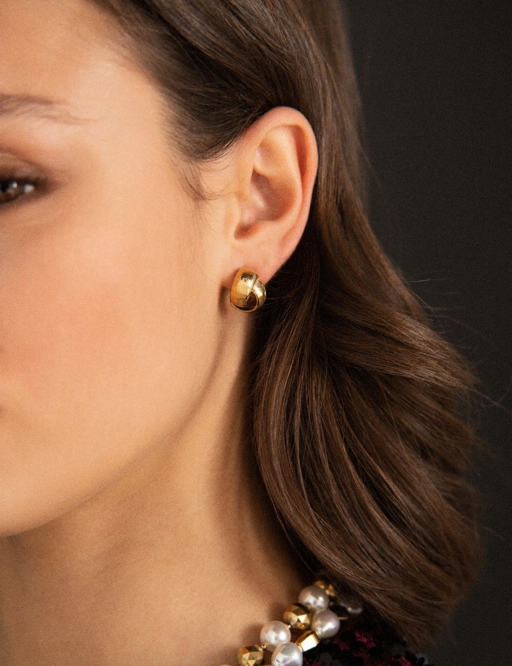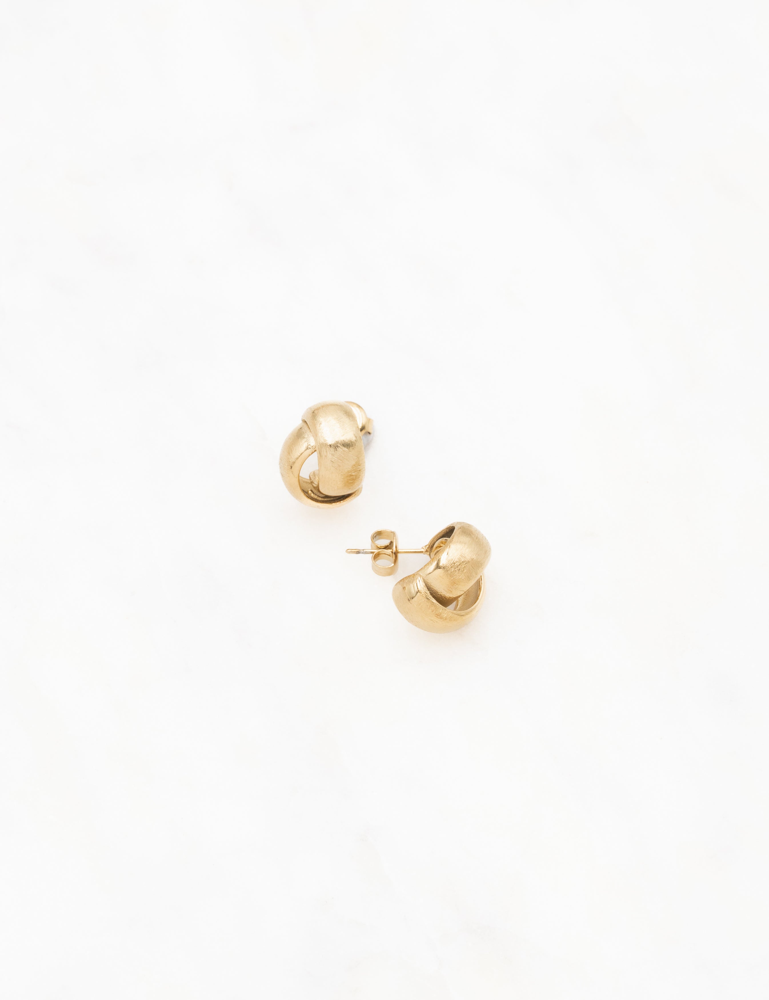 Boucles d'oreilles graphiques à puce composées d'une pièce formant un petit noeud, texturée effet patiné.