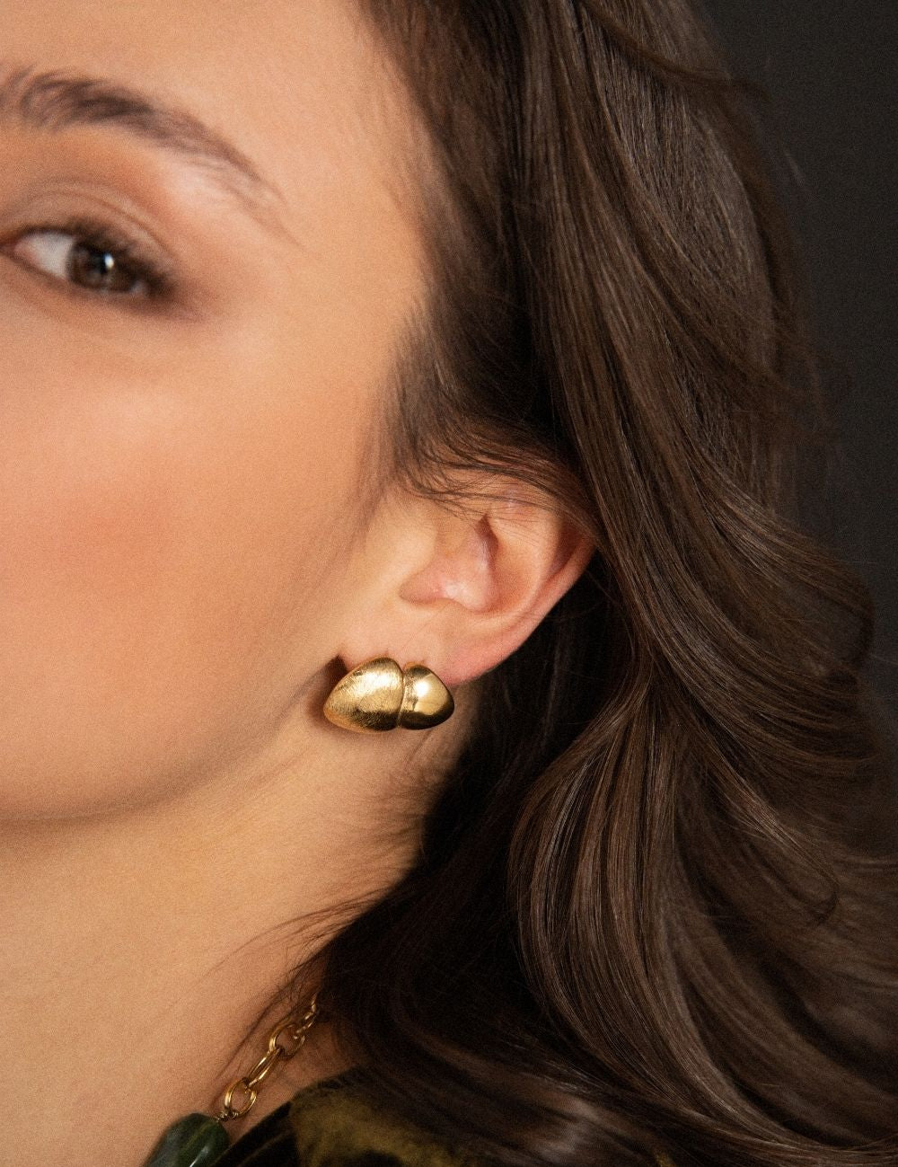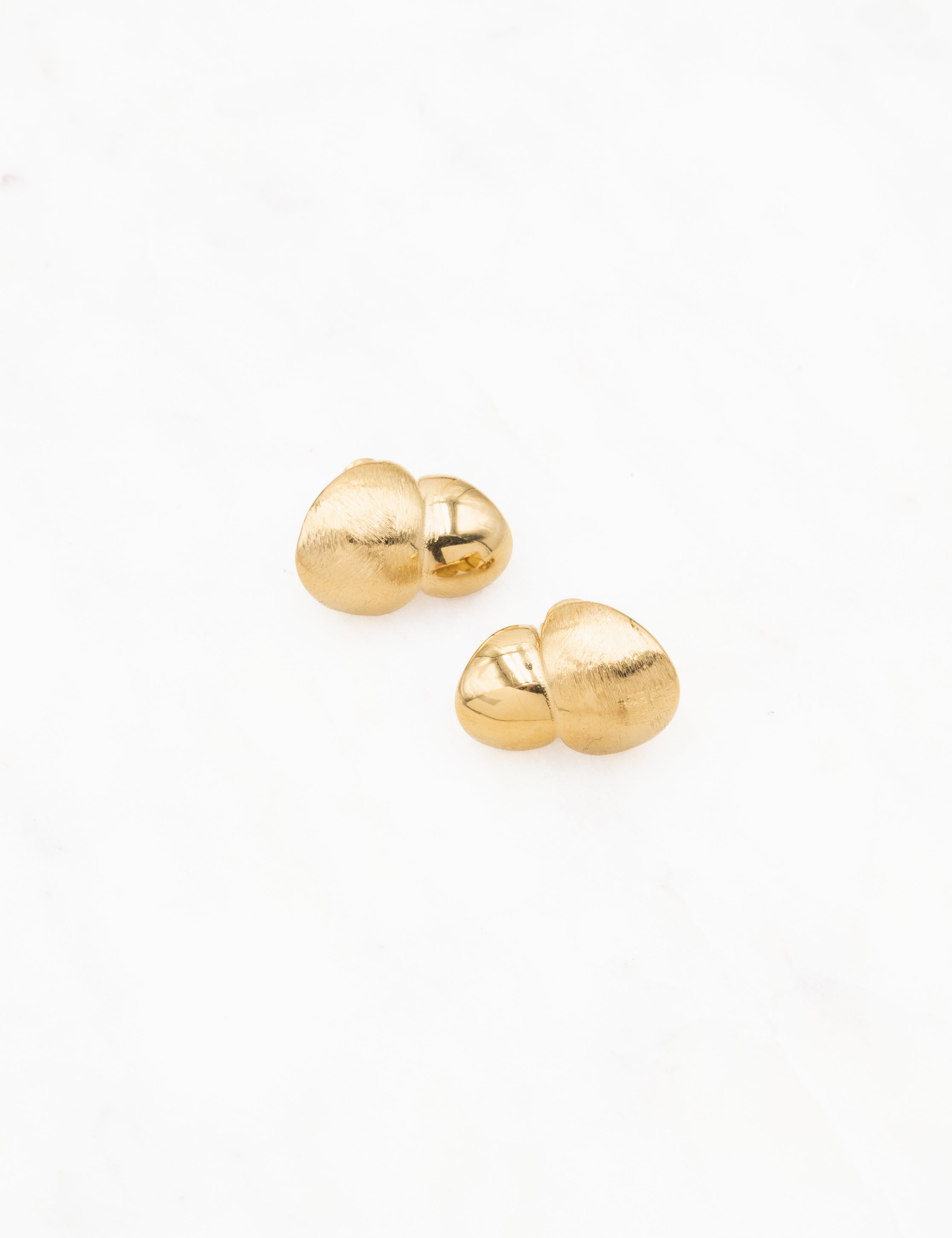 Boucles d'oreilles graphiques type créoles à puce avec un jeu de textures: lisse et brossé.