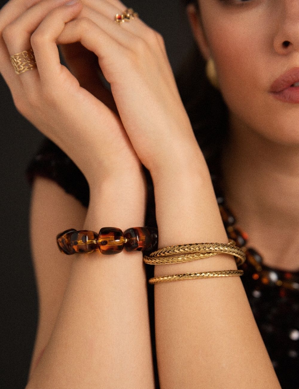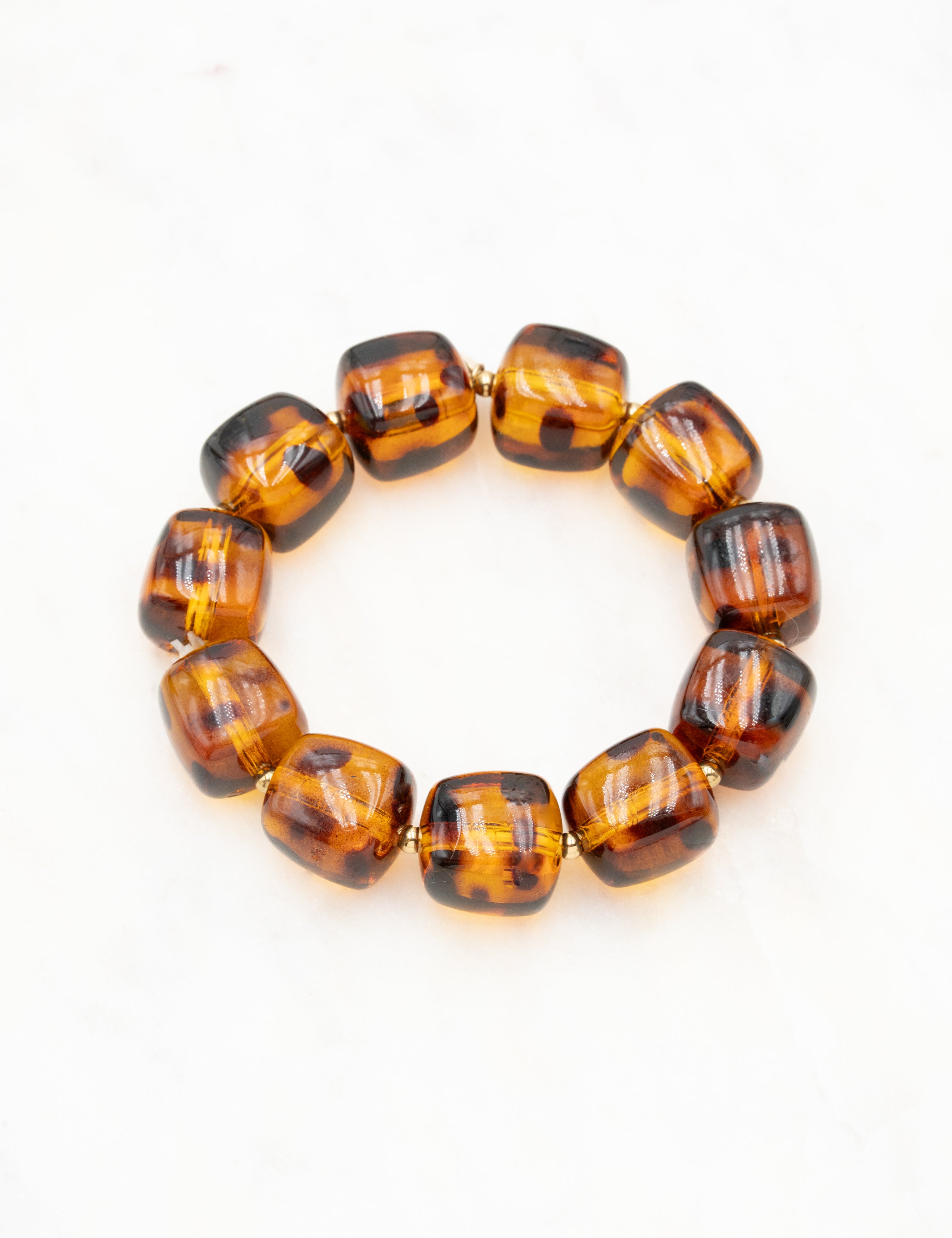 Bracelet élastique composé d'un enfilage de perles en résine colorée.
