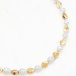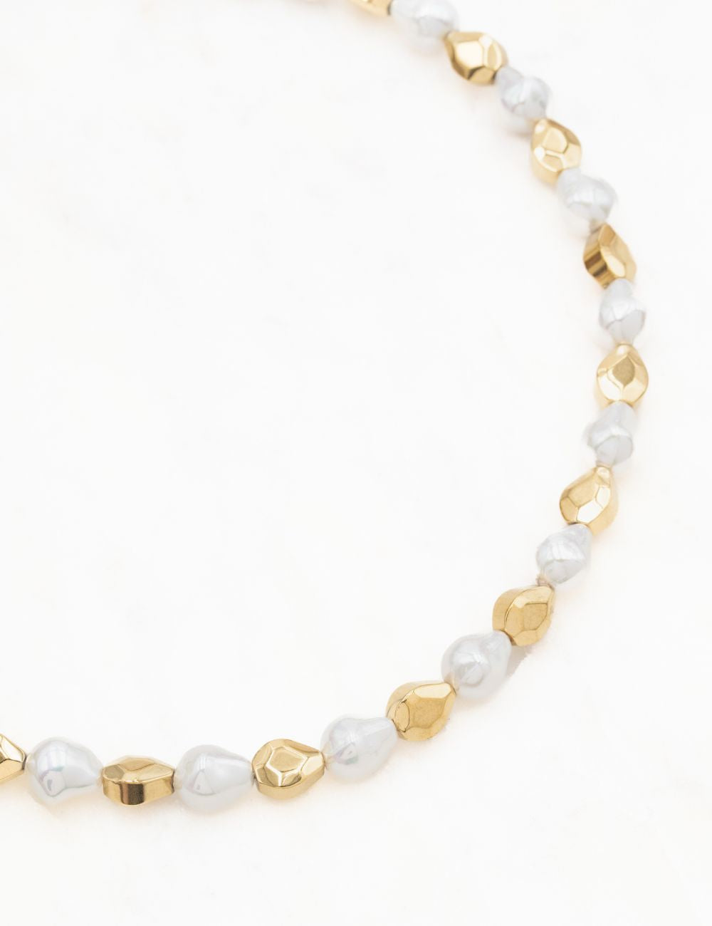 Collier réglable sur chaîne composé de perles d'imitation texturées et de perles facetées.