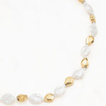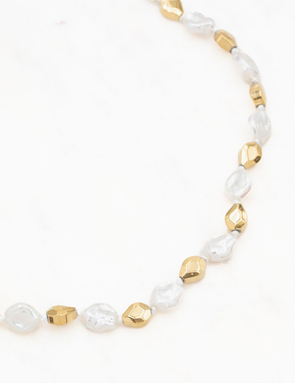 Collier réglable sur chaîne composé de perles d'imitation lisses et de perles facetées en acier.