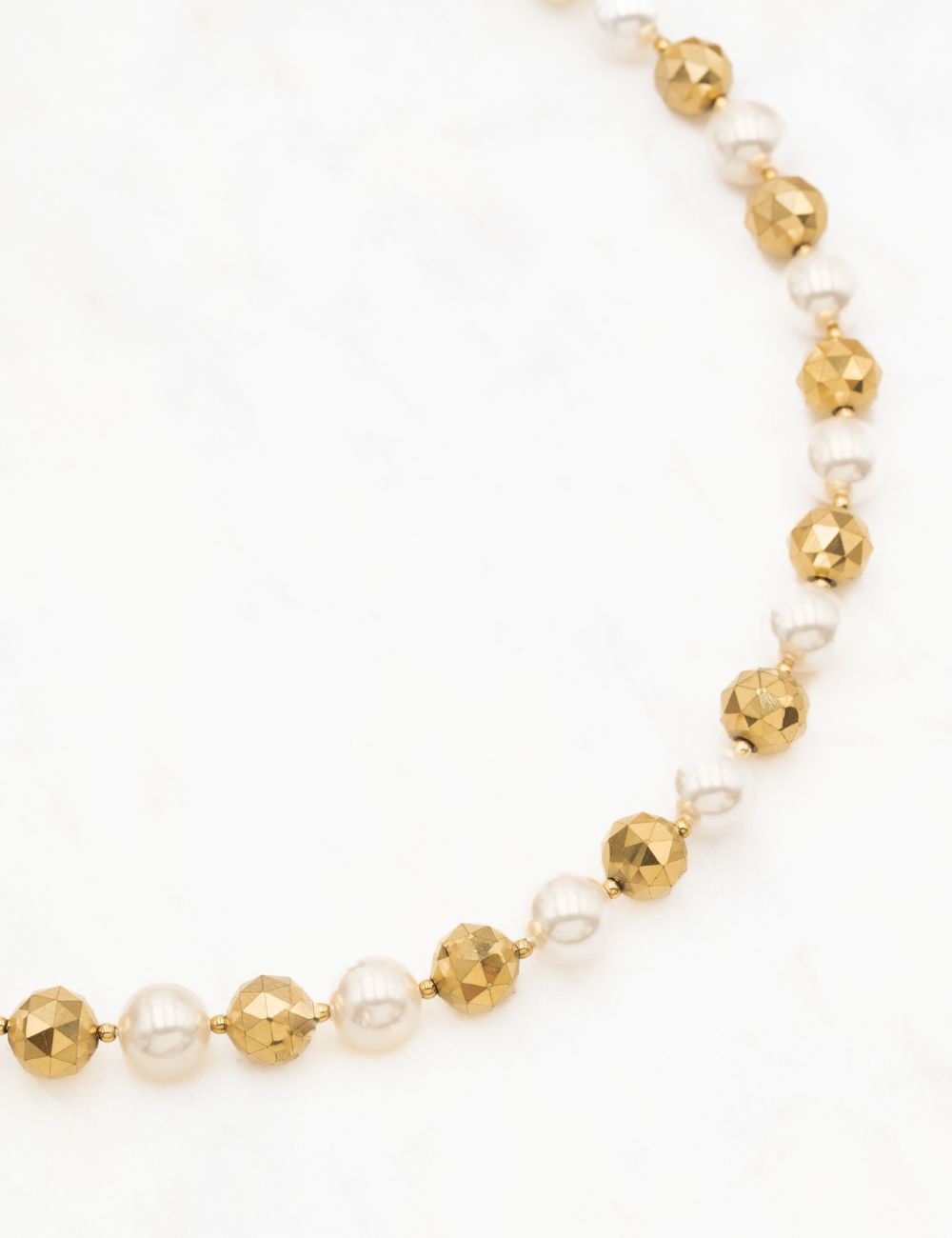Collier réglable sur chaîne composé de perles d'imitation rondes et de perles facetées.